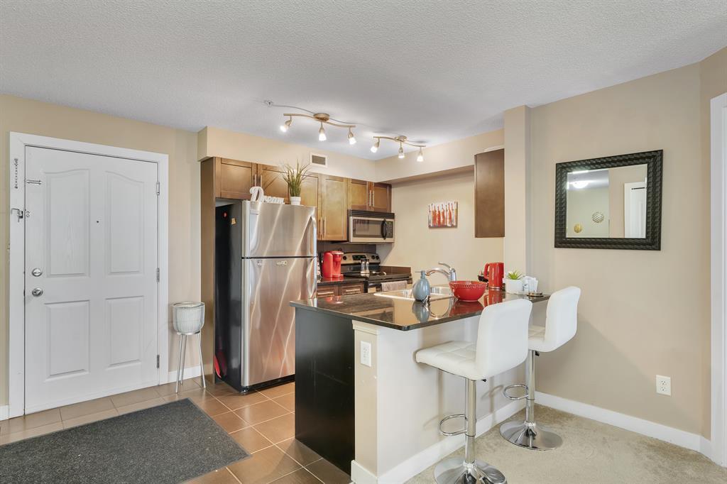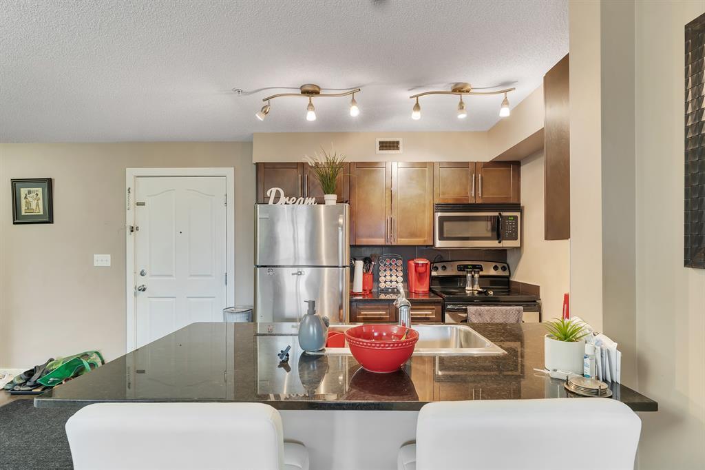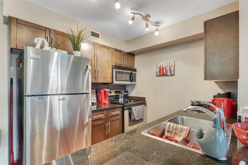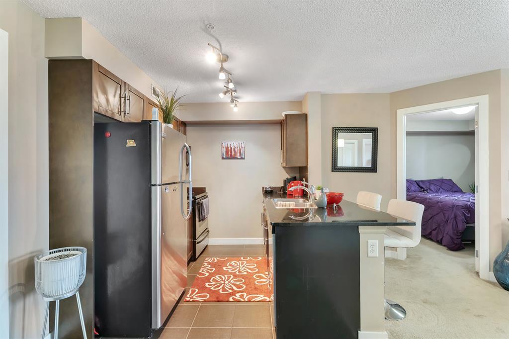 Welcome to this stunning condo located in an amenity-rich area that offers the perfect combination of comfort and convenience. This exquisite 2-bedroom, 2-bathroom unit is just minutes away from the train station, grocery stores, playgrounds, schools, and recreational centers, providing unparalleled accessibility to all your daily needs.Upon entering, you'll be greeted by the meticulously maintained interior, showcasing a truly spectacular condition. The open concept design, complemented by a neutral colour palette, creates an inviting and modern ambiance throughout the entire space. The carpet was installed recently. The well-appointed kitchen boasts granite countertops, stainless steel appliances, and ample storage, making it a chef's dream. Adjacent to the kitchen is a dedicated dining room, perfect for hosting intimate gatherings or enjoying family meals.The spacious living room offers a comfortable retreat, ideal for relaxation or entertaining guests. Natural light floods the room, highlighting the beauty of the interior.Retreat to the gorgeous primary bedroom, complete with a luxurious 4-piece ensuite bathroom and a walk-in closet, providing ample storage for your wardrobe. The second bedroom is generously sized, offering versatility as a guest room, home office, or personal sanctuary. There’s also a main bathroom completing the much needed 2 bed 2 bath floor plan. Step outside onto the outdoor balcony, where you can soak in the sun and enjoy the breathtaking views. Facing the residential homes, you won’t have to put up with the nose from 80th Avenue. The balcony ensures an abundance of natural light throughout the day.Additional features of this exceptional condo include titled underground heated parking for added convenience and security, in-unit laundry facilities for ultimate convenience, and an array of amenities that enhance your lifestyle.The home is currently tenant occupied. Investors can keep the tenant and collect the abundant cash flo w or they can take possession of a vacant property, the possibilities are endless. Don't miss the opportunity to make this beautiful condo your new home. Contact your favourite realtor today to schedule a private showing and experience the luxury and convenience this property has to offer. (id:22211)