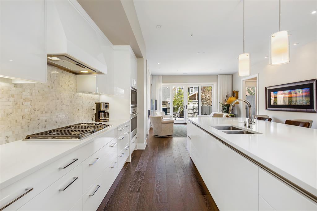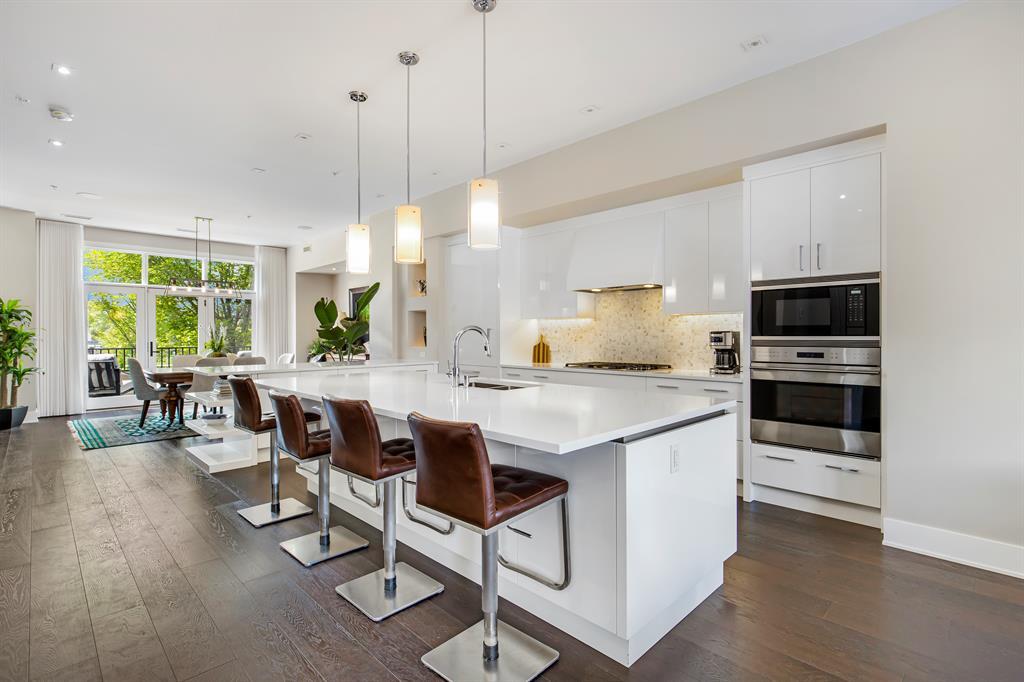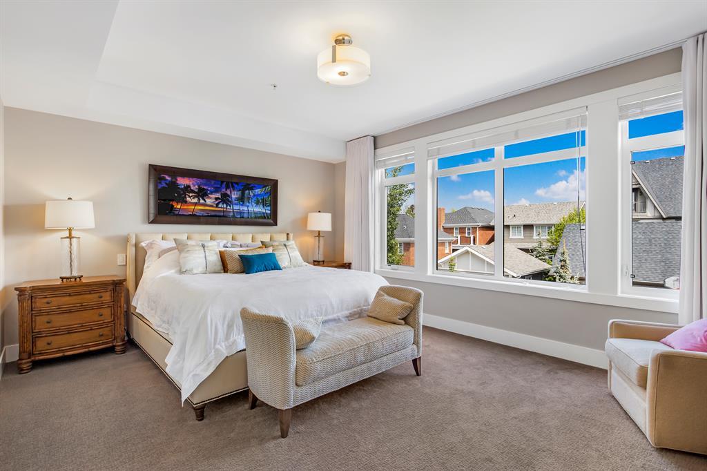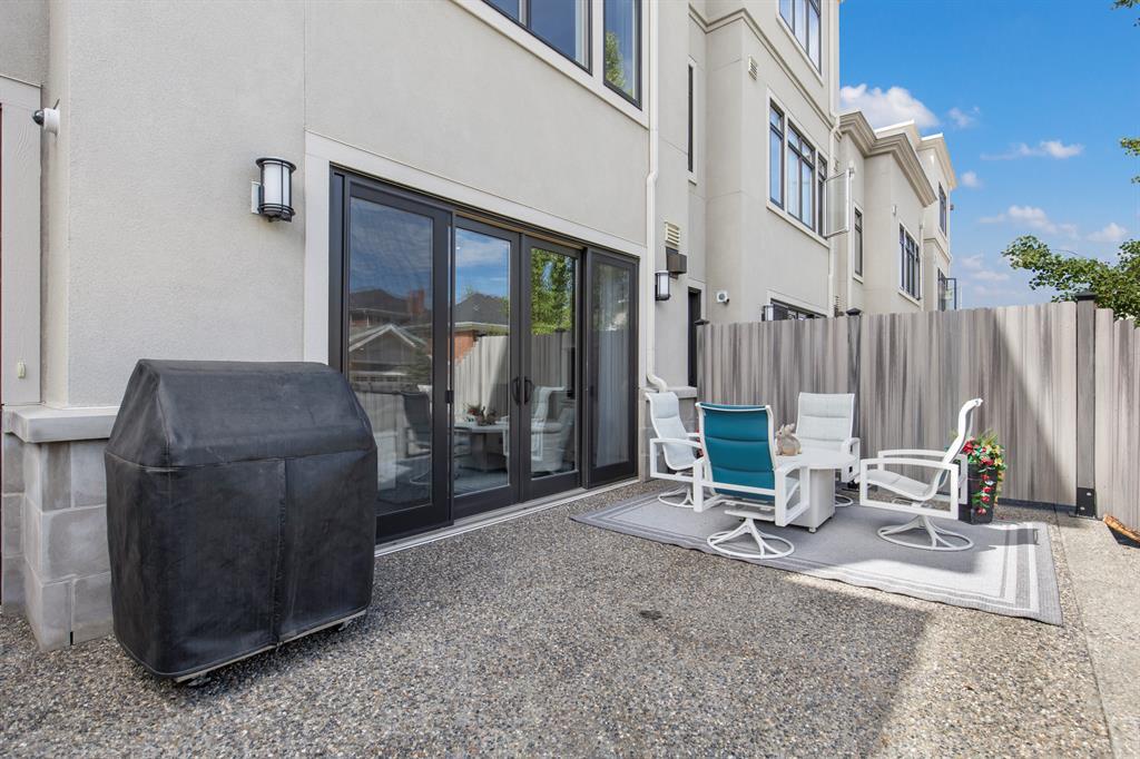 Experience the epitome of luxury living with this spectacular townhome, perfected by Empire Homes. Located in an emerging inner-city location just minutes away from downtown, shopping, and all amenities, this residence offers a truly exceptional "lock-and-go" lifestyle.Step inside and be captivated by the convenience and elegance provided by the personal elevator, connecting all levels and offering the option to "age in place." The natural limestone exterior exudes curb appeal, while the heated floors on all levels, central air, and humidity control ensure utmost comfort throughout.The main level boasts an open floor plan with 10' ceilings, abundant natural light streaming through huge windows, and beautiful hardwood flooring. The "Empire" kitchen is a chef's dream, featuring a massive island, stunning Downsview cabinetry, and top-of-the-line Subzero and Wolf appliances. Enjoy meals in the dining area with a terrace overlooking the park, or retreat to the living area with sliding doors opening to a large patio and fenced yard.Indulge in luxury within the primary suite, where a custom blackout window covering ensures a peaceful night's sleep. The extensive closet with custom built-ins and venting window adds convenience, while the lavish ensuite showcases a freestanding tub, walk-in shower with bench, separate water closet, and expansive double vanity.Upstairs, an incredible family room awaits, complete with built-ins and a private 200 square-foot roof deck offering breathtaking mountain views. Two additional bedrooms, also have custom blackout window coverings, each with its own ensuite, provide comfort and privacy for everyone.Parking is a breeze with a private and oversized double garage within the common parkade. Custom window coverings, media and lighting systems (including all TVs and Sonos), and a central location in the heart of the complex add to the allure.Unbeatable in quality and offering amazing value, this townhome represents the pinnacle of luxur y living. Don't miss the opportunity to make it your own.Don't miss your chance to realize the elegant lifestyle you've always dreamed of. Contact us today to discover the unparalleled beauty and sophistication of Valour Park in Currie! Contact us today for more information and to arrange a private viewing. Your dream home awaits! (id:22211)