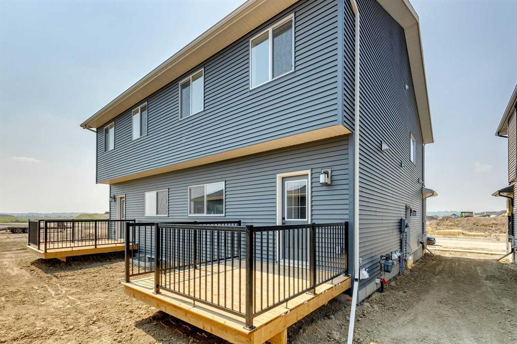Welcome to “The Delta”, a brand-new attached home built by Shane Homes! With a total of 4 homes available for purchase, this is the perfect opportunity for any investor looking to build their portfolio and generate solid income in the rental market. This outstanding home was developed to the finest standards and highest quality with a fully developed lower legal secondary suite – live up and rent down mortgage helper, nanny or in-law suite! Featuring over 2,082 sq. ft of living space on 3 levels. The front veranda, with park and mountain vista views is the perfect place to enjoy your morning coffee and leads through to the open and bright main floor plan with luxury vinyl plank flooring flowing effortlessly from the front foyer, large living/dining room area and to the spacious gourmet kitchen with top of the line Samsung stainless steel appliance package, quartz counters, custom tile backsplash and custom cabinetry. Large pantry space and 2 piece main bath, and mudroom area providing access to the backyard, deck & double detached garage. The upper level has been completed with a bonus/TV area, 3 bedrooms including the master suite with a large walk-in closet and 3 piece ensuite complete with custom tile flooring, quartz counter, custom cabinetry and oversized shower plus a private laundry area and 4 piece main bath with high quality finishings and soaker tub. The 586 sq. ft lower legal suite features a spacious kitchen with the same high quality finishings as the main including Whirlpool appliance package, living/dining area, bedroom with a large walk-in closet and 4 piece bath including a deep soaker tub plus a separate laundry area including a washer and dryer. Additional features include lighting packages from Carrington, Hardie Board exterior, double detached drywalled garage, front veranda, wired for smart home system. No expense was spared for the luxurious upgrades including upgraded flooring throughout, knockdown ceilings, Delta fixtures, lighting, electric al and all appliances. This lovely home is situated across from a purposed park/green space and within walking distance to a new (to be built) school. Legacy is an amazing family community with 2 new purposed schools, along with recreational amenities, 3 ponds, 10 parks, 4 soccer fields, 3 commercial sites and over 300 acres of protected environmental reserve with 15km of interconnected walking trails, amphitheaters and leisure and recreation space along the escarpment plus a short commute to the mountains, Okotoks and a 20 minute drive downtown! (id:22211)