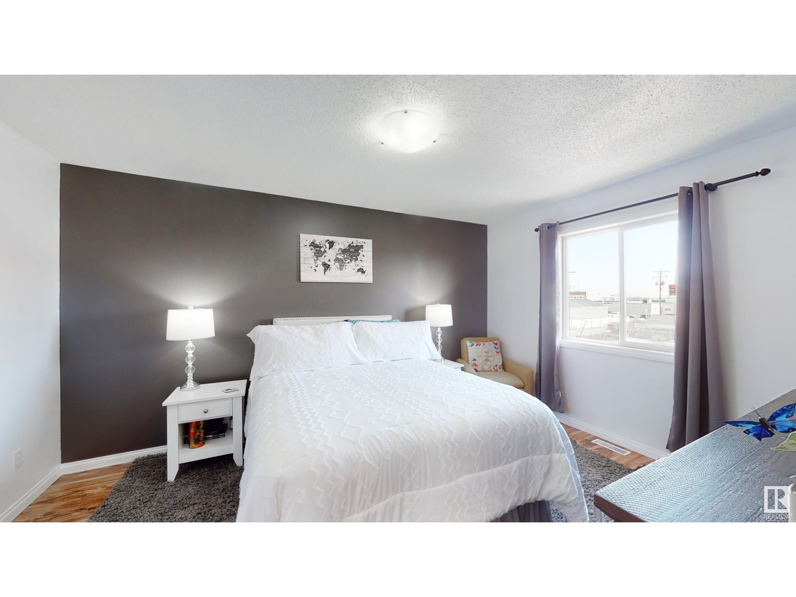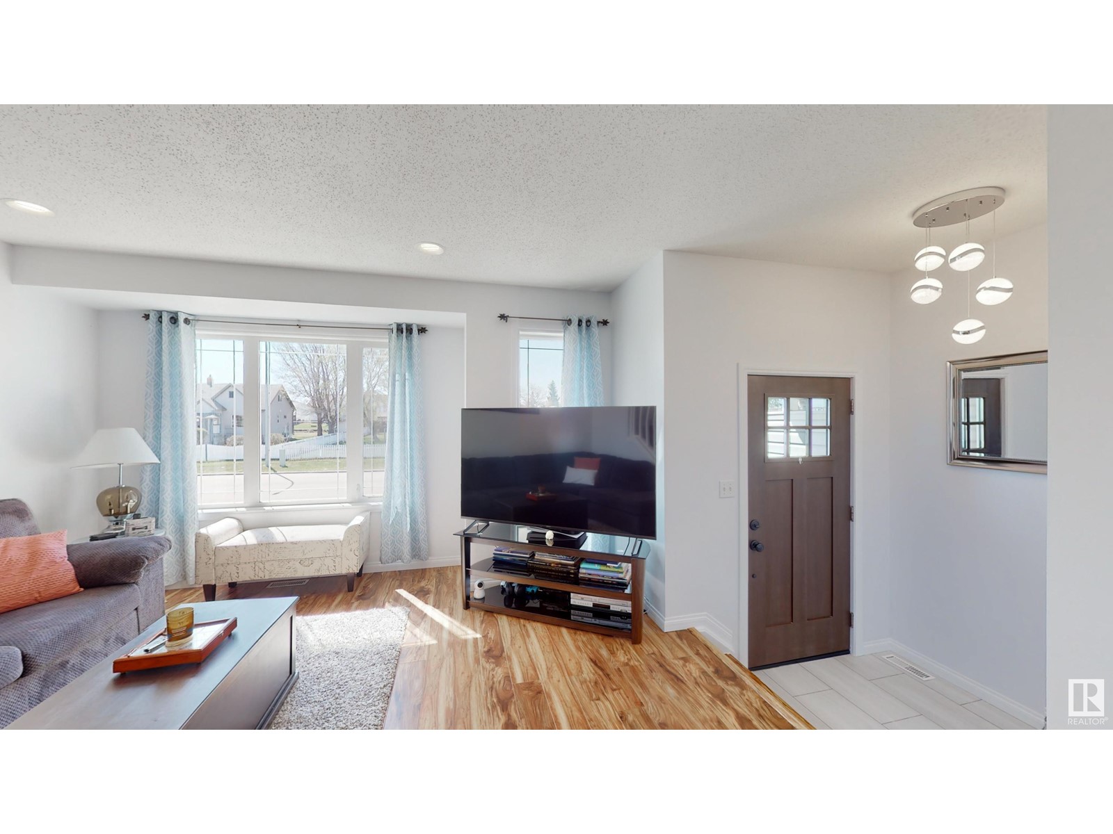 Looking for an affordable home or revenue property? Located in the friendly growing town of Calmar. Just 14km west of Leduc, 15 minutes to Nisku & the airport. Easy commute to West or South Edmonton. This well maintained 2 Storey homes has the desired south exposure with some mature spruce trees. Features 3 spacious bedrooms, Huge master bedroom has a walk in closet. Main floor boasts an excellent floor plan with a spacious living room, kitchen and dining area. Main floor laundry!!! The lower level is mostly finished with a fourth bedroom, large windows. The front area is drywalled and just needs finishing. Won't take much to finish! High efficiency furnace, roughed in plumbing for 3rd bathroom. No carpeting, upgraded to vinyl plank tiles in kitchen, bathrooms and entrance, the rest is quality laminate flooring. Quiet neighborhood with parking in the back and amazing neighbours. (id:22211)