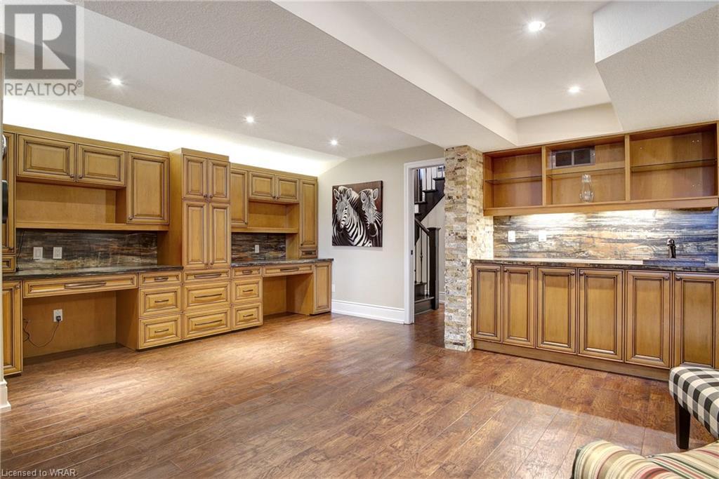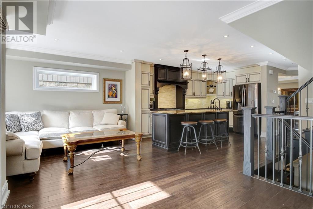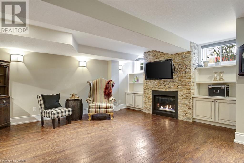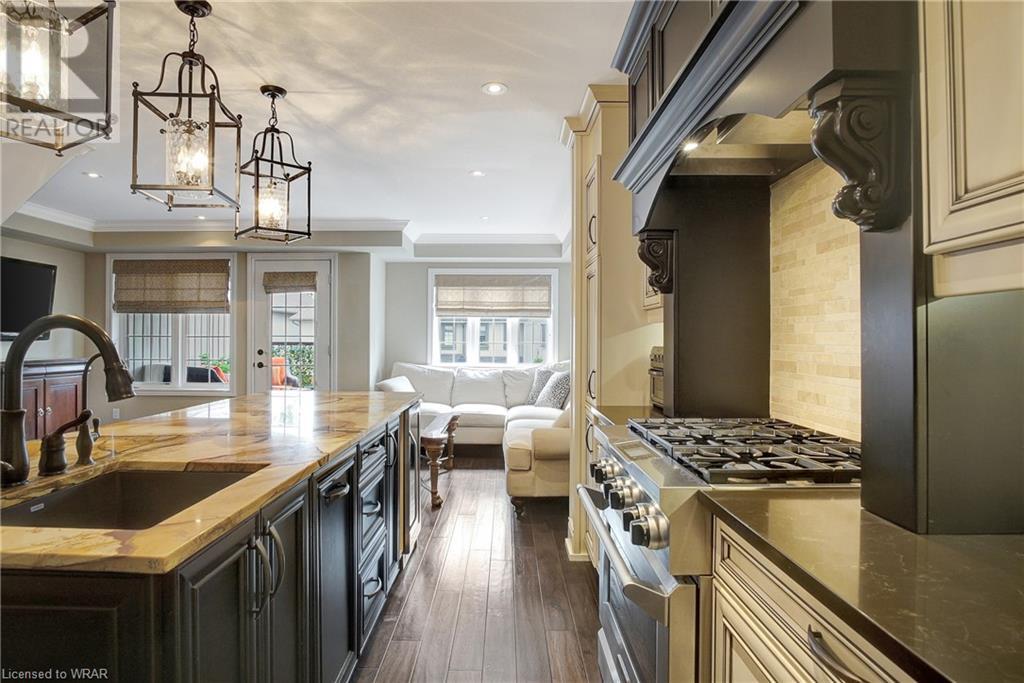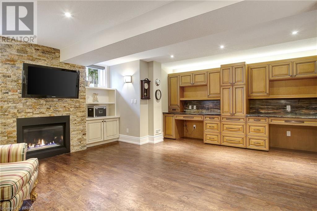 **OFFERS WILL NOW BE PRESENTED OCT 3rd AT 8pm**IMPECCABLE CRAFTSMANSHIP IN THIS EXQUISITE SAGINAW WOODS EXECUTIVE TOWNHOME! Presenting this contemporary end-townhome featuring an inviting open floorplan. Nestled within a friendly neighborhood renowned for its outstanding schools, picturesque walking paths, dedicated bike lanes, and mere minutes from the 401 highway. As you step inside the lower level, you're immediately greeted by pristine cleanliness and a level of finishing that is nothing short of immaculate. Every detail has been carefully considered, from the premium vinyl flooring to the well-appointed wet bar and 3pc bathroom. The rec room/home office is a true work of art, boasting a natural gas crystal fireplace adorned with split-face travertine wall cladding. Thoughtfully designed custom-built desks and an efficient filing system cater to two workstations while providing abundant storage. Moving upward via the solid oak staircase, elegantly adorned with the same split-face travertine wall cladding, you'll find a kitchen that will captivate any culinary enthusiast. The countertops feature a sumptuous combination of grade E Granite on the island and Caesar Stone Quartz, blending functionality with aesthetics. Equipped with top-of-the-line appliances, this kitchen leaves nothing to be desired. The open-concept kitchen seamlessly transitions into a spacious main-floor family room, opening up to a generous upper terrace where you can bask in the warmth of the morning sun and enjoy the evening shade. Finally, the upper level of this unit houses 3 generously sized bedrooms, with 2 of them offering custom walk-in closets. The primary bedroom is a genuine sanctuary, showcasing a beautifully appointed full bathroom and a custom-built makeup table. (id:22211)