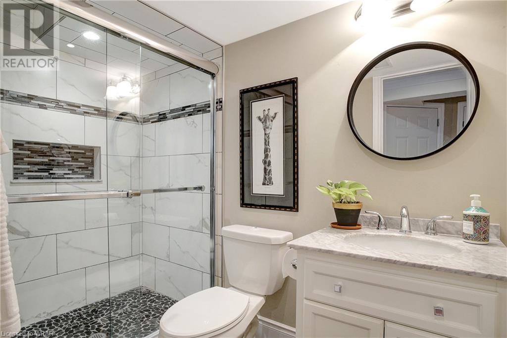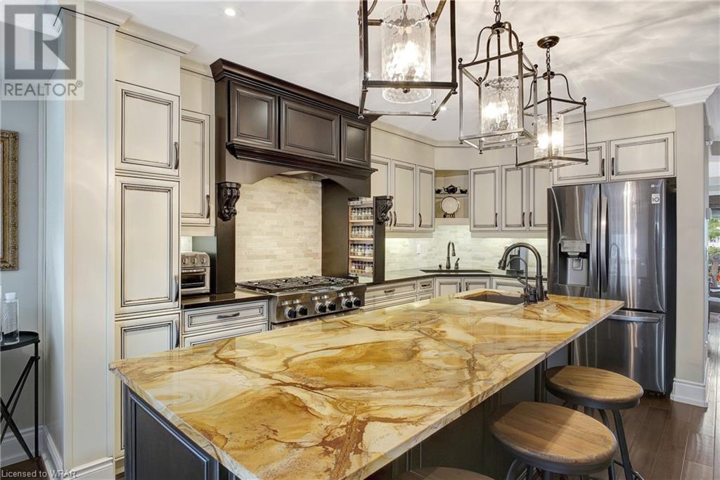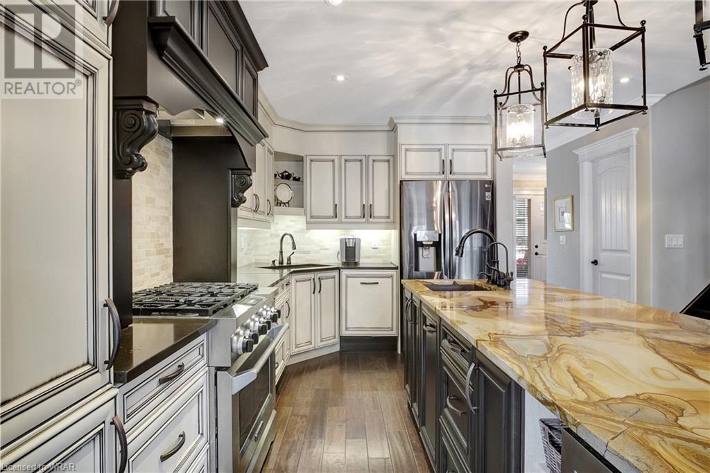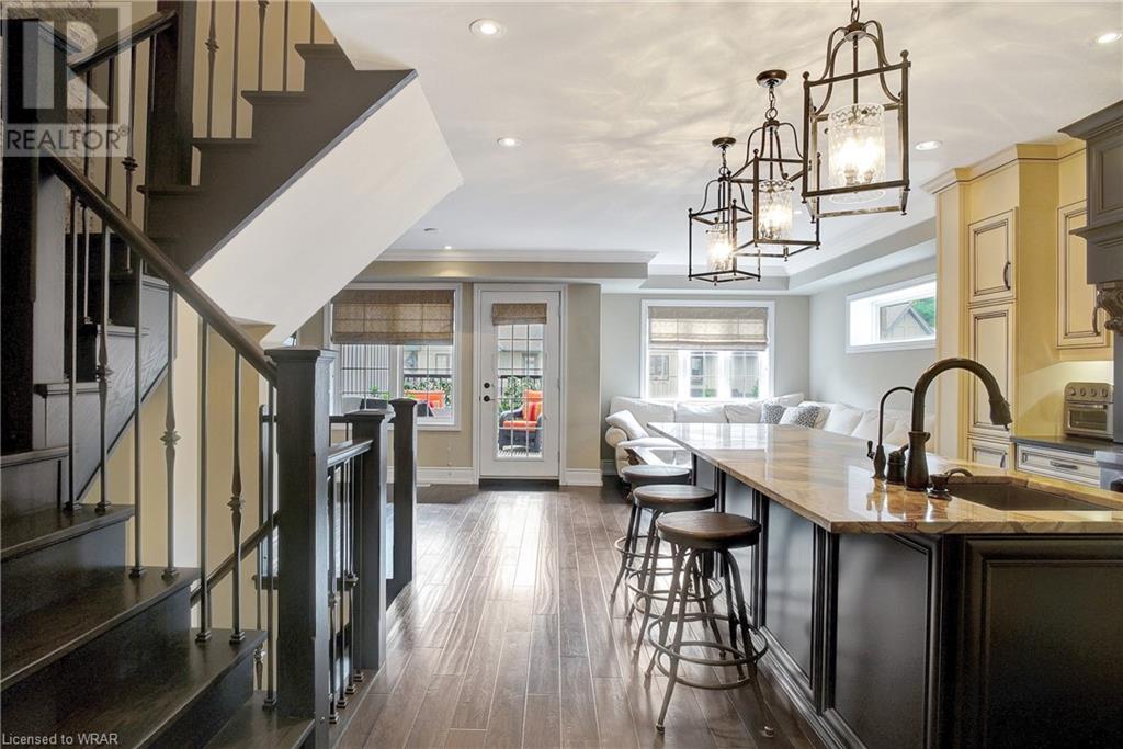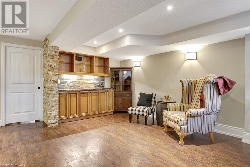 **OFFERS WILL NOW BE PRESENTED OCT 3rd AT 8pm**IMPECCABLE CRAFTSMANSHIP IN THIS EXQUISITE SAGINAW WOODS EXECUTIVE TOWNHOME! Presenting this contemporary end-townhome featuring an inviting open floorplan. Nestled within a friendly neighborhood renowned for its outstanding schools, picturesque walking paths, dedicated bike lanes, and mere minutes from the 401 highway. As you step inside the lower level, you're immediately greeted by pristine cleanliness and a level of finishing that is nothing short of immaculate. Every detail has been carefully considered, from the premium vinyl flooring to the well-appointed wet bar and 3pc bathroom. The rec room/home office is a true work of art, boasting a natural gas crystal fireplace adorned with split-face travertine wall cladding. Thoughtfully designed custom-built desks and an efficient filing system cater to two workstations while providing abundant storage. Moving upward via the solid oak staircase, elegantly adorned with the same split-face travertine wall cladding, you'll find a kitchen that will captivate any culinary enthusiast. The countertops feature a sumptuous combination of grade E Granite on the island and Caesar Stone Quartz, blending functionality with aesthetics. Equipped with top-of-the-line appliances, this kitchen leaves nothing to be desired. The open-concept kitchen seamlessly transitions into a spacious main-floor family room, opening up to a generous upper terrace where you can bask in the warmth of the morning sun and enjoy the evening shade. Finally, the upper level of this unit houses 3 generously sized bedrooms, with 2 of them offering custom walk-in closets. The primary bedroom is a genuine sanctuary, showcasing a beautifully appointed full bathroom and a custom-built makeup table. (id:22211)