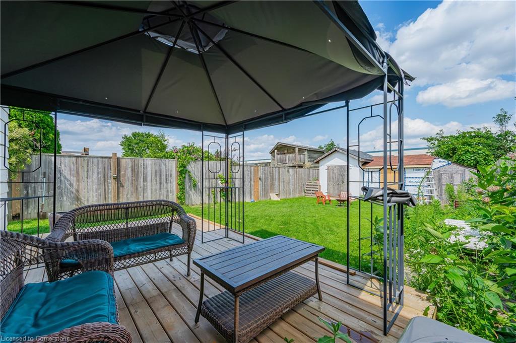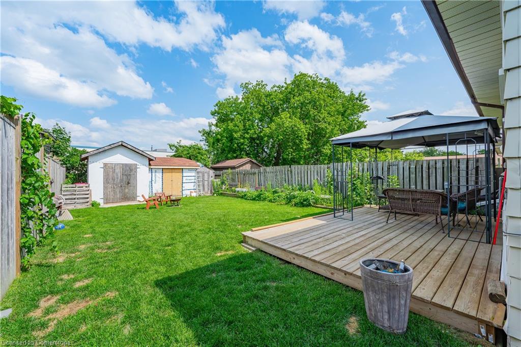 One bedroom In Law! Nestled in a residential neighbourhood of Preston and centrally located within Cambridge close to all amenities this 1064 sqft Backsplit Semi offers plenty of opportunity to its next owner. Situated on a good sized lot with well manicured curb appeal and parking for up to 4 vehicles. Bright, clean and carpet free upper levels offer 3bdrms, 4pc bath, separate dining area and spacious kitchen. Back Side entrance leads directly to the lower level that hosts a convenient 1bdrm In-law with good sized windows and access to the laundry. The rear yard is fully fenced with a deck area for outdoor leisure time, and a large work shed equipped with hydro. Excellent starter home or right size home for a family. Shopping, dining, bus routes and 401 near by.