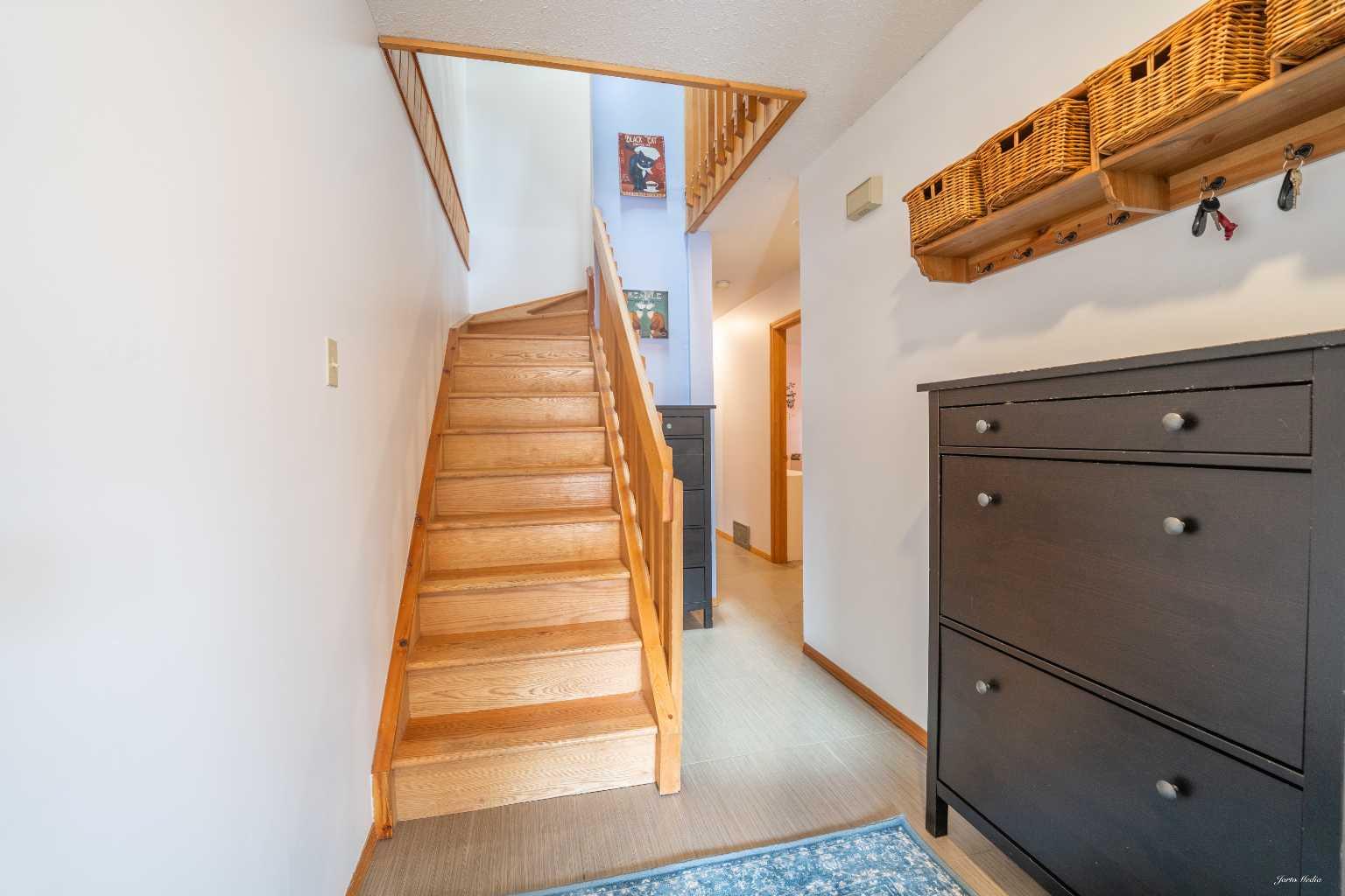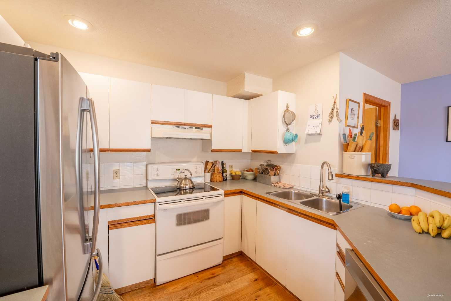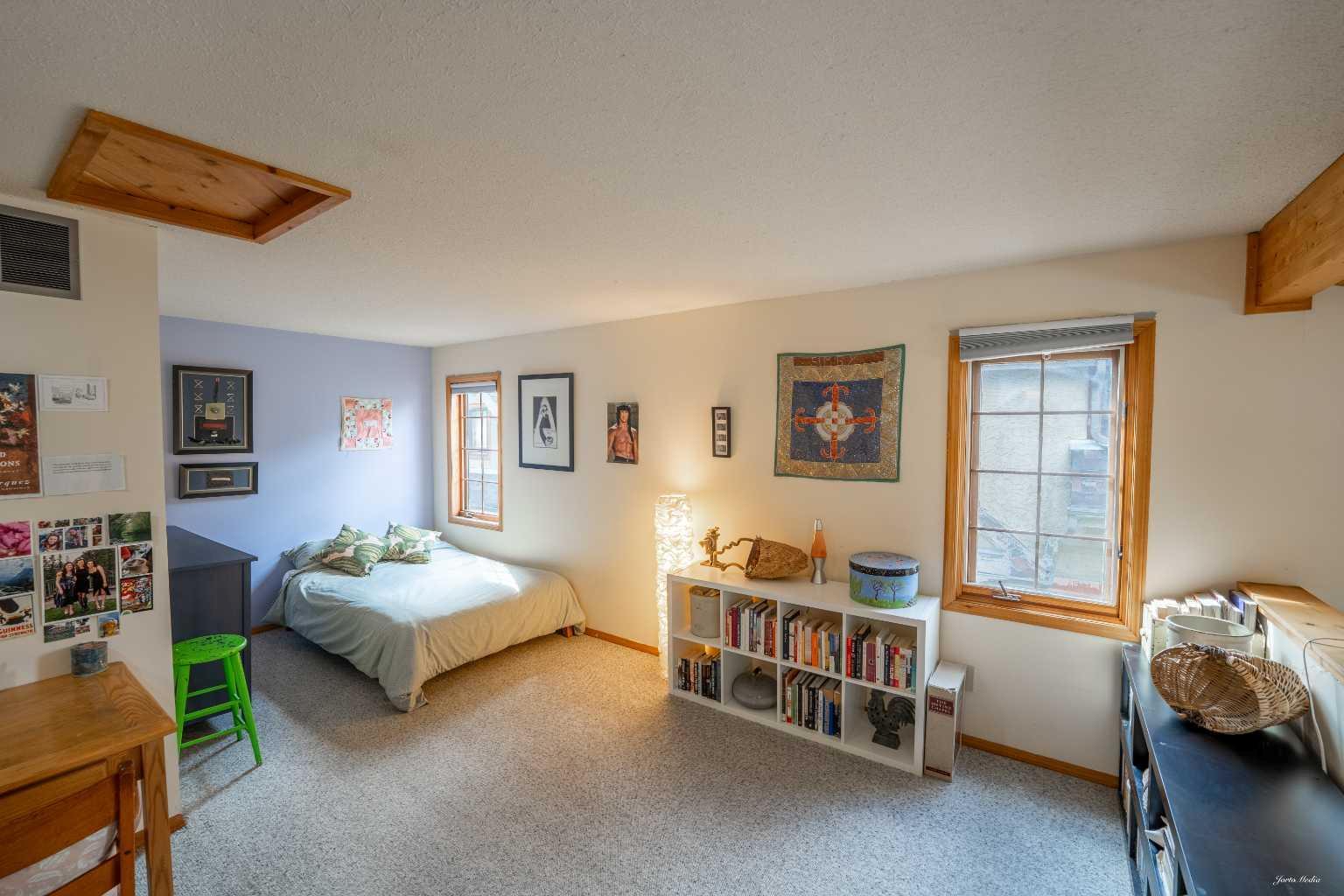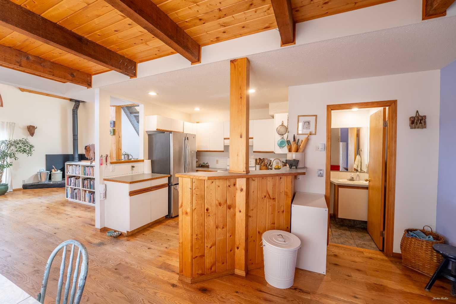 #1 809 5th Street is a charming townhouse that offers three bedrooms and two and a half bathrooms across a thoughtfully designed layout. The main floor features an open-concept kitchen, dining, and living area, highlighted by soaring vaulted pine ceilings and a rustic wood stove that adds warmth (literally) and mountain charm. Step out from the living room onto a spacious deck and take in the stunning mountain views.