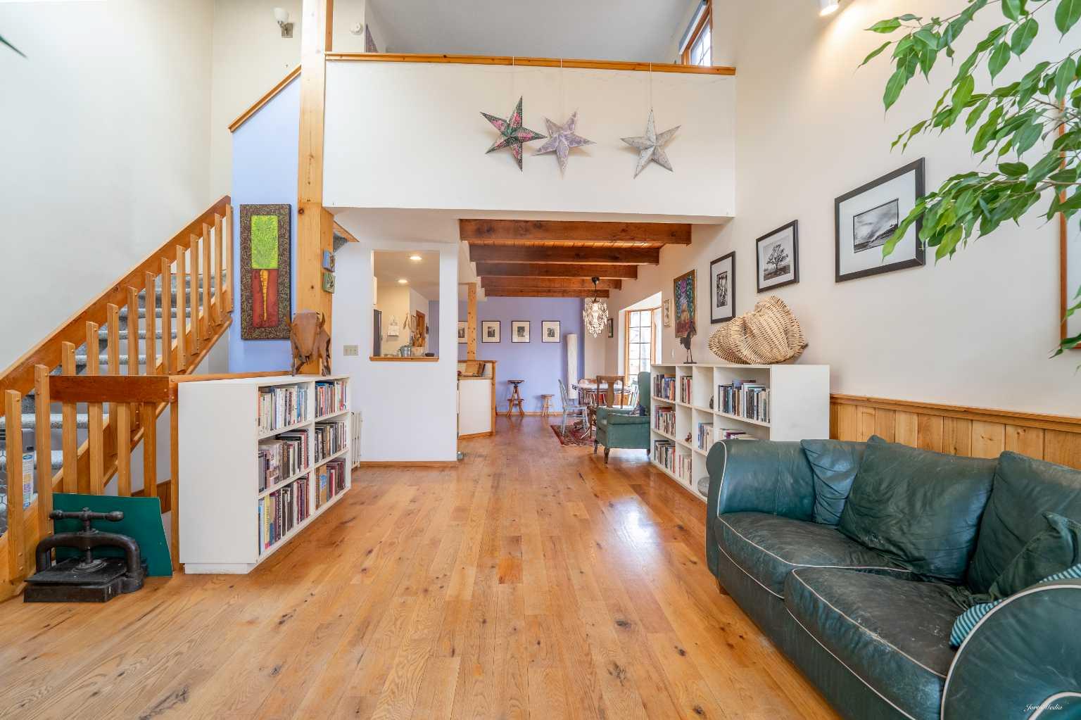 Upstairs, the airy loft level is home to a generous primary suite with a private ensuite. The ground level includes two comfortably sized bedrooms, a full bathroom with a luxurious steam shower, a laundry room, and ample storage. Parking is available with one dedicated rear stall equipped with a plug-in, along with additional street parking at the front.
