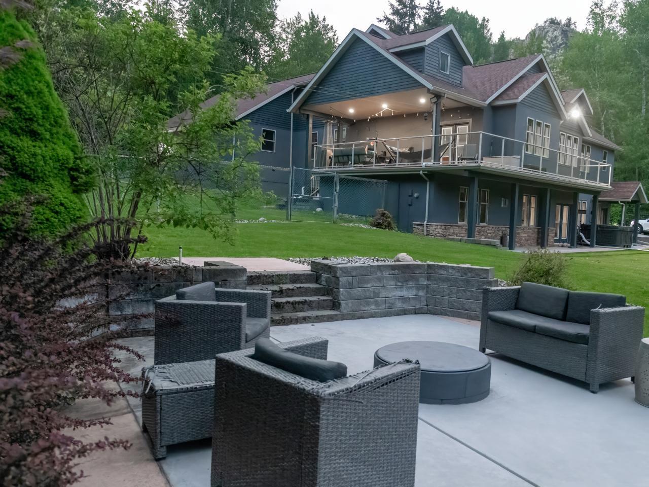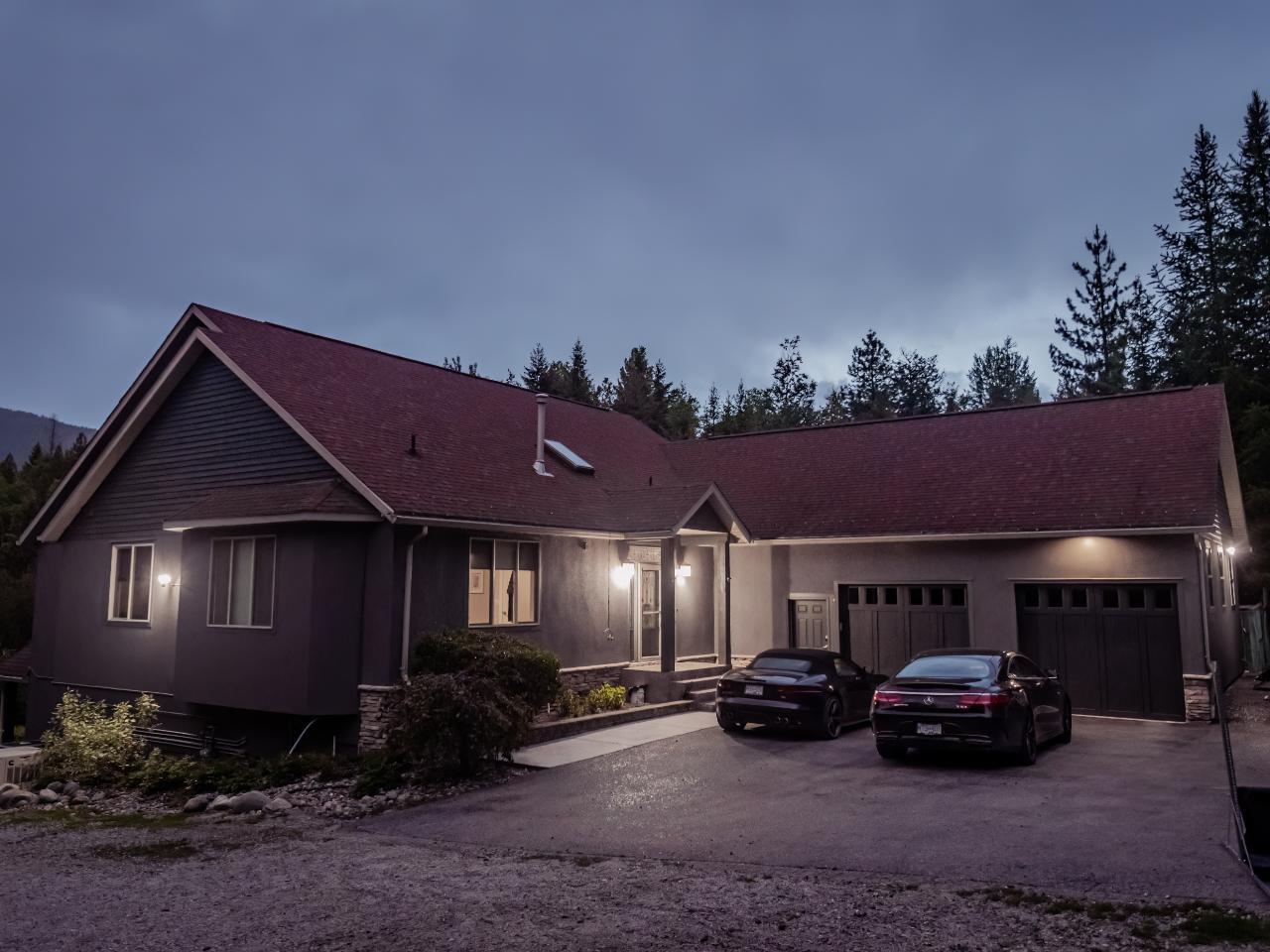 Welcome to 3720 Columbia Ave! Situated on over 8 acres of prime, usable land, this home has it all, and its all within Castlegar city limits with city water and sewer connections. Your dreams become reality when you enter the property through an automated gate and are immediately met with manicured lawns, various tree species, a seasonal creek, and a 4 bedroom, 3 bathroom custom built home with over 4,000sq feet of finished living area. Walking trails, a fire pit, fenced areas for you dog, extensive elk fencing, endless gardening opportunities, great sun exposure, storage for your rv/boat, and no nosey neighbors. The home comes with two levels of opulence including 2 bedrooms up and 2 bedrooms down. The kitchen has it all including granite sink, birch cabinetry, quartz counter tops, and Bosch appliance package. From the rear of the kitchen the covered deck is easily accessed where you'll find glass railings, low maintenance duradeck, natural gas, and LED lighting. Adjacent to the kitchen you can access the sprawling living area with pitched ceilings, built in electric fireplace, tv area and several windows. The main floor primary bedroom is well appointed with extensive square footage, blackout blinds and ensuite. Downstairs has everything you'd want from a lower level including a gas fireplace that heats the entire home, designated gym space, games room, living room, storage room, and two more large bedrooms and an office. Generator connections installed. Lower level has covered deck and offers revenue suite potential. (id:22211)