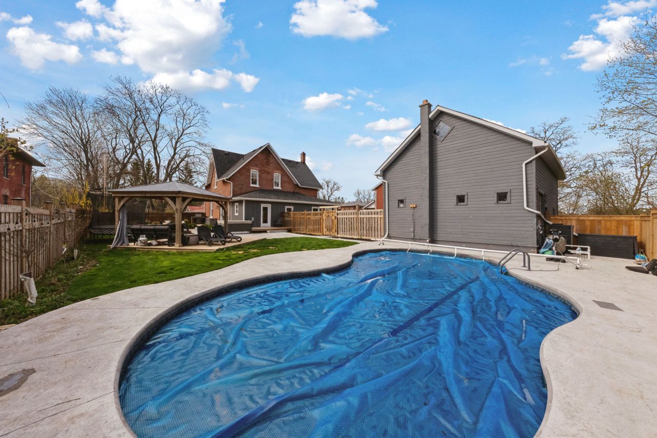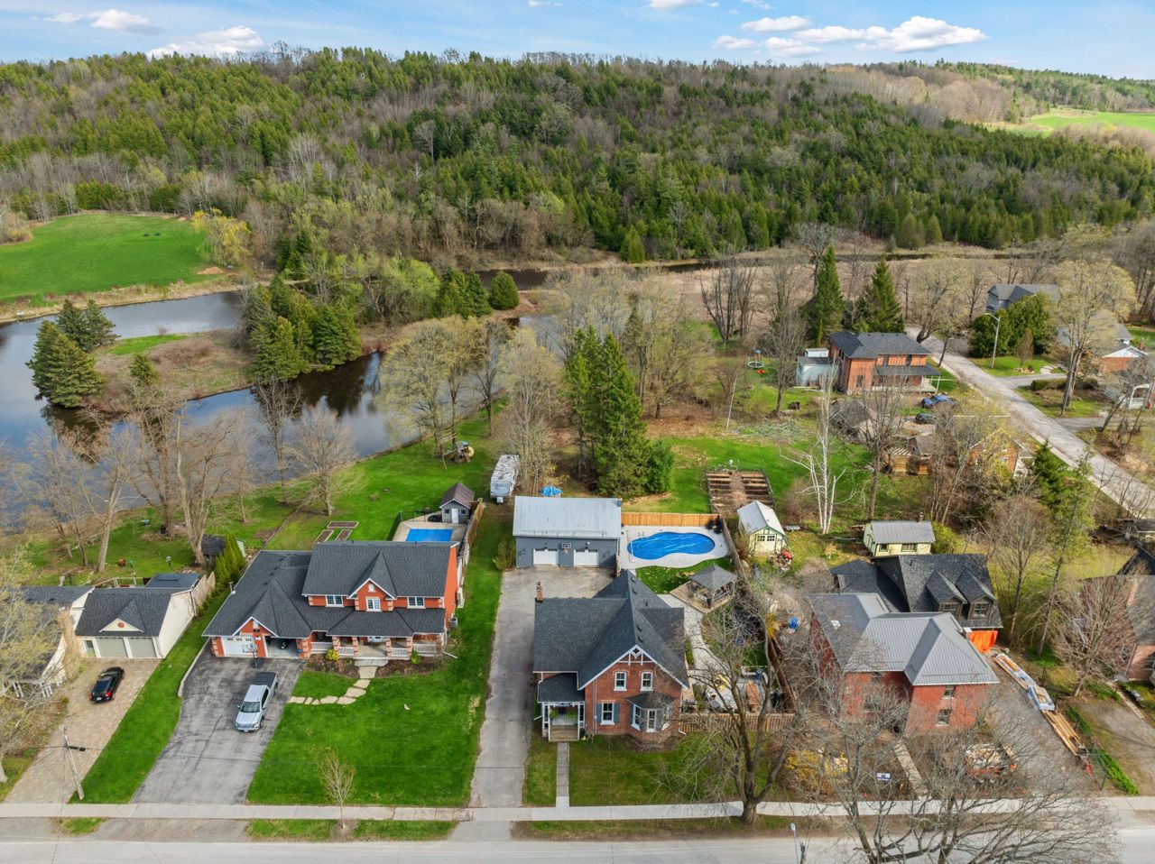 Discover timeless elegance and modern luxury in this reimagined 1880s century home, perfectly situated in the heart of Millbrook! This beautifully updated 3-bedroom, 3-bath residence seamlessly blends historic charm-gleaming hardwood, crown moulding, original size trim-with contemporary comforts and thoughtful upgrades throughout.Step inside to a classic centre hall staircase, airy entry, spacious living room, and separate dining room ideal for gatherings. The chef-inspired kitchen features a gas range, oversized island, wall of cupboards, and walk-out to your backyard oasis. Upstairs, find three generous bedrooms, 2 with walk-in closets, a stylish 4-pc bath, and a primary suite with a luxe 3-pc ensuite.Major updates include roof (2018), windows & doors (2019), ESA-approved electrical panel (2018), new porch roof (2024), and a stunning gas-heated in-ground pool (2024). Convenient everyday entry from the driveway leads to a 2-pc bath and large laundry/refresh & retreat room with direct backyard access-perfect for pool days, muddy boots, and busy lives.Outdoor living shines with extensive landscaping, stonescaped patio, multiple entertaining areas, and a fully fenced yard. The spacious driveway accommodates several vehicles, and the original drive shed and loft (with newer garage doors) offer endless future potential for a studio, workshop, guest suite, or a place for your vehicles and toys.Unbeatable location: 1-min walk to Needlers Mill, less than a 5-min stroll to downtown shops, restaurants & cafés, and steps to scenic trails. Own a piece of Millbrook history-where character, comfort, and convenience meet.