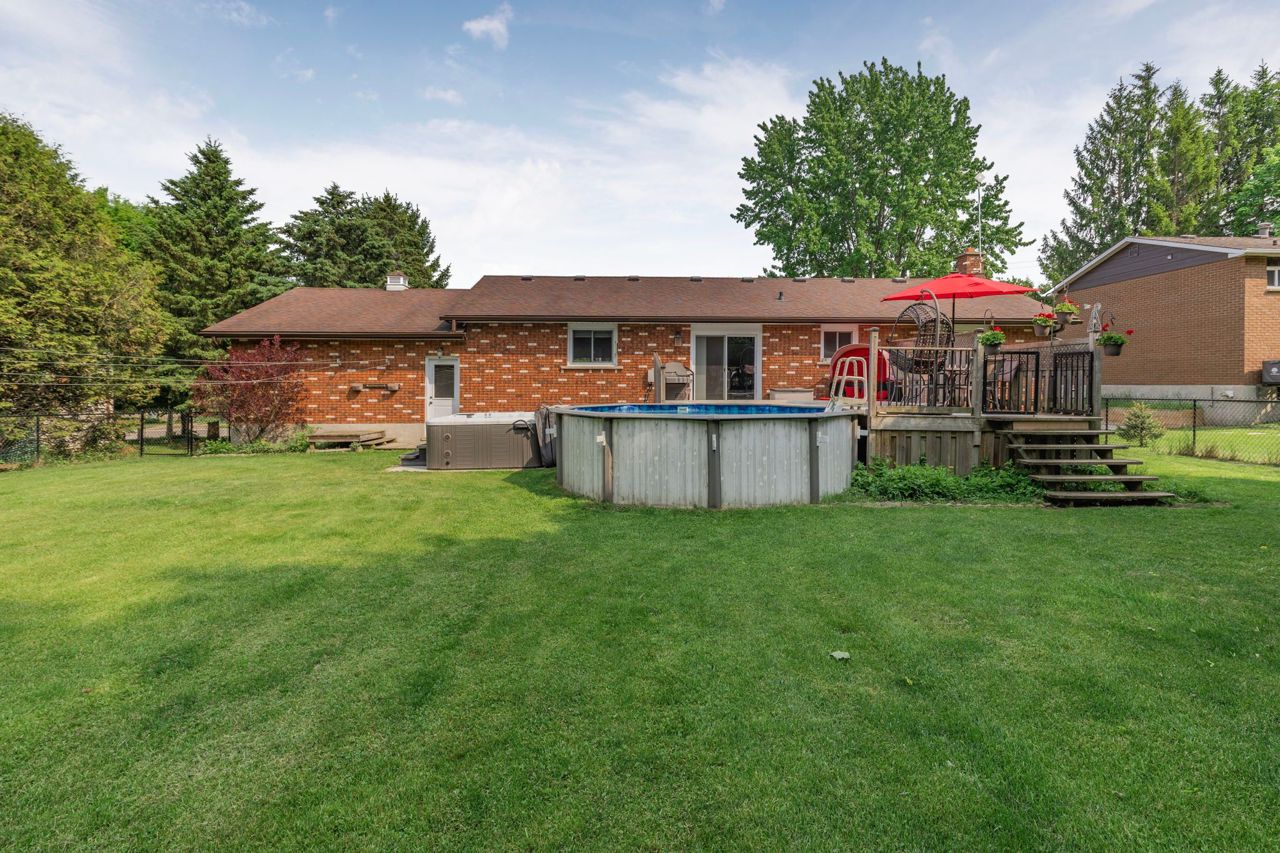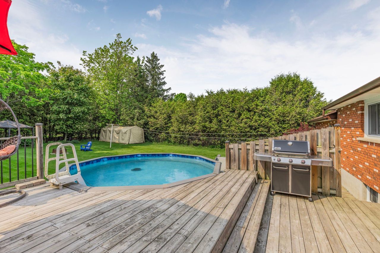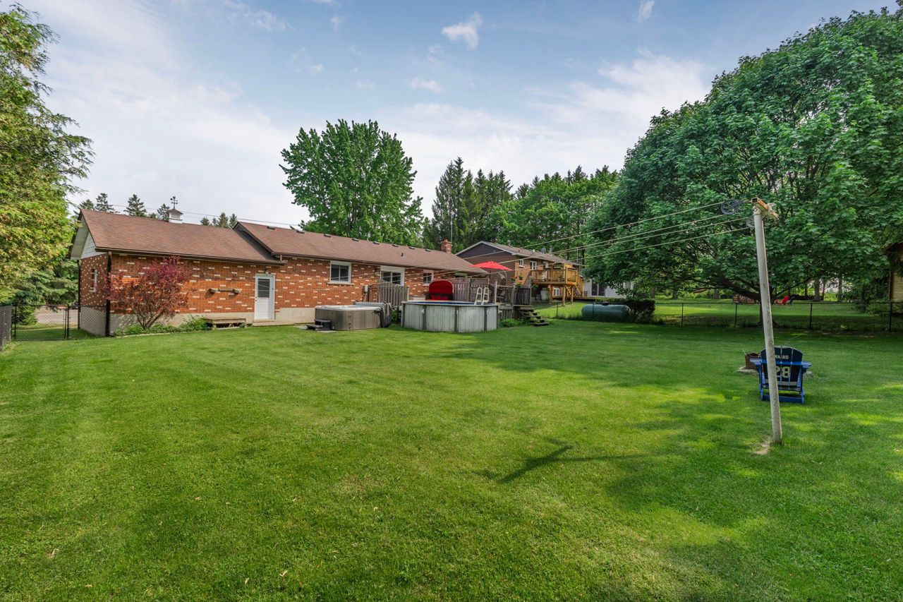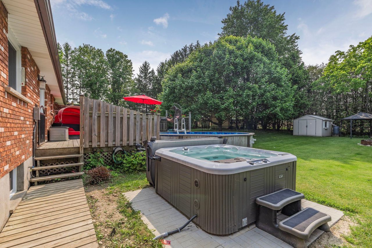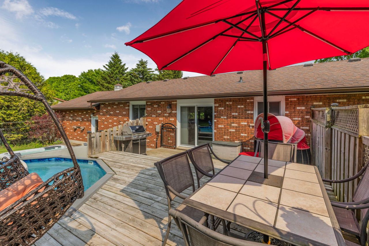 Discover this delightful 3-bedroom, 2-bathroom bungalow nestled on nearly half an acre (fully fenced yard) in the heart of Belwood. Offering an open-concept design, the home features a modern centre-island kitchen with a walkout to a spacious deck, above ground pool and hot tub, perfect for entertaining. Located just steps from Belwood Lake and the Belwood General Store famous for its legendary butter tarts, this property is a nature lovers dream. Enjoy easy access to snowmobile trails while being less than 15 minutes to Fergus. Updated Furnace & Central Air (2021), HWH (Owned, 2022) Fibre Optic Internet (Netflash), Nest Thermostat, Reverse Osmosis System, Oversized 1.5 car Garage with a single door, plumbed-in air compressor, and upgraded electrical outlet Fridge & Stove (2023) Garden Shed, Coverall, and Gazebo for Additional Storage & Outdoor Enjoyment. This home offers the perfect blend of small-town charm and modern convenience, making it an ideal retreat for families, retirees, or outdoor enthusiasts. Don't miss this rare opportunity to own a piece of Belwood's beauty!
