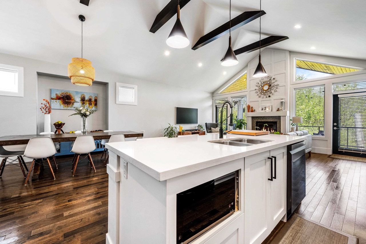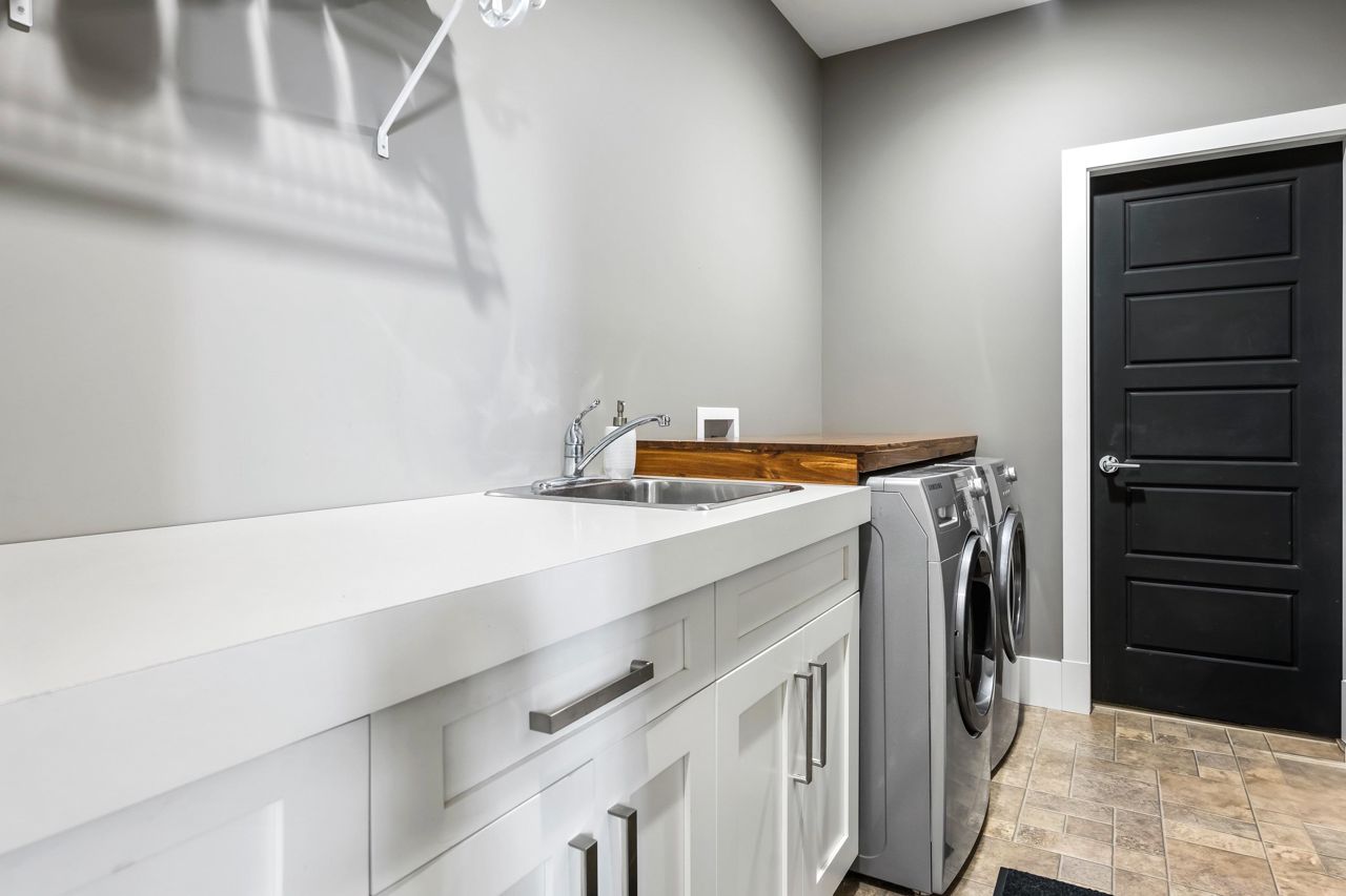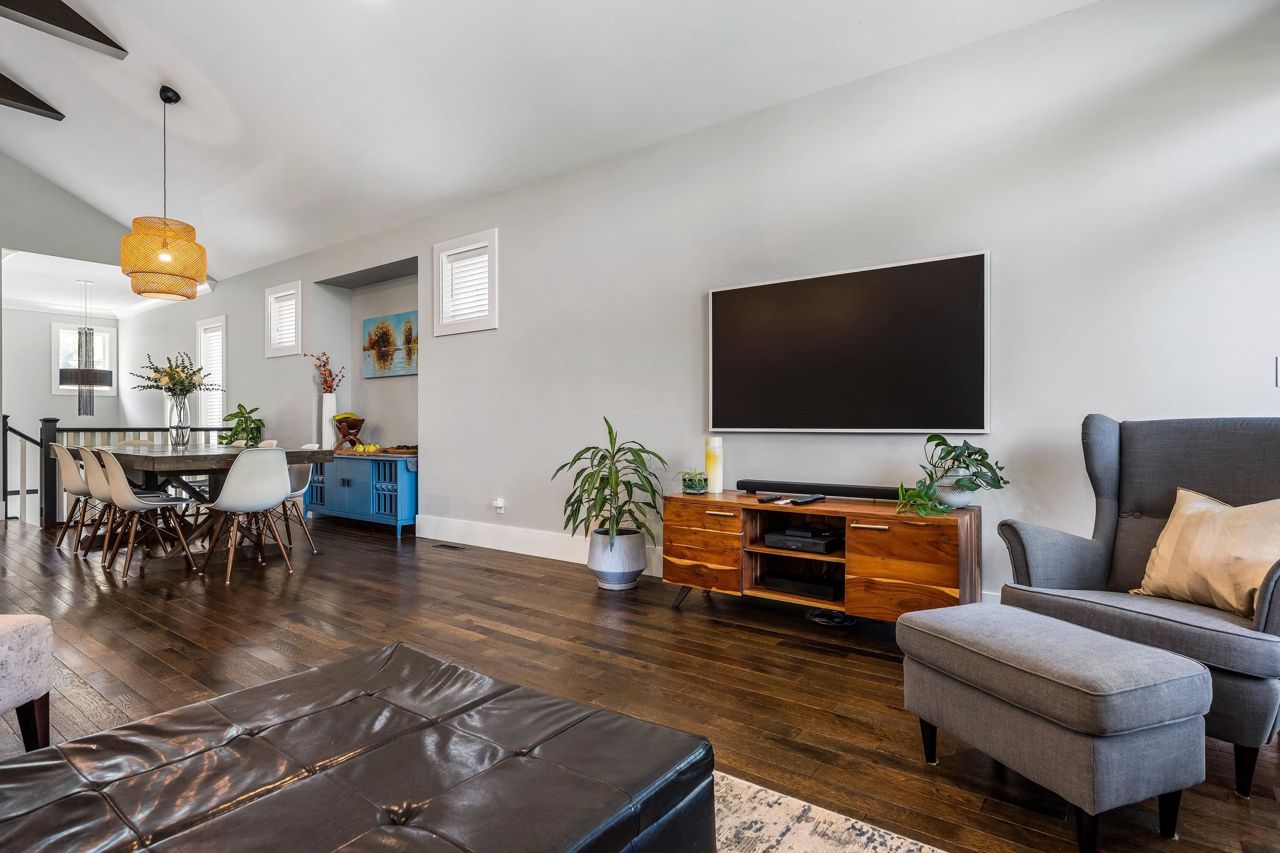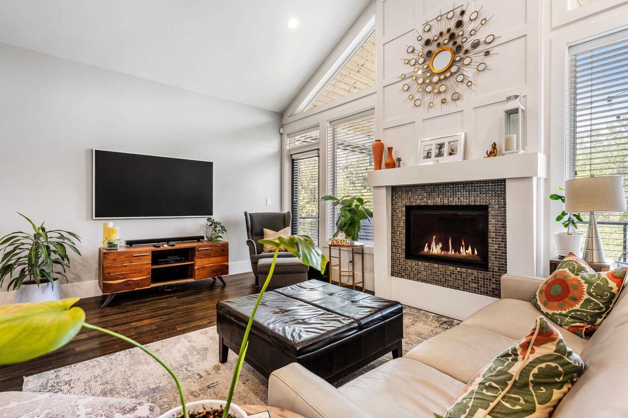 This stunning home boasts a bright, open-concept main floor w/ hardwood flooring, vaulted ceilings w/ exposed beams, & high-end finishes throughout. The kitchen features quartz countertops, soft-close drawers & doors, a lrg island, & a walk-in pantry. The great room offers a cozy gas fireplace & 2 doors leading to a spacious covered deck overlooking the peaceful green space behind the home. The main floor offers 3 bdrms, including a generous primary bdrm complete w/ vaulted ceilings, a lrg walk-in closet, & a 5pc ensuite. The fully finished basement expands the living space w/ a rec room, a laundry room w/ storage & a sink, a full bthrm, & 2 additional bdrms. Outside, you'll find a fully fenced yard w/ a covered patio area & a storage shed. Additional features include A/C & a dbl garage!