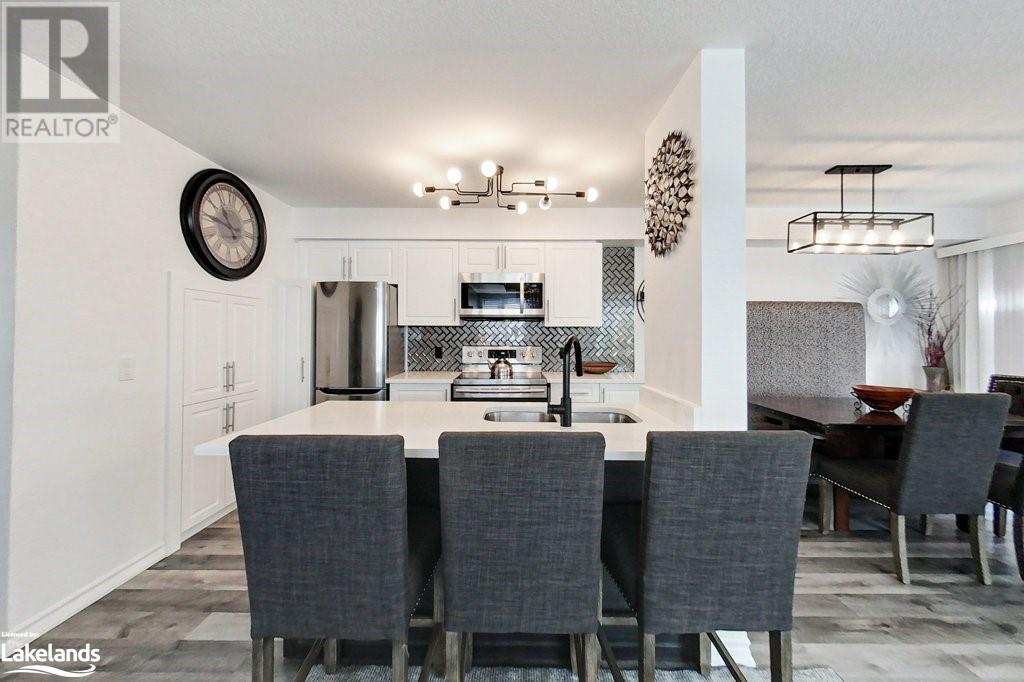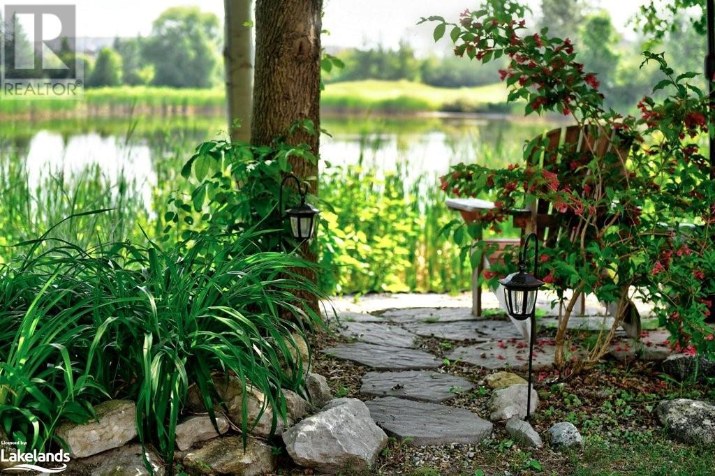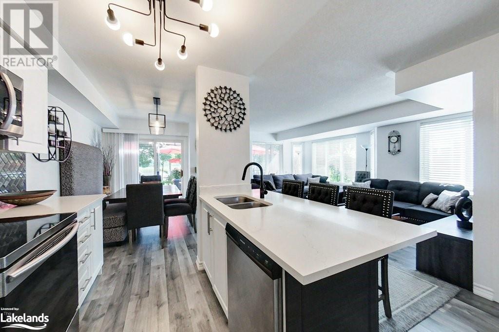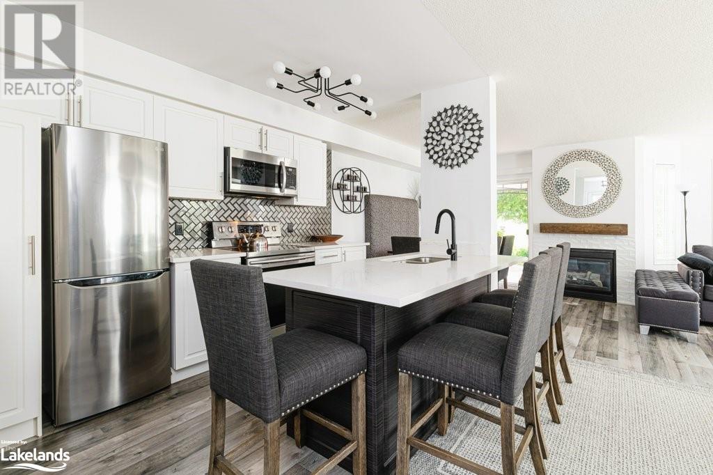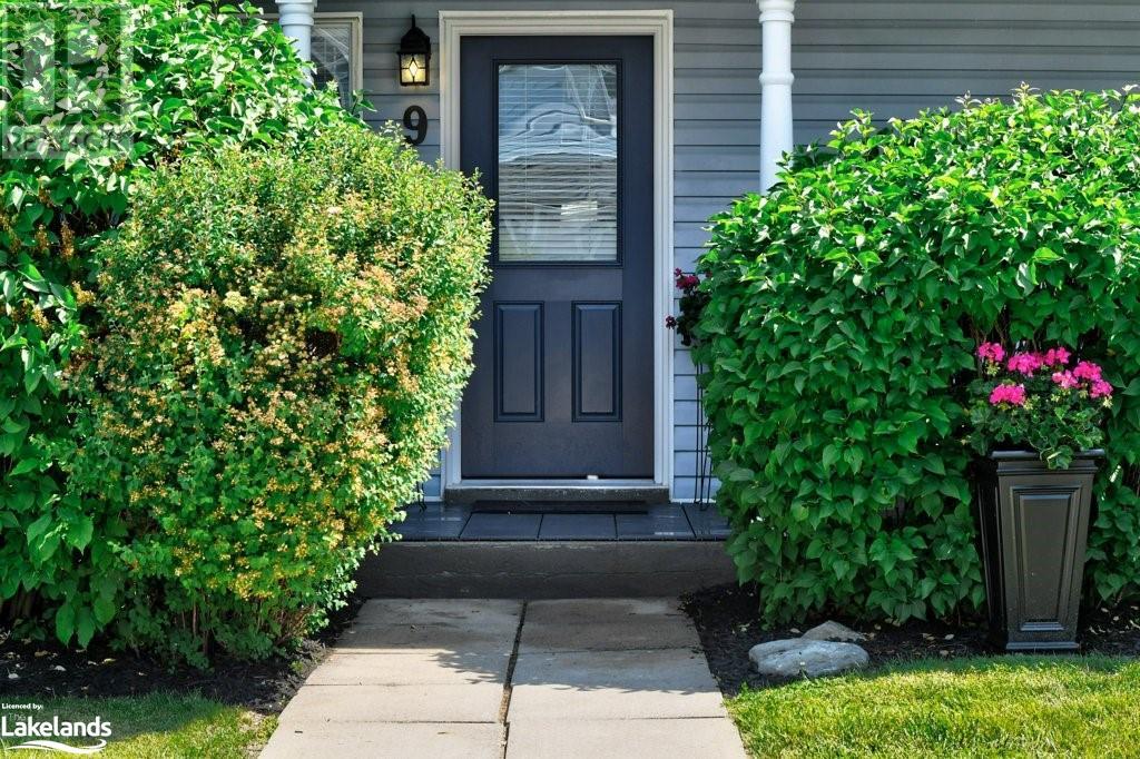 Welcome to 9 Sundial Court in Collingwood. A beautiful professionally decorated and renovated 3 bdrm, 3 bath end unit townhome filled with light from large picture windows with views of a Georgian Bay feeder pond and the 9th hole of the Cranberry golf course. The main floor open concept living area features an updated kitchen with stainless-steel appliances, gas fireplace, powder room and main floor laundry. The entryway features a picturesque front veranda with privacy shrubs and garden. Rear patio doors lead out to a large private oasis deck area that steps down to a grassy yard leading you to your own secret waterfront garden where you can lounge beside a pond active with native waterfowl, such as swans and egrets, and marine life including fish and turtles; perfect for entertaining day or night. 3 bdrm’s upstairs and 2 fully renovated baths, the primary bedroom has vaulted ceilings, en-suite with luxury walk in shower and its own private balcony overlooking the pond and further towards the Bay. From the front bedroom you can see the Niagara escarpment & ski hills that light up at night making a picture-perfect scene. Adjacent to the Georgian Trail network for hiking or biking, it is also only It a 10 min drive to Blue Mountain Ski Resort, some of the best skiing in Ontario and 4 seasons of activities. A 15 min walk will get you to Princeton Shores Park with tennis courts and access to the Bay to enjoy canoeing, kayaking or paddle boarding. A 5 minutes walk will also see you at the Georgian Bay Hotel for fine dining at Gustav Chophouse restaurant. Or don’t go anywhere and relax by your own private community pool. This lovely townhome has one assigned parking space and a visitor space directly in front for convenance. Don’t miss out on this amazing home, book your own private showing today. (id:22211)