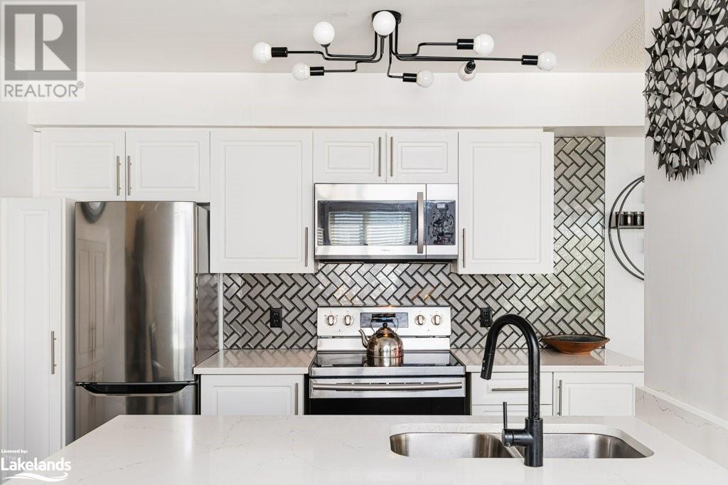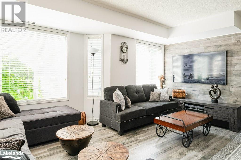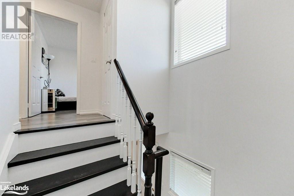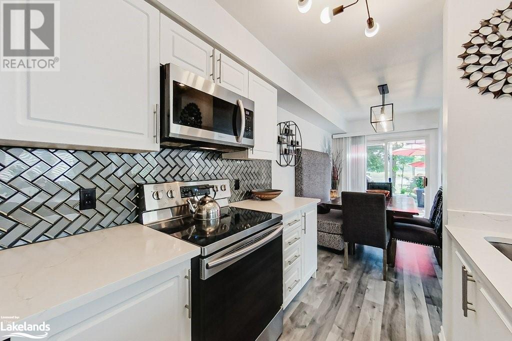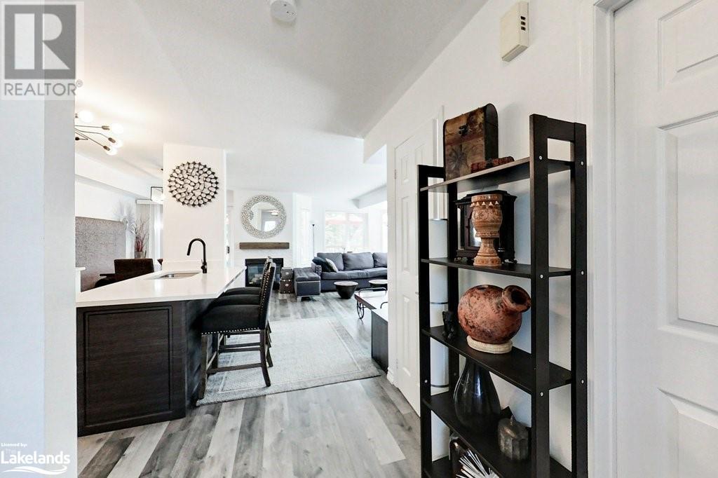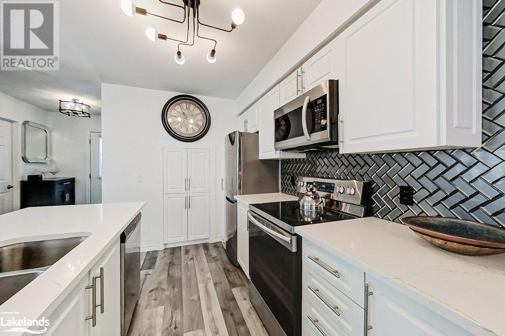Welcome to 9 Sundial Court in Collingwood. A beautiful professionally decorated and renovated 3 bdrm, 3 bath end unit townhome filled with light from large picture windows with views of a Georgian Bay feeder pond and the 9th hole of the Cranberry golf course. The main floor open concept living area features an updated kitchen with stainless-steel appliances, gas fireplace, powder room and main floor laundry. The entryway features a picturesque front veranda with privacy shrubs and garden. Rear patio doors lead out to a large private oasis deck area that steps down to a grassy yard leading you to your own secret waterfront garden where you can lounge beside a pond active with native waterfowl, such as swans and egrets, and marine life including fish and turtles; perfect for entertaining day or night. 3 bdrm’s upstairs and 2 fully renovated baths, the primary bedroom has vaulted ceilings, en-suite with luxury walk in shower and its own private balcony overlooking the pond and further towards the Bay. From the front bedroom you can see the Niagara escarpment & ski hills that light up at night making a picture-perfect scene. Adjacent to the Georgian Trail network for hiking or biking, it is also only It a 10 min drive to Blue Mountain Ski Resort, some of the best skiing in Ontario and 4 seasons of activities. A 15 min walk will get you to Princeton Shores Park with tennis courts and access to the Bay to enjoy canoeing, kayaking or paddle boarding. A 5 minutes walk will also see you at the Georgian Bay Hotel for fine dining at Gustav Chophouse restaurant. Or don’t go anywhere and relax by your own private community pool. This lovely townhome has one assigned parking space and a visitor space directly in front for convenance. Don’t miss out on this amazing home, book your own private showing today. (id:22211)