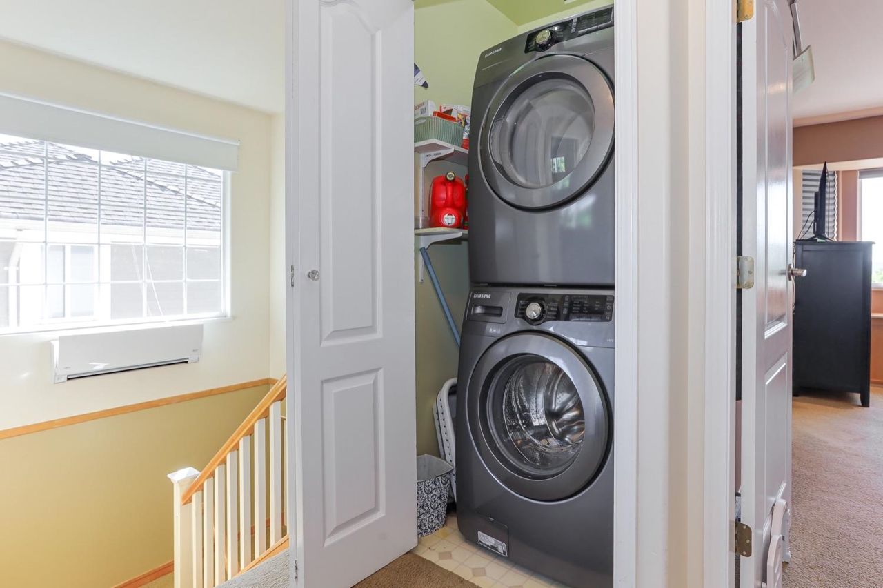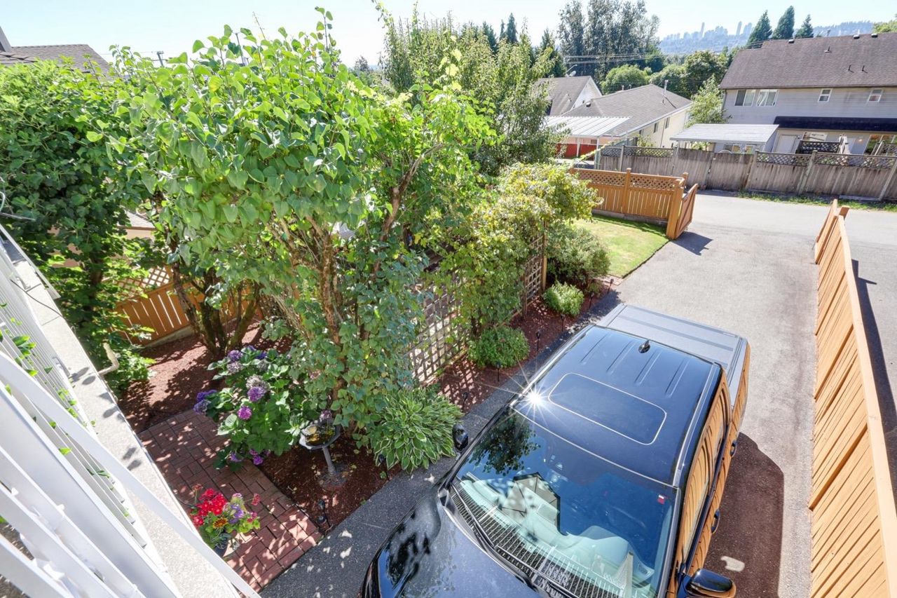 Say goodbye to strata fees! This neat as a pin, move-in ready, HALF DUPLEX, features over 2000 sqft of living space with 3 beds + DEN, 2 full baths, 2 half baths & lane access with single garage plus driveway.Super cute fenced & gated front yard with porch entry. Main floor with hardwood & tile floors. Kitchen with granite surfaces & stainless appliances, plus access to a spacious sunny, south facing deck.Powder room on the main. Upper level with 3 generously sized beds & 2 full baths. Bsmt level has den, rec room & an additional powder room, plus access to the single car garage & mature gardens with patio.Location is a commuter's dream,with easy access to Hwy 1. Only a 3-5 min drive to all levels of schooling. Upgrades include an AC (with heat pump) & a new roof. Both done in 2015.