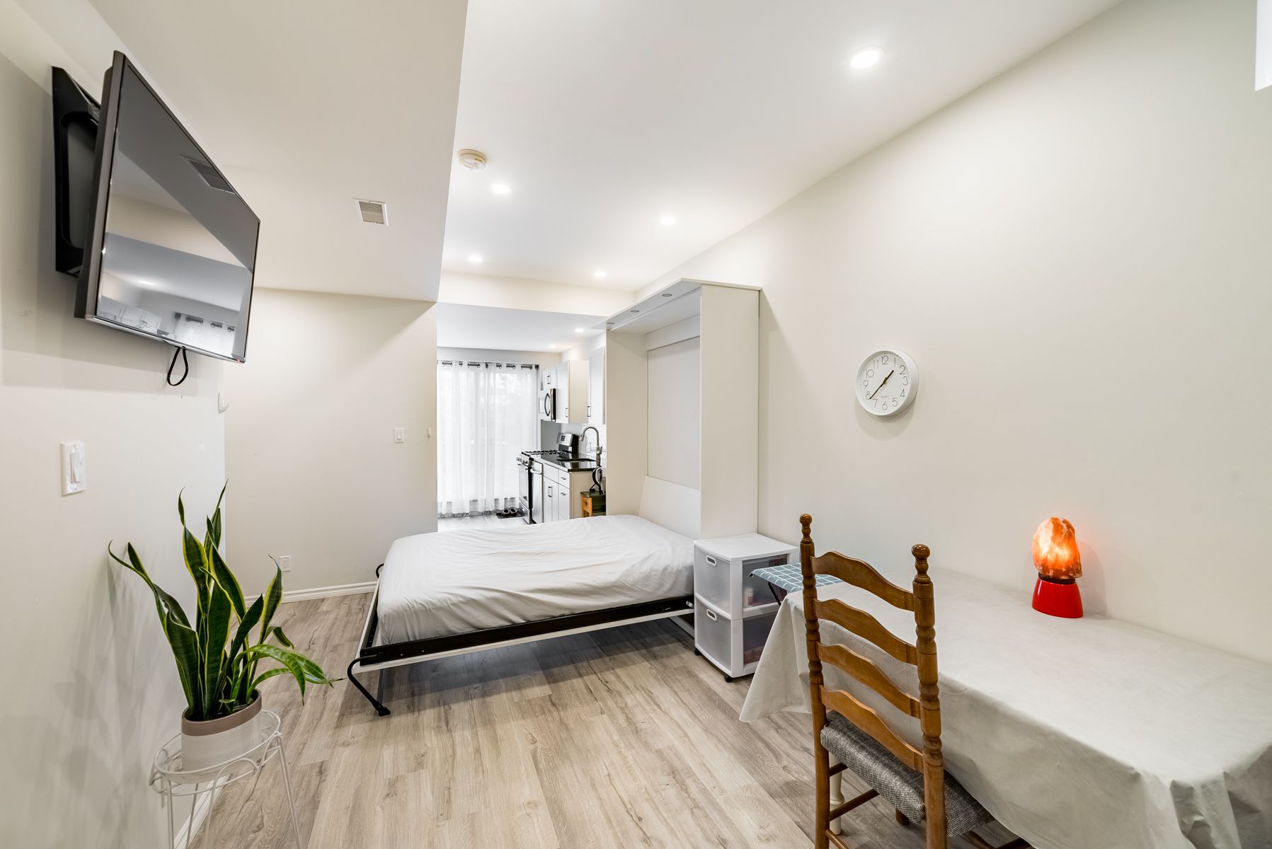 Welcome to your new home sweet home! This charming detached abode boasts comfort, versatility, and thoughtful design at every turn. The main level beckons with its inviting ambiance, featuring a generously-sized living room, a well-appointed kitchen with gas stove, & a sunny breakfast nook that leads to a covered deck an ideal spot for morning coffees or alfresco dining. Off the kitchen, a cleverly concealed stacked washer/dryer simplifies chores, while another door leads to a transformed space that was once a garage, now a versatile haven complete with a convenient 3pc washroom, kitchen sink, and direct access to the exterior front of the house. This area is heated and cooled with a separate unit, and opens up a world of possibilities, whether it's a home office, gym, or additional living space. The finished walk-out basement includes a fully-equipped legal permitted rental unit with its own kitchen, 4-pc washroom, & washer/dryer & laundry tub, walk-in cold storage, perfect for guests, in-laws, or tenants. The kitchen has b/i dishwasher & b/i microwave, and gas stove and fridge. Beautifully landscaped private yard with a roofed storage area for bikes, winter tires, or lawn furniture. Easy entrance to the backyard on wide interlocking steps.Make note of the storage space 1/2 way up the stairs to 2nd level. Storage shed for garbage & recycling @ south/front of house. Most windows & main doors 2018 or newer. Furnace (2016), shingles (2014). Hydro 2023 $1,642 Gas 2023 $1,127