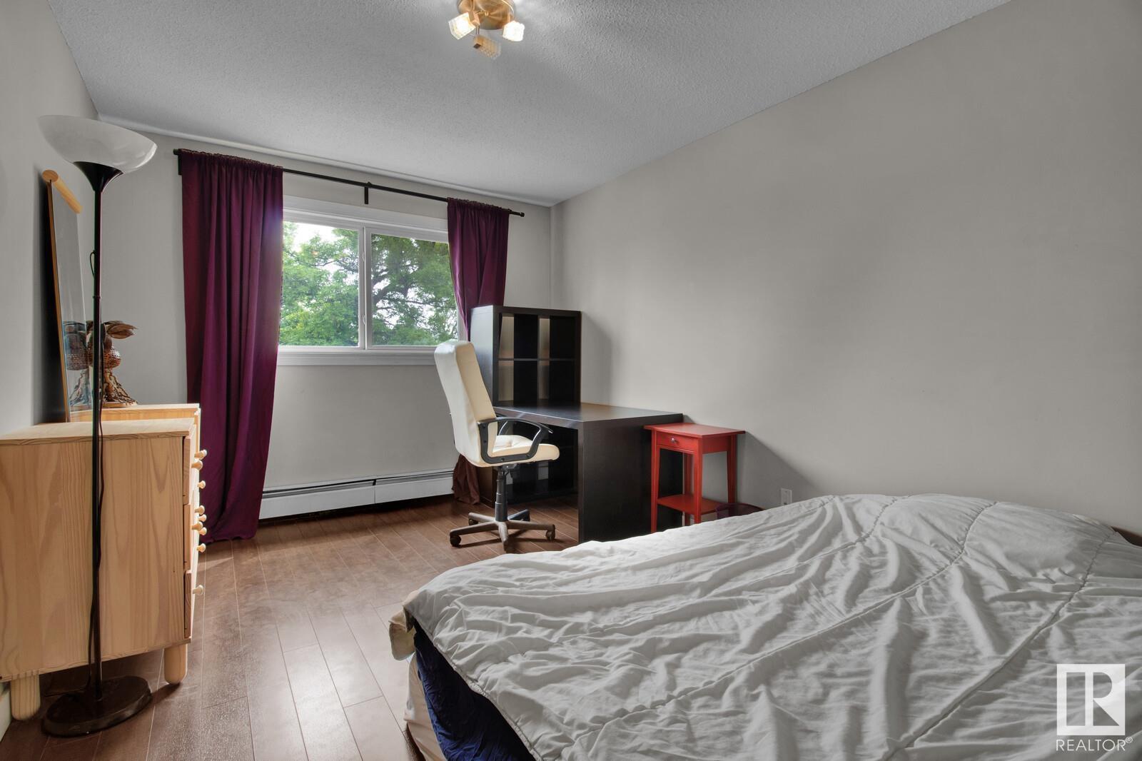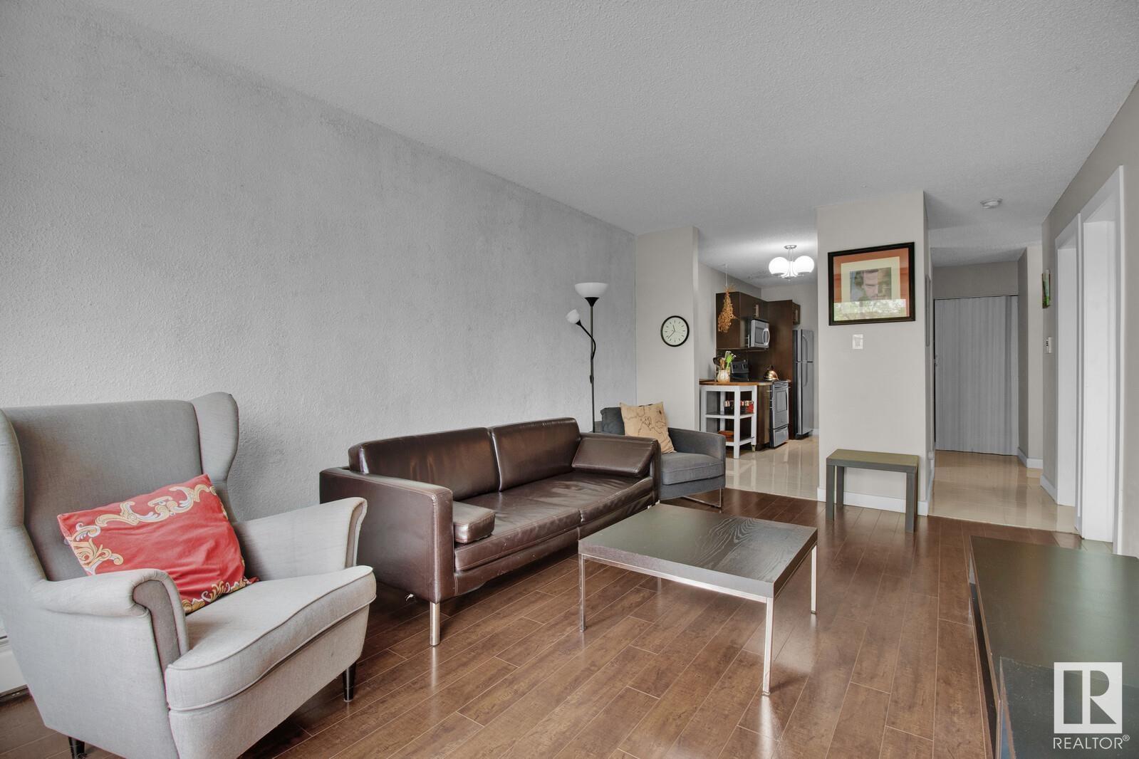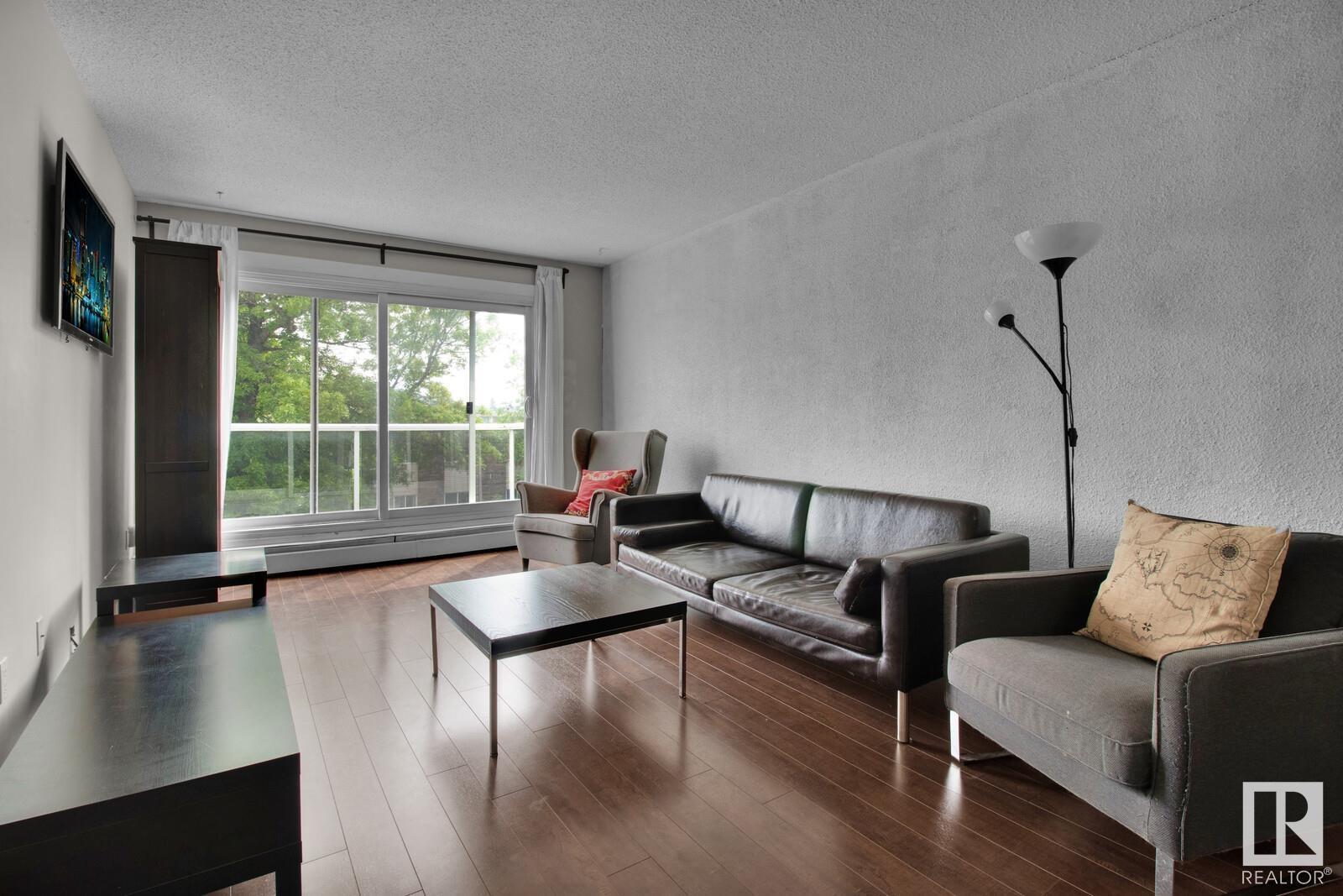 Looking for the perfect urban retreat in Westmount? Look no further than this stunning one-bedroom condo located on the fourth floor. Boasting views of both the street with mature trees and downtown, this renovated unit offers the ultimate in-city living. Sleek, modern finishes can be found throughout, from the laminate floors to the kitchen complete with stainless steel appliances and a modern bathroom with 2 sinks. The spacious living room is the perfect place to relax after a long day, while the cozy bedroom offers a peaceful retreat. Located just steps from the trendy 124 Street and Brewery District, you'll be in the heart of some of the city's best shopping, dining, and entertainment options. Whether you're a young professional or an empty nester looking for the ultimate urban lifestyle, this condo is a perfect choice. Don't miss out on the opportunity to call this amazing property your own! The furniture is included in the price if you choose to keep it (id:22211)
