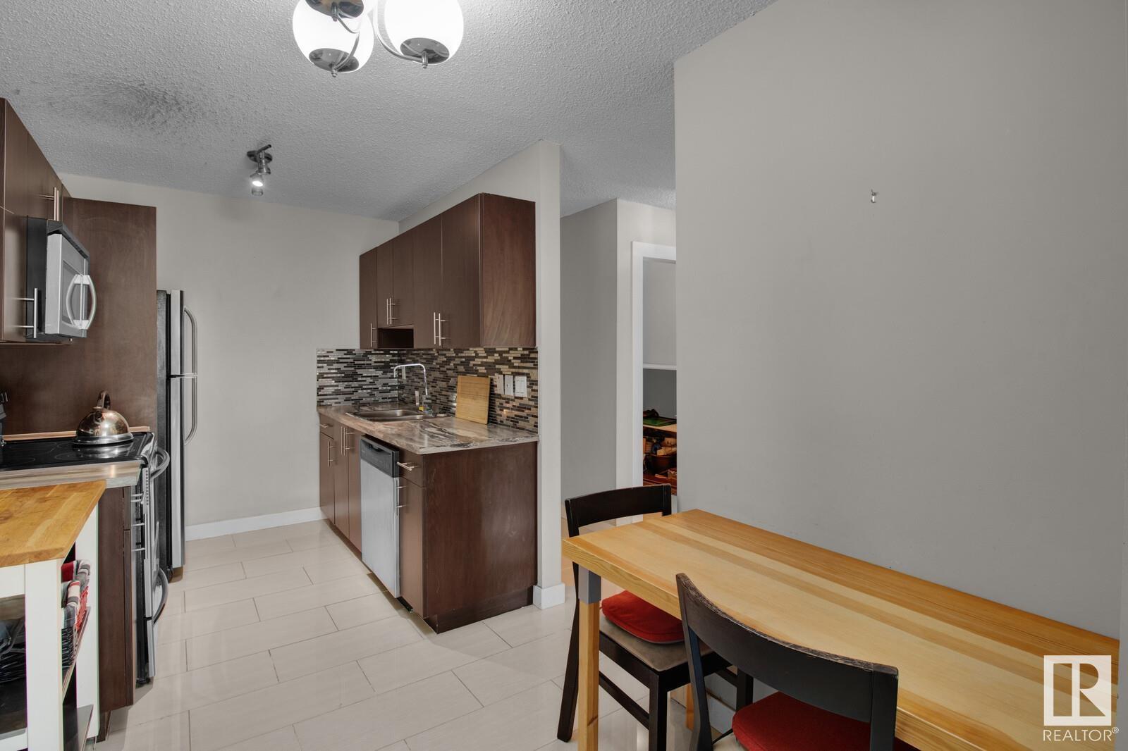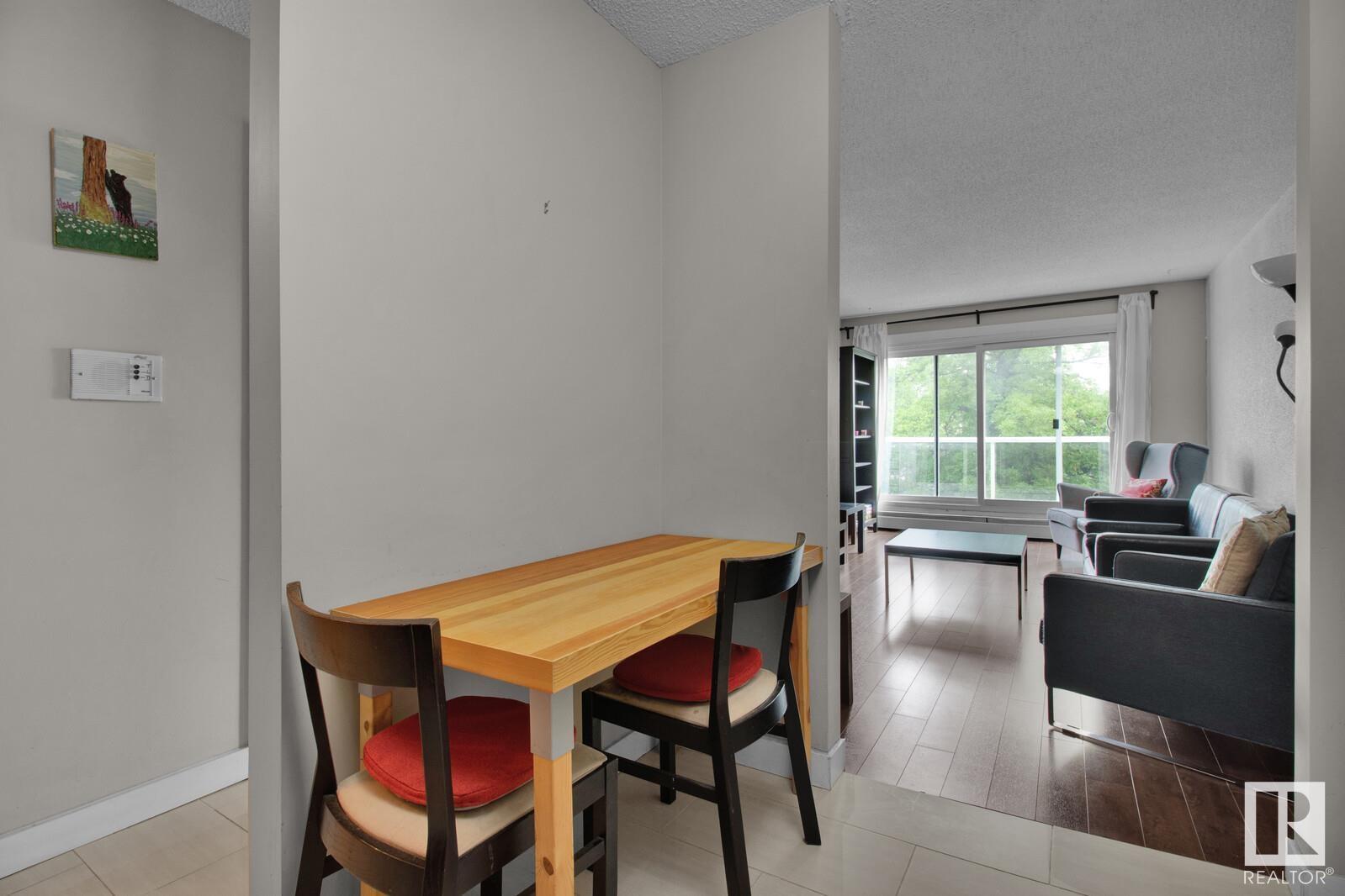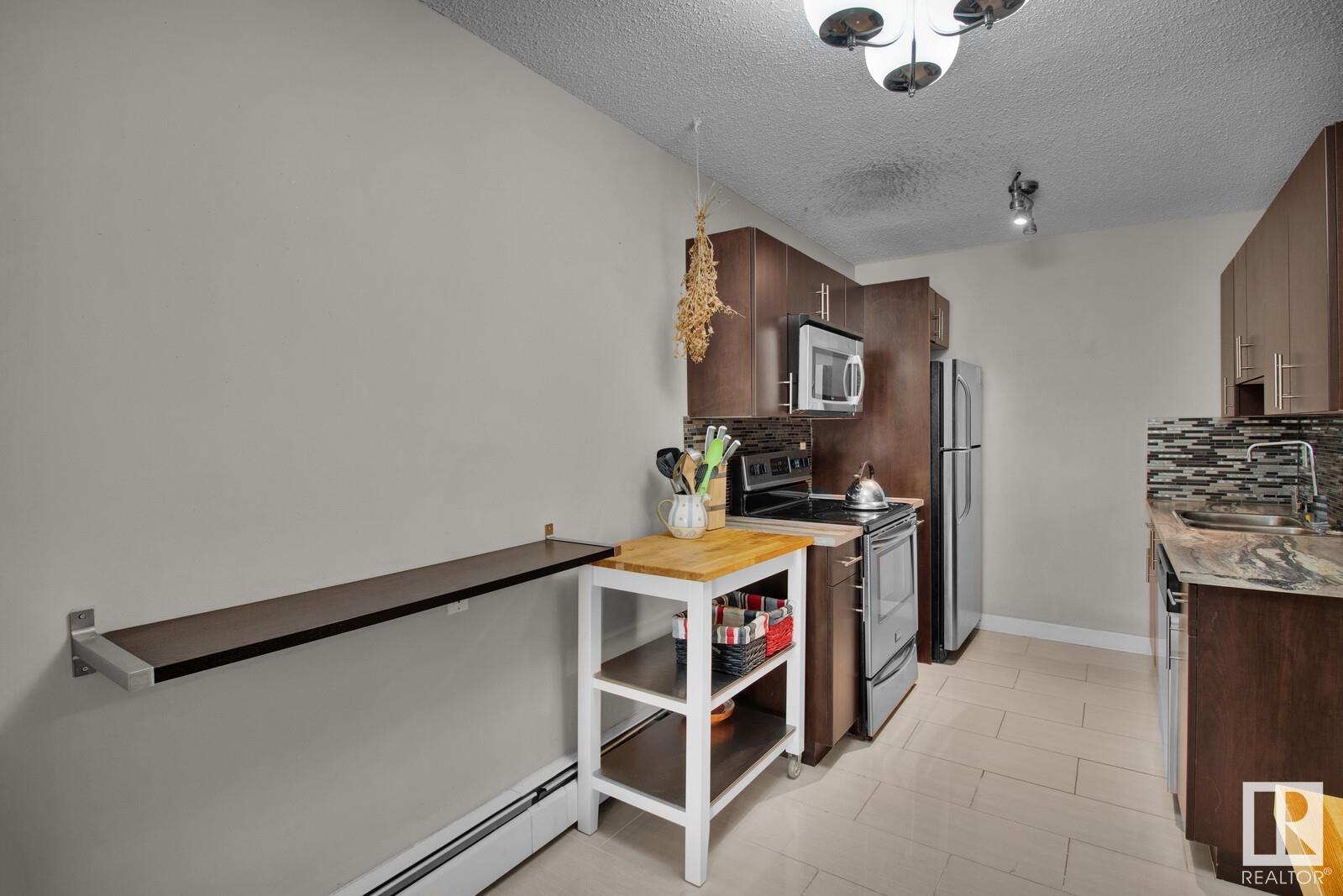 Looking for the perfect urban retreat in Westmount? Look no further than this stunning one-bedroom condo located on the fourth floor. Boasting views of both the street with mature trees and downtown, this renovated unit offers the ultimate in-city living. Sleek, modern finishes can be found throughout, from the laminate floors to the kitchen complete with stainless steel appliances and a modern bathroom with 2 sinks. The spacious living room is the perfect place to relax after a long day, while the cozy bedroom offers a peaceful retreat. Located just steps from the trendy 124 Street and Brewery District, you'll be in the heart of some of the city's best shopping, dining, and entertainment options. Whether you're a young professional or an empty nester looking for the ultimate urban lifestyle, this condo is a perfect choice. Don't miss out on the opportunity to call this amazing property your own! The furniture is included in the price if you choose to keep it (id:22211)