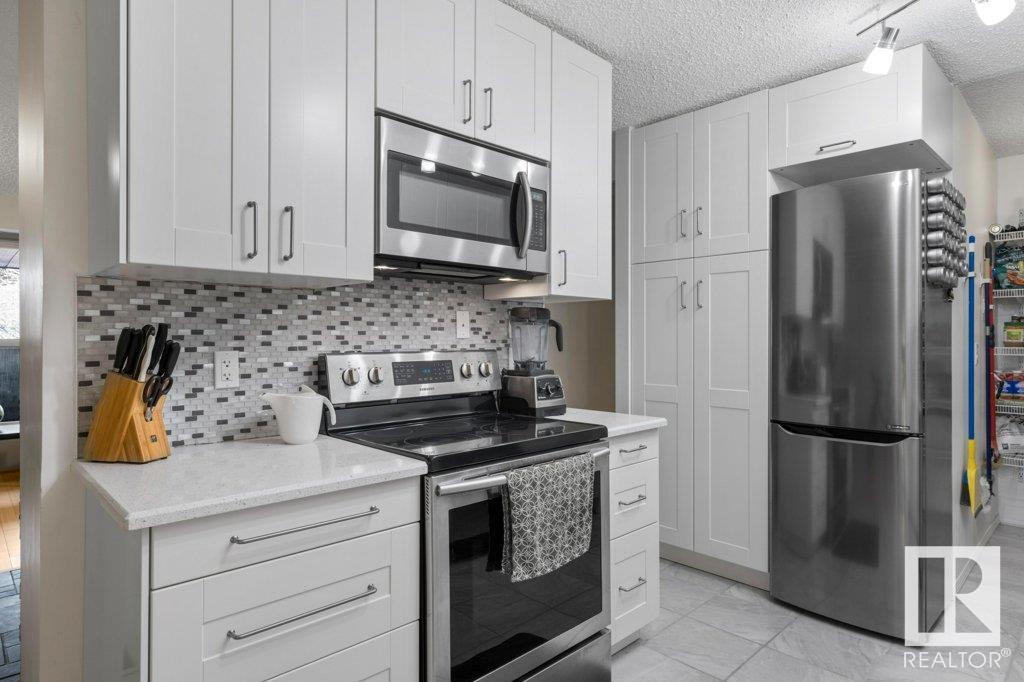 TOP FLOOR - CENTRAL A/C - NO NOISE ABOVE YOU, stay COOL on hot summer days and move-in ready, boasting almost $50,000 in RENOVATIONS. Upgrades include FULL NEW bright white KITCHEN with loads of storage and pot drawers, quartz countertops, backsplash, stainless steel appliances, and organized walk-in PANTRY with shelving; and the bathroom's tile, cabinet, fixtures, quartz countertop, and light fixtures. BAMBOO flooring throughout with ceramic tile in the kitchen, pantry and bathroom. Additional features include a cozy wood burning fireplace, private upper deck (especially summer/fall when the property is in full bloom) ready for your next BBQ, an additional exterior storage/utility room and newer hot water tank. This well maintained complex has newer windows, shingles, fences, gates, eavestroughs, downspouts and more! Located close to schools, parks, the YMCA, transportation, shopping and WEM. It's the right price and perfect for a first-time home buyer / downsizer looking for a low maintenance lifestyle. (id:22211)