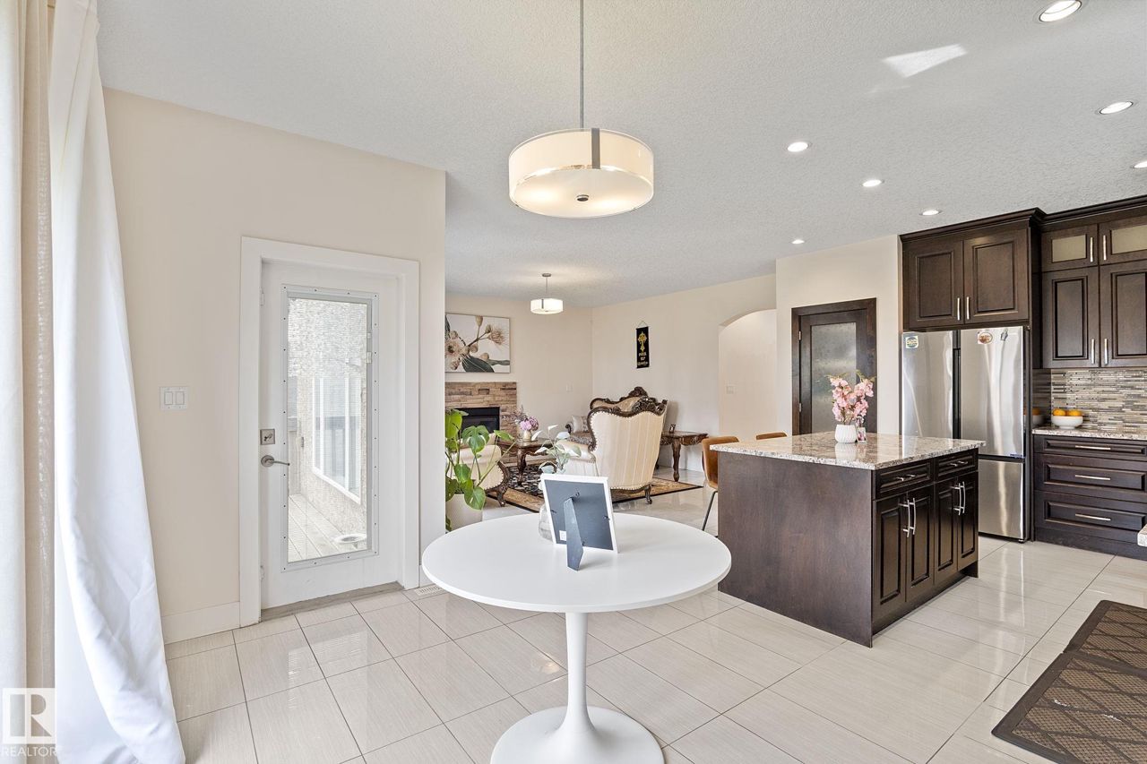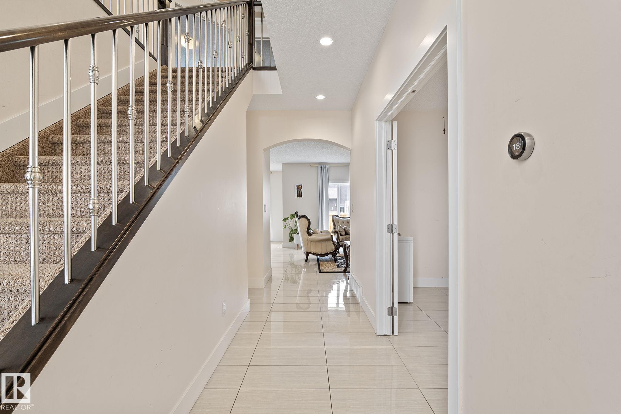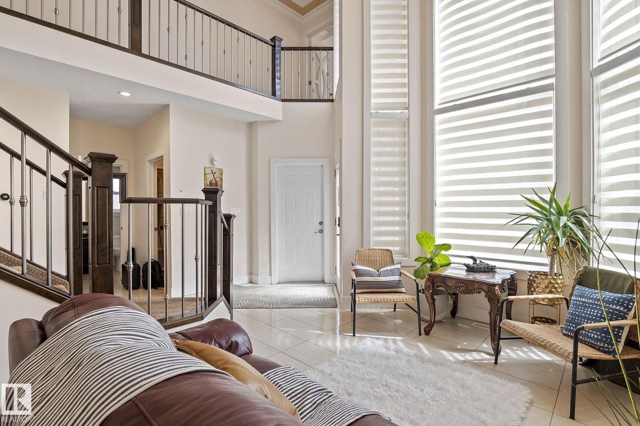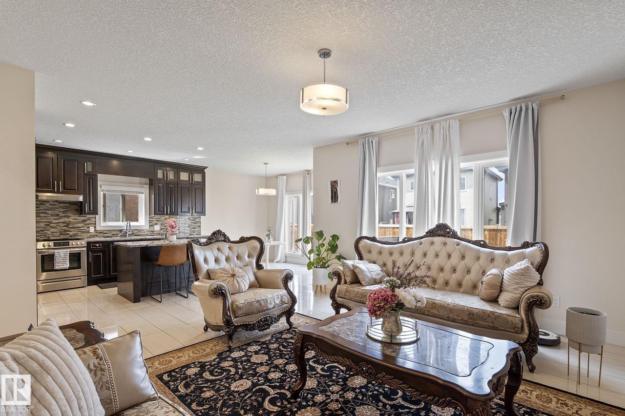 Gorgeous 2600sf 2 storey w/ basement side entrance. 5 BEDROOMS ABOVE GROUND! This beautiful home impresses right as you walk in the front door with soaring 18' ceilings - a full wall of windows & glossy tiles the whole main floor! Open concept at the back of the home with a gorgeous kitchen - dark cabinets, white granite counter & mosaic backsplash, a large granite island with stool seating & newer stainless steel appliances. There's a gas fireplace in the living room & the dining area opens up to the west-facing back yard. Main floor also features a bedroom & full bathroom with tub! There are 4 bedrooms upstairs, 2 full bathrooms, a laundry room & a loft area for an office or play area. The basement is unfinished, but the bathroom is roughed in, 9' ceilings & large windows will make for a great basement or future suite. Good sized yard & great location a block away from a K-6 school & a couple block walk to No Frills.
