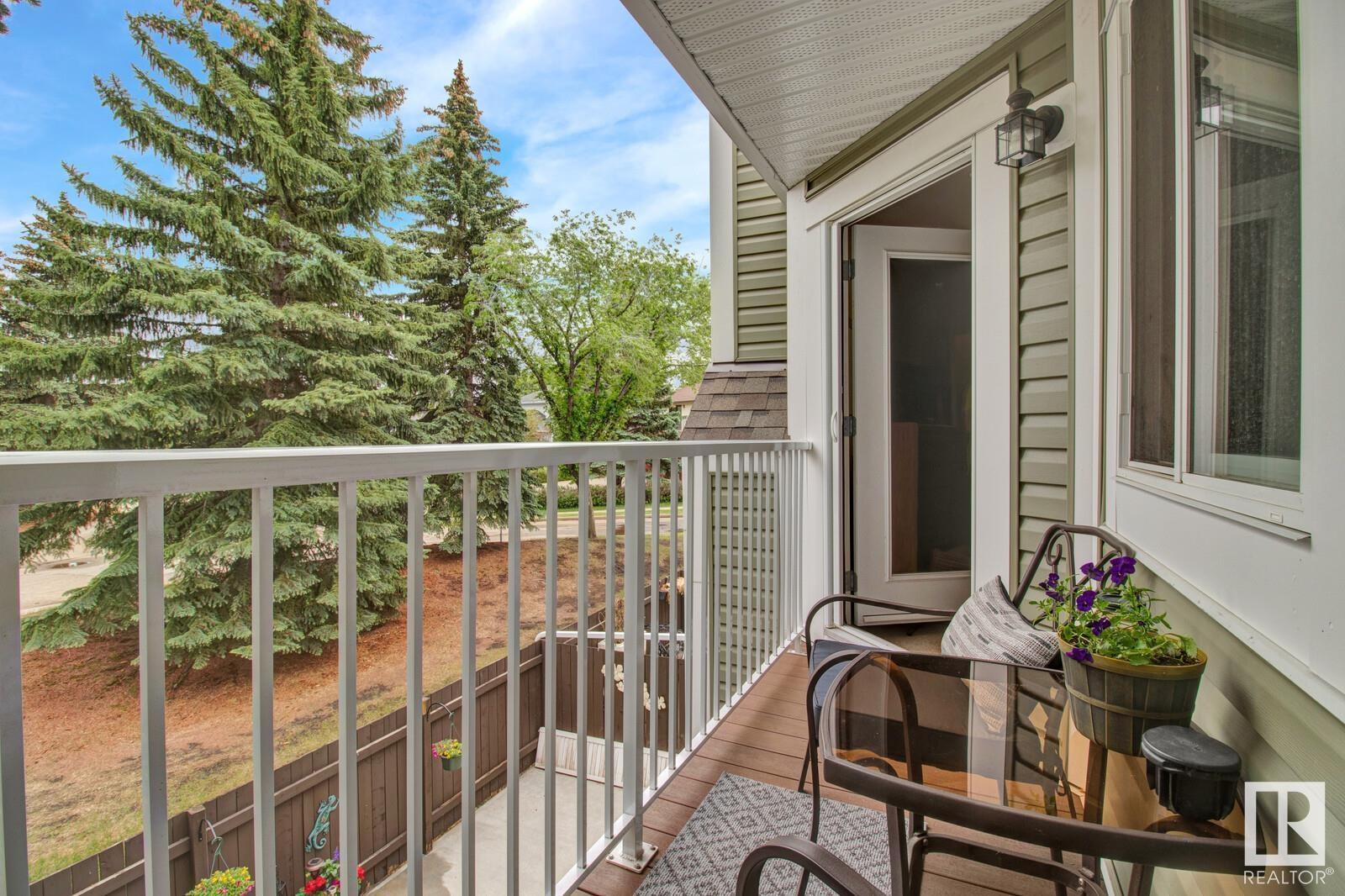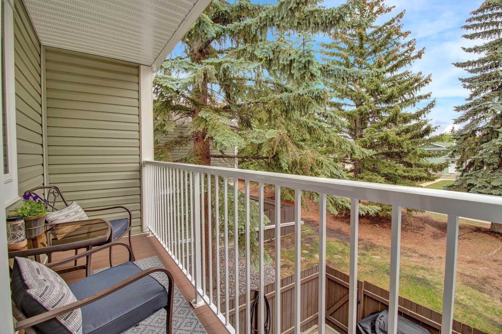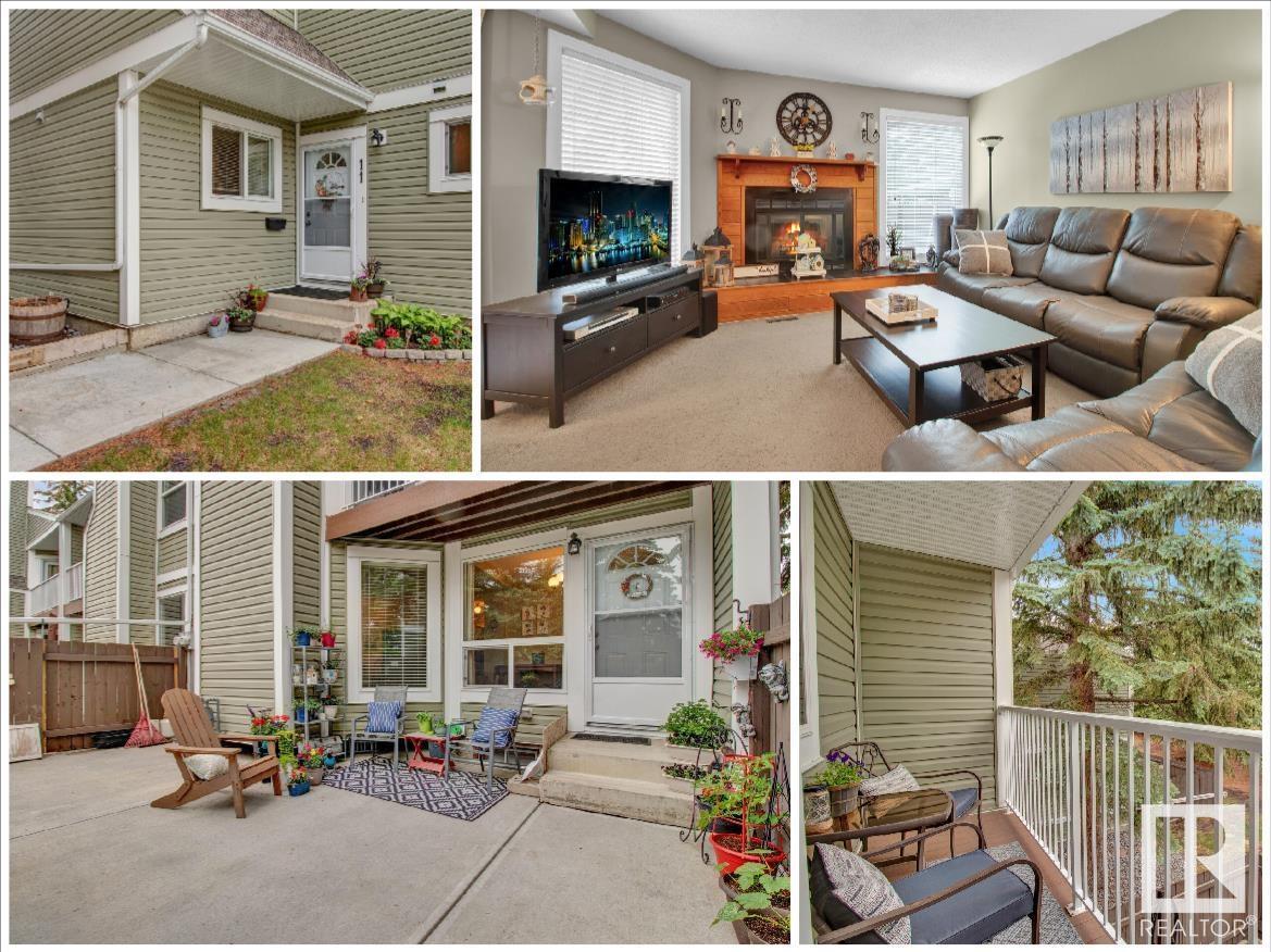 Spacious townhome complex located close to everything! Nearby park, schools + easy access to bus service. Park right outside your door + plenty of visitor parking. This 3 bedroom townhome has neutral dcor. Primary bedroom has its own private balcony. L-shaped kitchen with light cabinets. Great entertaining area at the back of the townhome with wood burning fireplace as a focal point, dining area has sunny windows & access to the fenced backyard & large concrete patio for BBQ's. Convenient main floor laundry or den - so much more pleasant to do laundry when you don't have to go down to the basement! If you prefer a main floor den or bedroom you could consider moving the laundry into the unfinished basement. Upstairs bathroom with window has 2 sinks in the vanity + there is a main floor powder room. Backyard and balcony look out to some majestic tall trees for added privacy. Tons of upgrades to the complex, siding, shingles, soffits & fascia, windows, concrete sidewalks and patios - looks pristine! (id:22211)