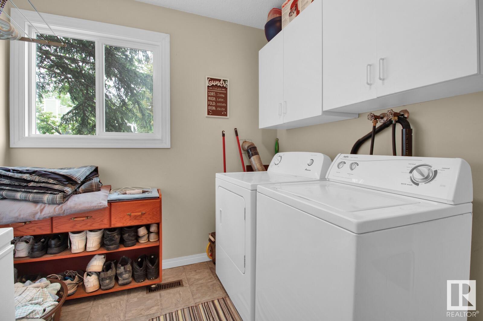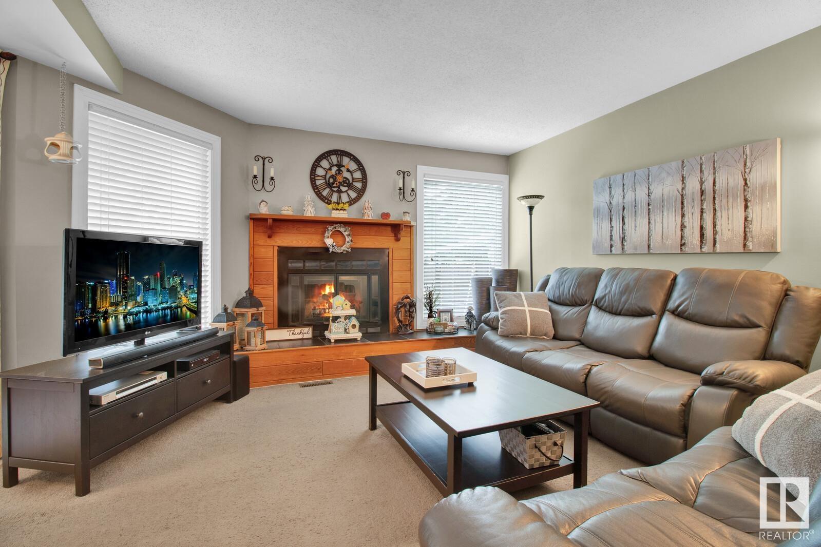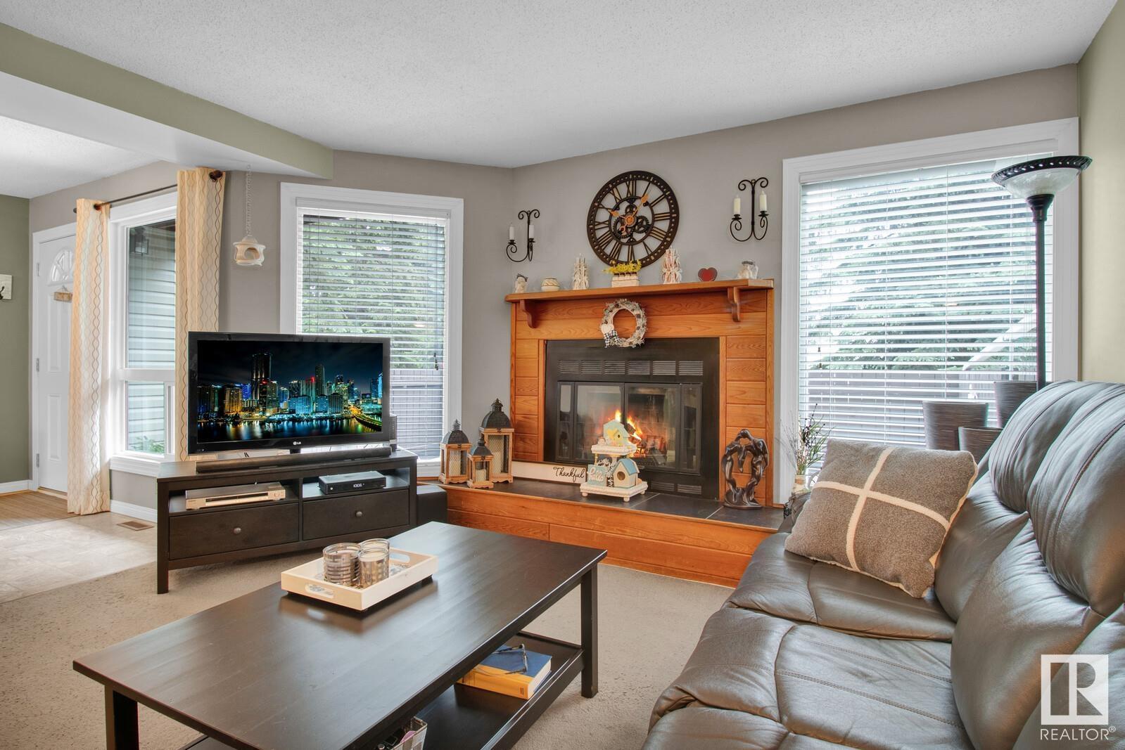 Spacious townhome complex located close to everything! Nearby park, schools + easy access to bus service. Park right outside your door + plenty of visitor parking. This 3 bedroom townhome has neutral dcor. Primary bedroom has its own private balcony. L-shaped kitchen with light cabinets. Great entertaining area at the back of the townhome with wood burning fireplace as a focal point, dining area has sunny windows & access to the fenced backyard & large concrete patio for BBQ's. Convenient main floor laundry or den - so much more pleasant to do laundry when you don't have to go down to the basement! If you prefer a main floor den or bedroom you could consider moving the laundry into the unfinished basement. Upstairs bathroom with window has 2 sinks in the vanity + there is a main floor powder room. Backyard and balcony look out to some majestic tall trees for added privacy. Tons of upgrades to the complex, siding, shingles, soffits & fascia, windows, concrete sidewalks and patios - looks pristine! (id:22211)