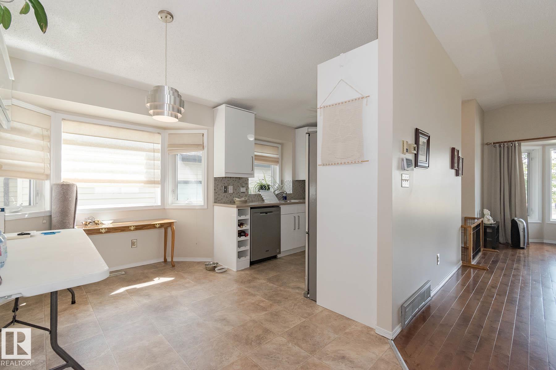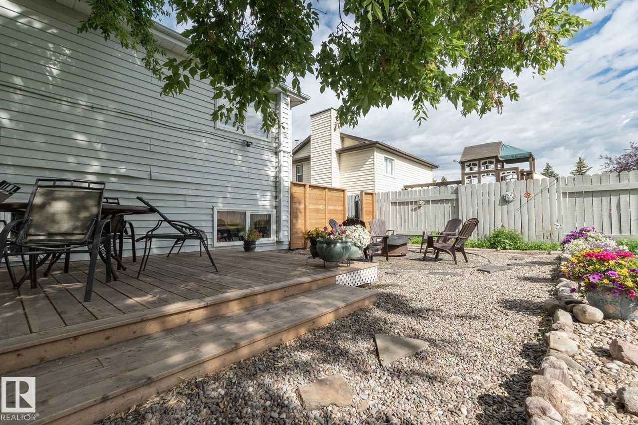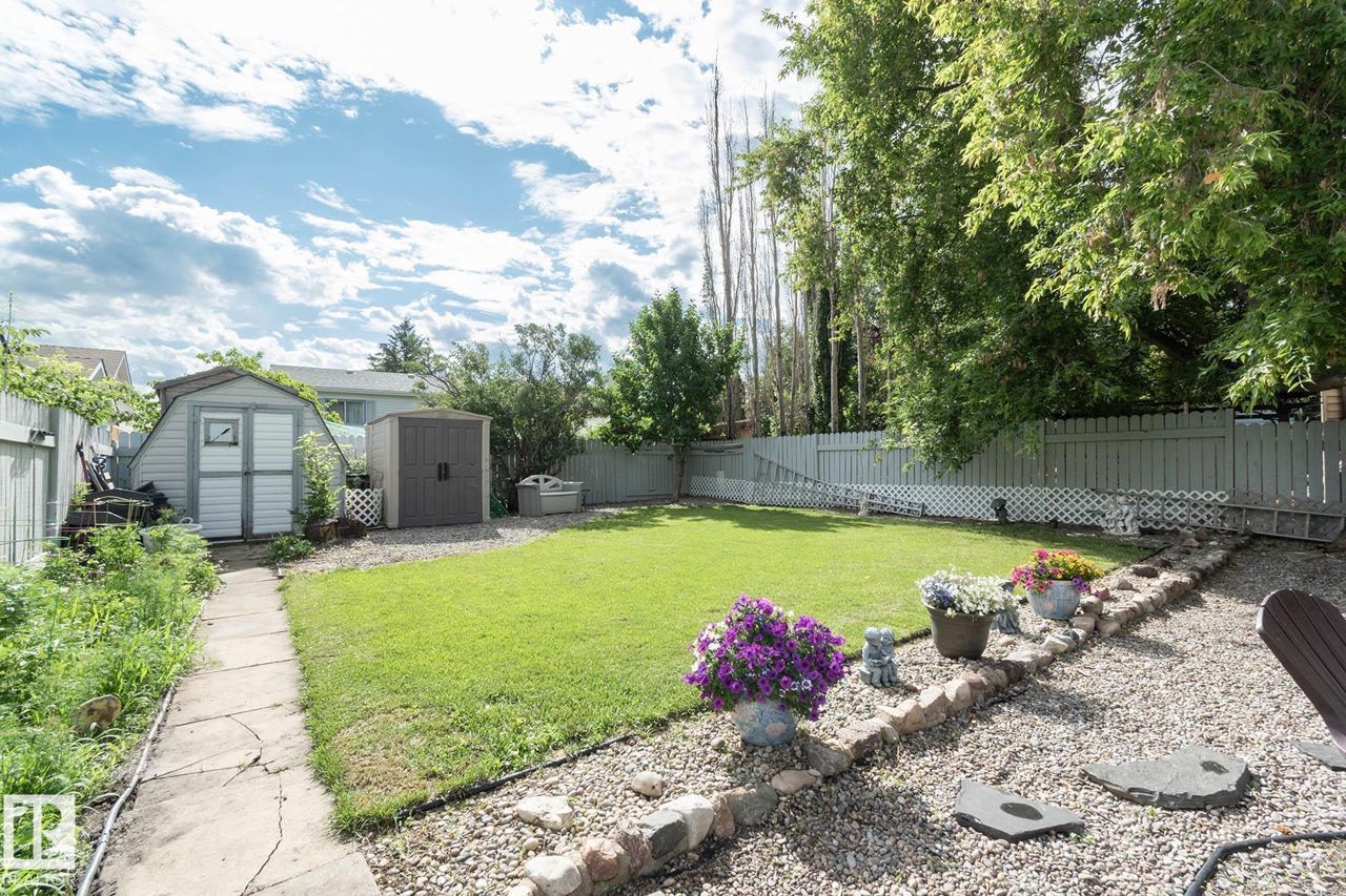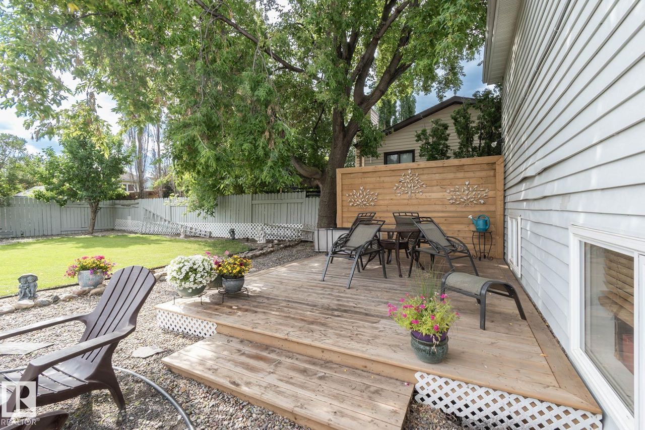 Charming 4-Level Split with Beautiful Backyard. Welcome to this well-maintained single-family home on a quiet street in Mill Woods. Offering a total of 5 bedrooms & 2 full bathrooms plus plenty of space for a growing family. Main floor is bright & welcoming with large windows & newer kitchen featuring updated cabinets, countertops & appliances. Upstairs you have 3 decent sized bedrooms & full bath. Step down a level for a cozy family room perfect for movie nights or kids play area, along with extra bedroom & full bath. Step down again & you have additional bedroom, office area plus laundry, utilities & tons of storage. Updates include newer roof (2023), windows, kitchen(2019) & HWT (2023) so you can move in with peace of mind. Outside is a true highlight. Sunny backyard bursting with flowers, lush green lawn, & newer deck(2023) that enjoys partial shade from mature trees, perfect to relax or entertaining. Ample parking on the driveway plus located close to parks, schools, shopping, & public transit.