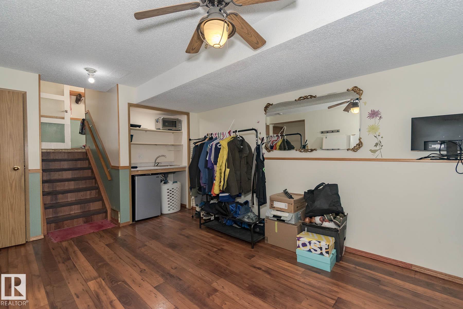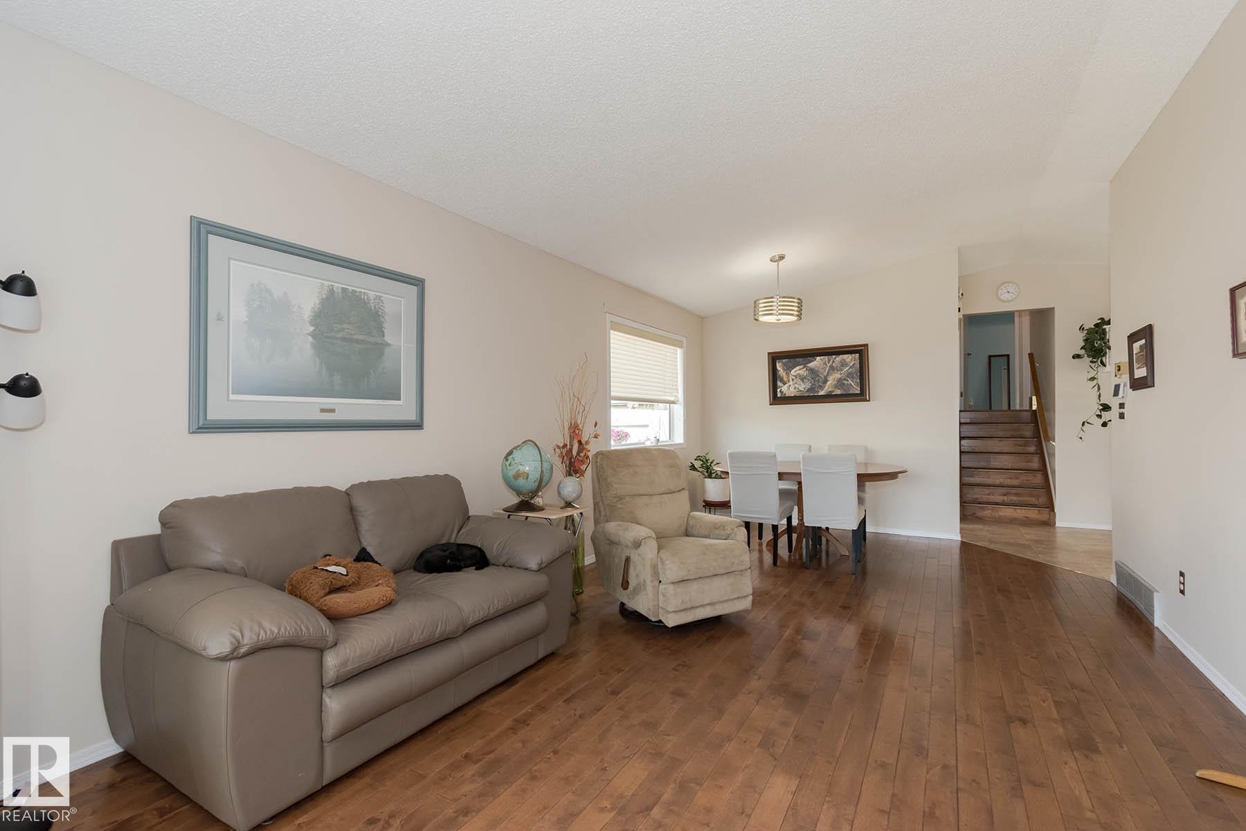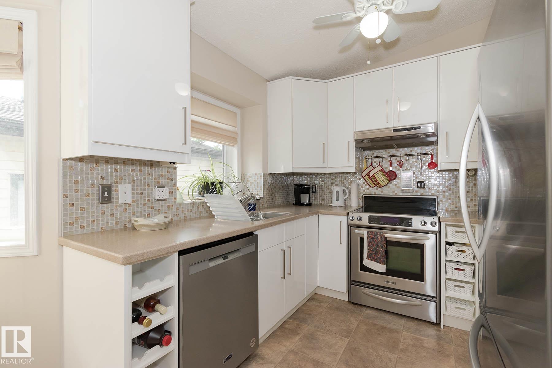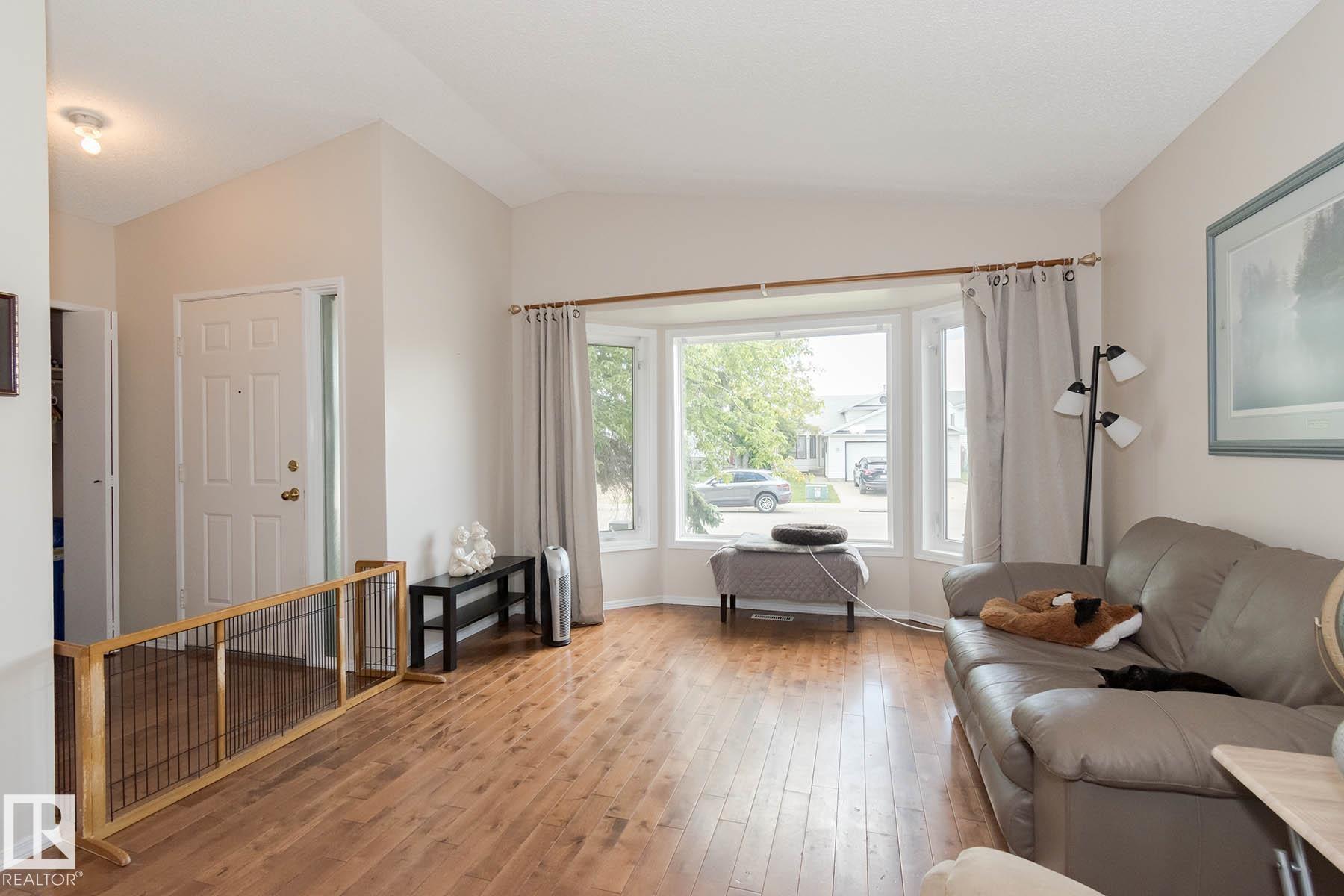 Charming 4-Level Split with Beautiful Backyard. Welcome to this well-maintained single-family home on a quiet street in Mill Woods. Offering a total of 5 bedrooms & 2 full bathrooms plus plenty of space for a growing family. Main floor is bright & welcoming with large windows & newer kitchen featuring updated cabinets, countertops & appliances. Upstairs you have 3 decent sized bedrooms & full bath. Step down a level for a cozy family room perfect for movie nights or kids play area, along with extra bedroom & full bath. Step down again & you have additional bedroom, office area plus laundry, utilities & tons of storage. Updates include newer roof (2023), windows, kitchen(2019) & HWT (2023) so you can move in with peace of mind. Outside is a true highlight. Sunny backyard bursting with flowers, lush green lawn, & newer deck(2023) that enjoys partial shade from mature trees, perfect to relax or entertaining. Ample parking on the driveway plus located close to parks, schools, shopping, & public transit.