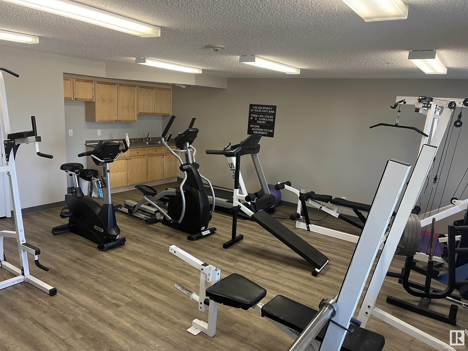 Price Reduced - Owner wants it SOLD!! Bright east facing ground floor unit in a CONCRETE & STEEL building with Heated Underground Parking and Central Air Conditioning! Very private & spacious ONE bedroom unit, completely repainted with brand new vinyl plank flooring! The heat pump has also been recently replaced. Great location in a well managed building close to all amenities including: Whitemud, Anthony Henday, schools, West Edmonton Mall, Costco and lots of retail shopping & services nearby. Only 20 minutes to the airport too! Nice gym onsite with new treadmill, bike and elliptical machines. The concrete & steel construction provides superior noise suppression and, along with the Hardie board exterior, make this a very quiet & fire retardant building! Common areas (hallways & stairwells) have just been completelyrefreshed with new paint & flooring. At under $155K, this unit offers tremendousvalue in a pet and investor friendly building! Quick possession available. (id:22211)