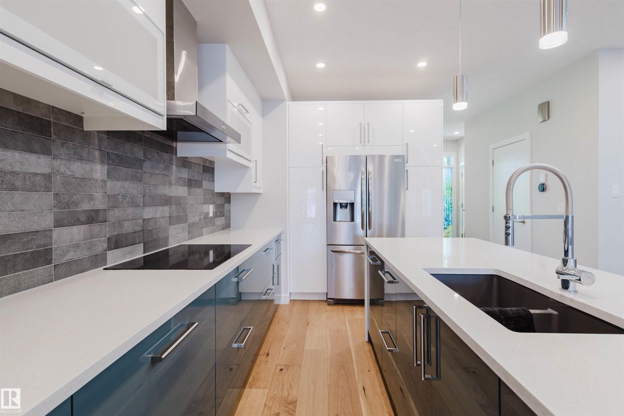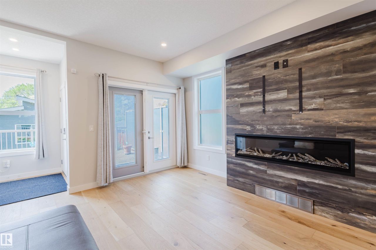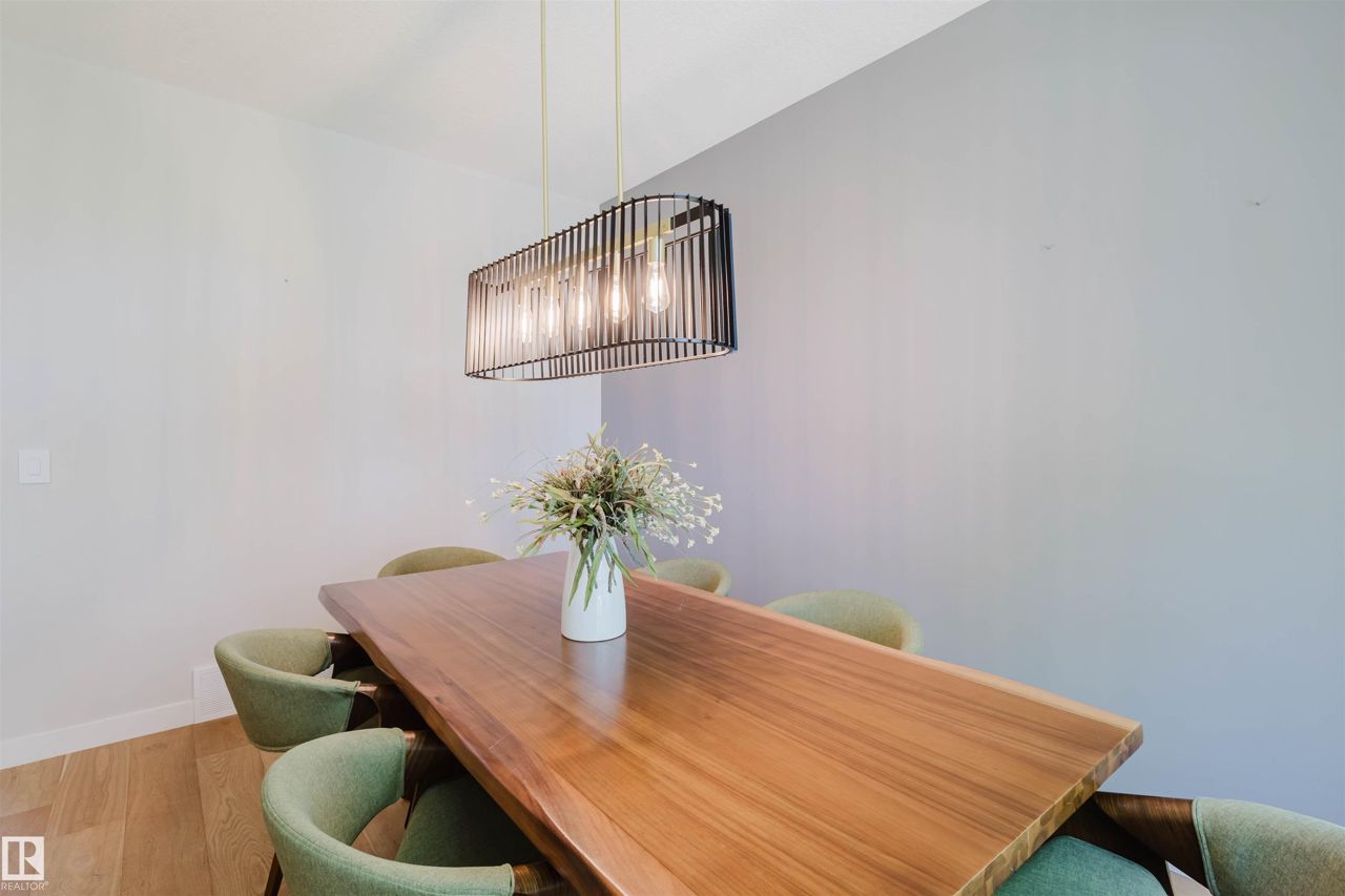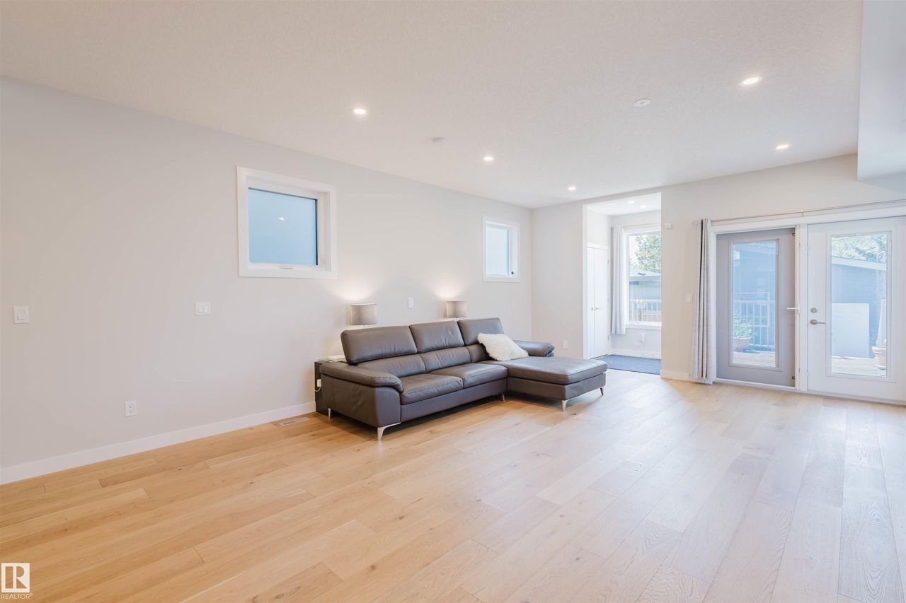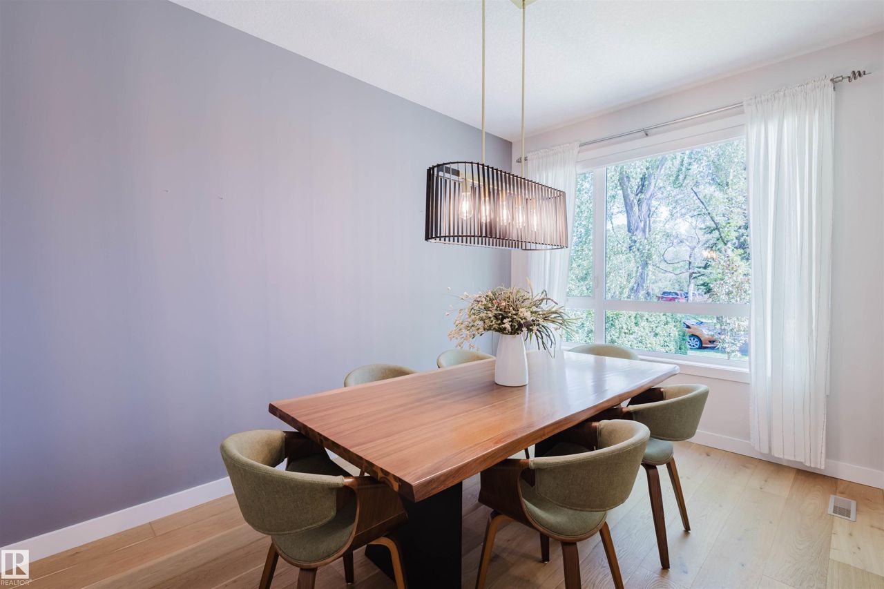 Where timeless design meets everyday ease—this stunning infill in Holyrood offers nearly 3,000 sq ft of finished living space across three stylish levels. Enjoy 9’ ceilings throughout, rough-hewn engineered oak flooring, and a chef-inspired kitchen with quartz waterfall island, induction cooktop, and built-in wall oven. The open-concept layout is anchored by sun-filled living and dining spaces, while the finished basement adds two more bedrooms, a wet bar, and family room. Thoughtful extras include motorized blinds, WiFi thermostat, tankless hot water, central air, and a 50 amp EV charger in the oversized heated garage. The fully landscaped backyard is a private escape with gas BBQ hookup, mature trees, and a remote-controlled motorized retractable awning that extends shade on demand. Just steps to the new LRT, river valley, parks, and minutes to downtown—this is upscale, walkable living in one of Edmonton’s most established and desirable neighbourhoods.