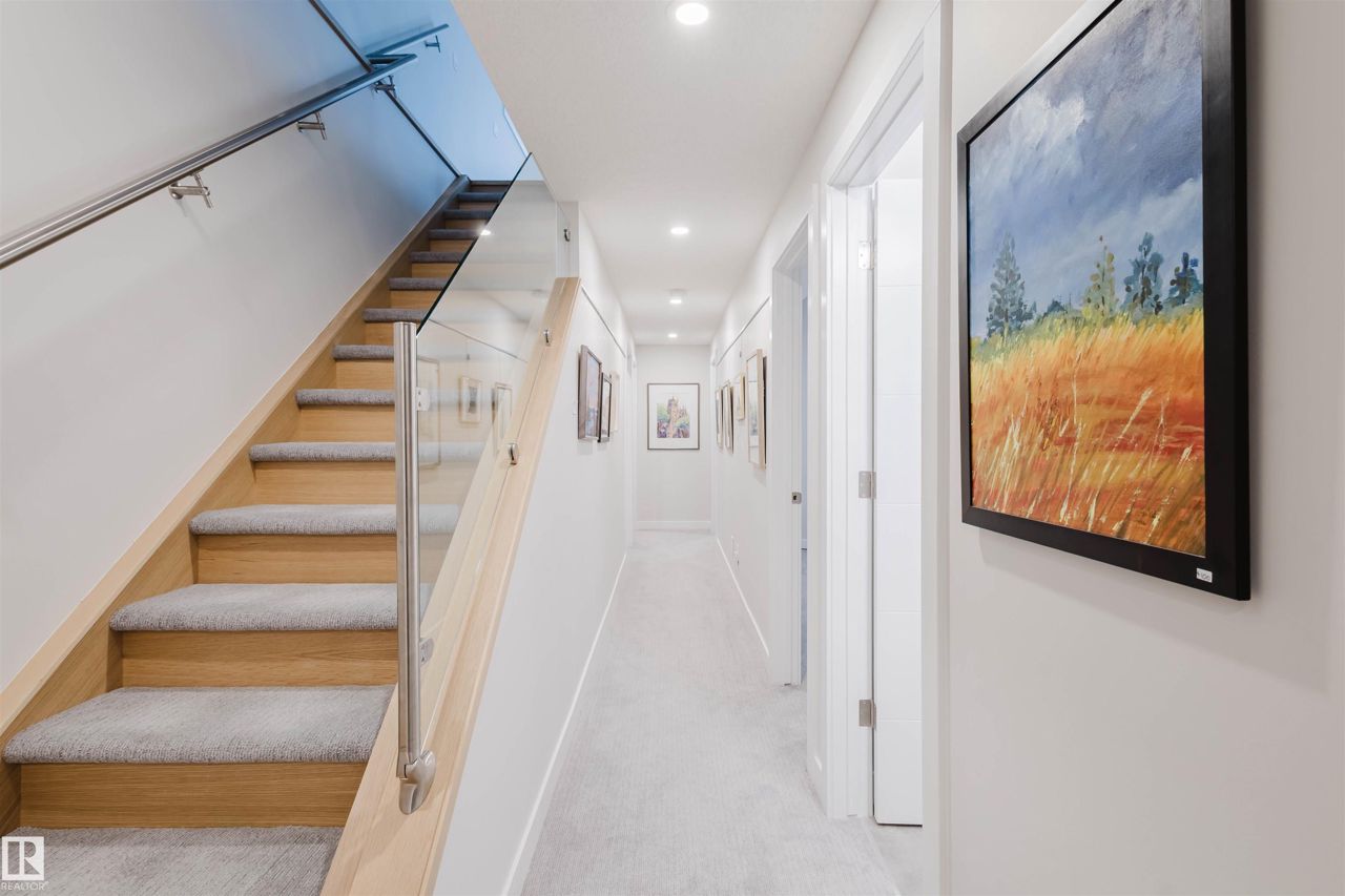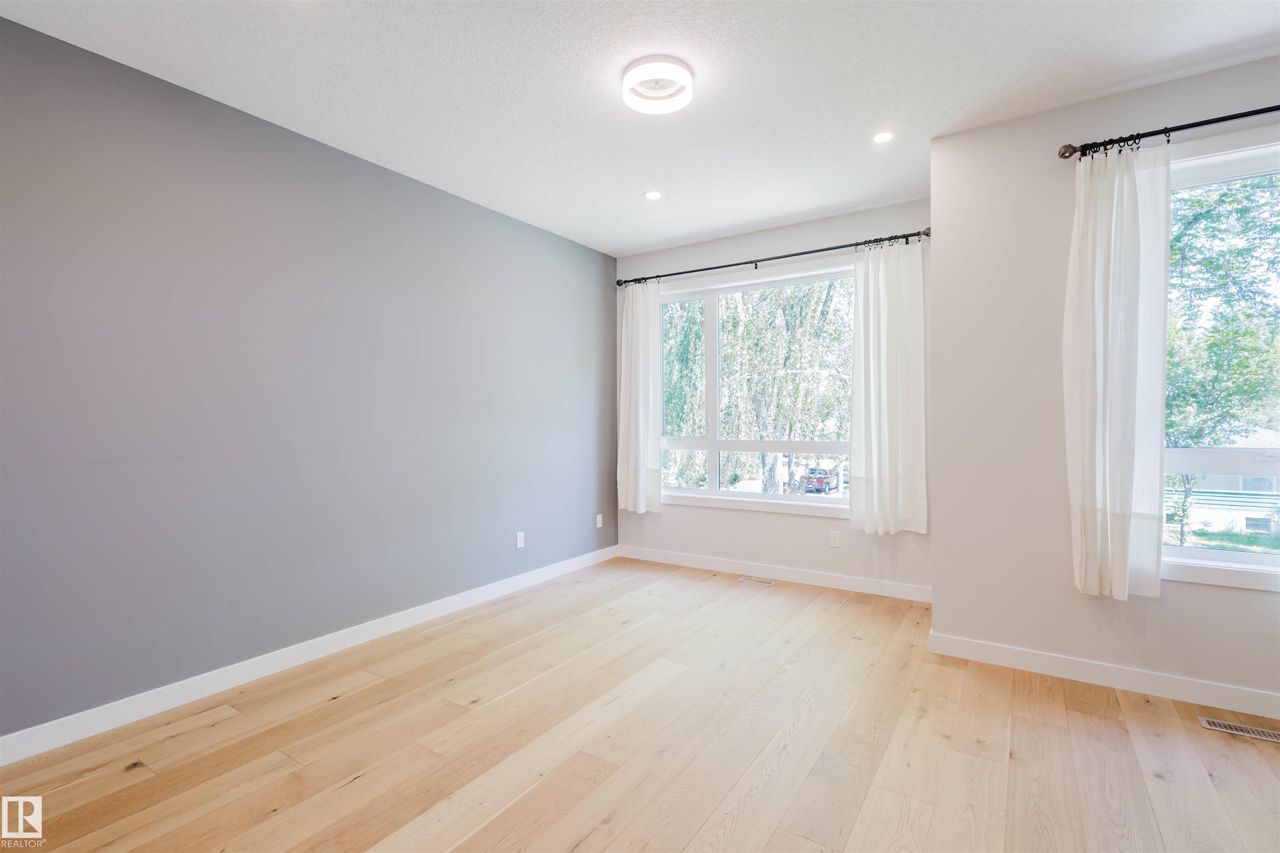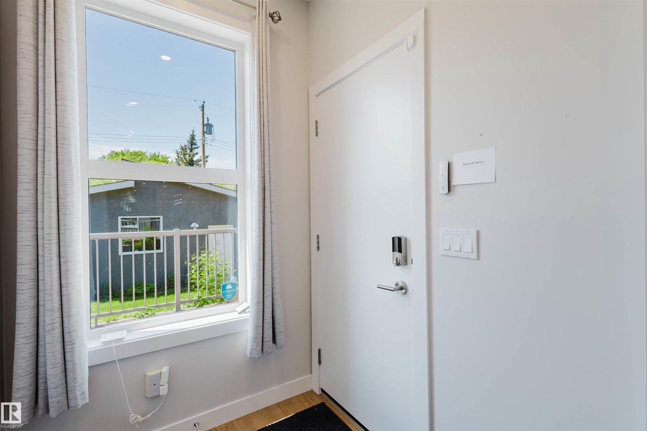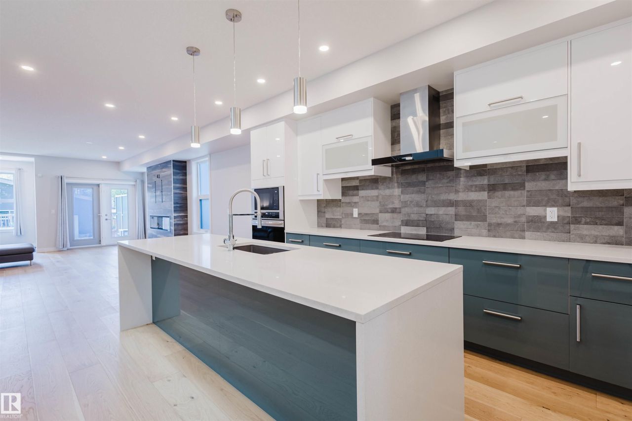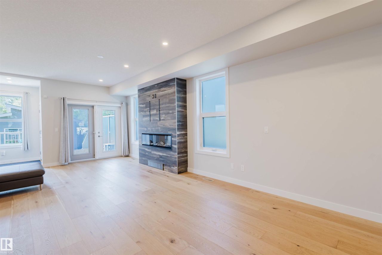 Where timeless design meets everyday ease—this stunning infill in Holyrood offers nearly 3,000 sq ft of finished living space across three stylish levels. Enjoy 9’ ceilings throughout, rough-hewn engineered oak flooring, and a chef-inspired kitchen with quartz waterfall island, induction cooktop, and built-in wall oven. The open-concept layout is anchored by sun-filled living and dining spaces, while the finished basement adds two more bedrooms, a wet bar, and family room. Thoughtful extras include motorized blinds, WiFi thermostat, tankless hot water, central air, and a 50 amp EV charger in the oversized heated garage. The fully landscaped backyard is a private escape with gas BBQ hookup, mature trees, and a remote-controlled motorized retractable awning that extends shade on demand. Just steps to the new LRT, river valley, parks, and minutes to downtown—this is upscale, walkable living in one of Edmonton’s most established and desirable neighbourhoods.