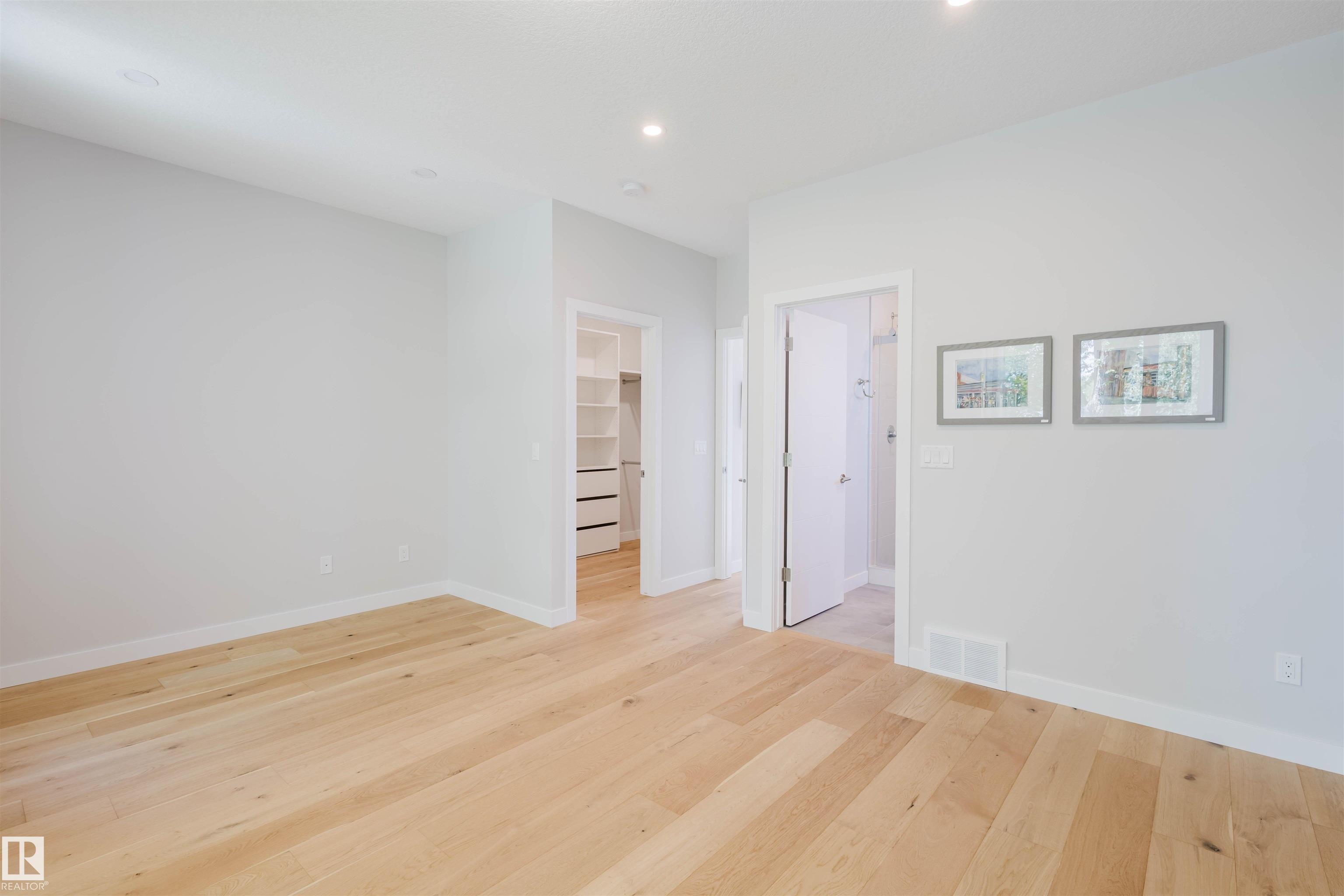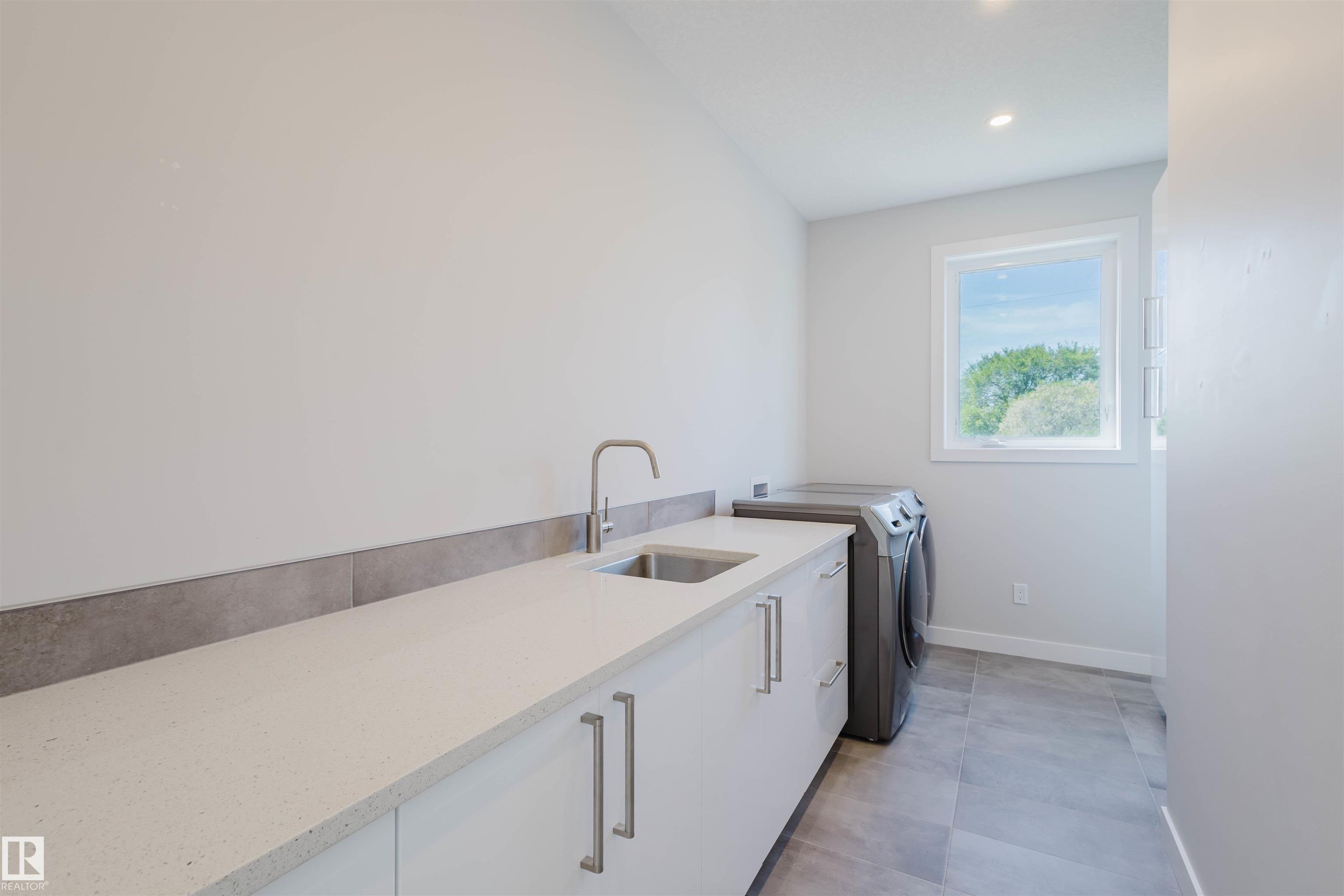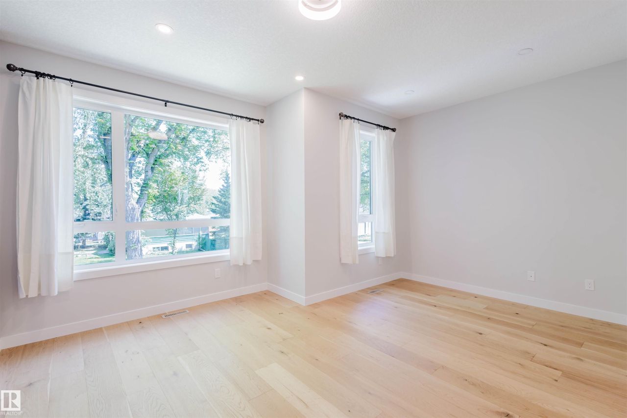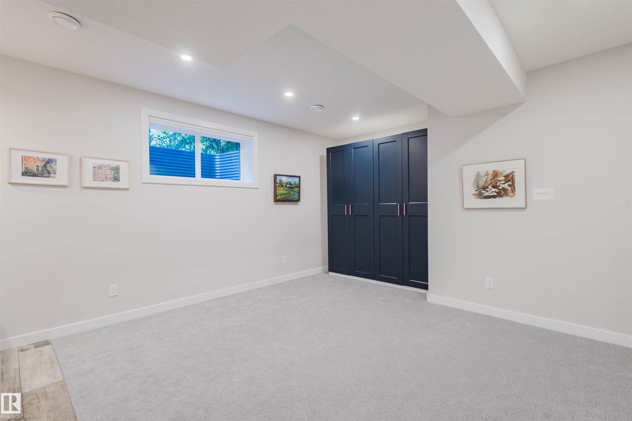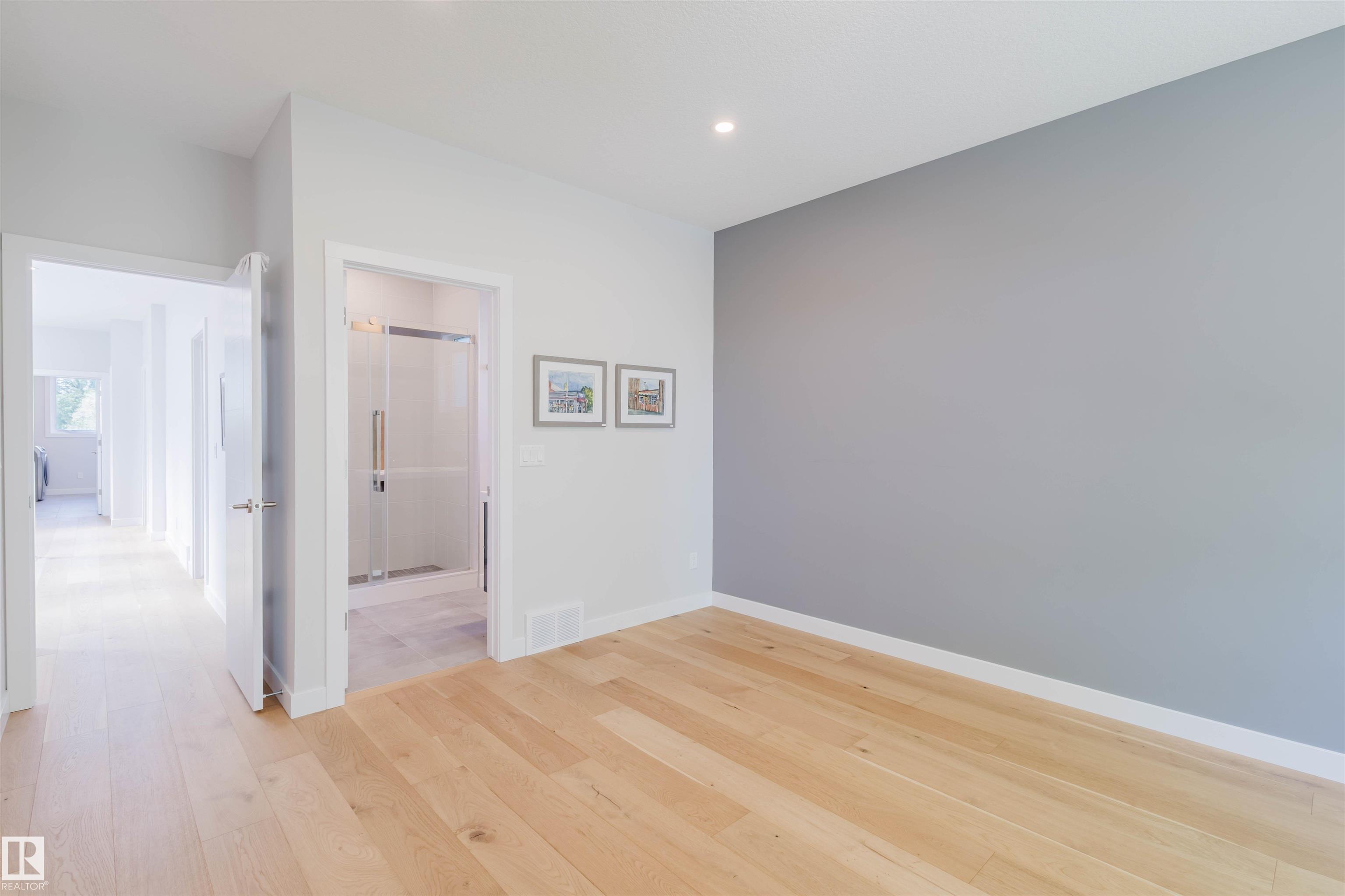 Where timeless design meets everyday ease—this stunning infill in Holyrood offers nearly 3,000 sq ft of finished living space across three stylish levels. Enjoy 9’ ceilings throughout, rough-hewn engineered oak flooring, and a chef-inspired kitchen with quartz waterfall island, induction cooktop, and built-in wall oven. The open-concept layout is anchored by sun-filled living and dining spaces, while the finished basement adds two more bedrooms, a wet bar, and family room. Thoughtful extras include motorized blinds, WiFi thermostat, tankless hot water, central air, and a 50 amp EV charger in the oversized heated garage. The fully landscaped backyard is a private escape with gas BBQ hookup, mature trees, and a remote-controlled motorized retractable awning that extends shade on demand. Just steps to the new LRT, river valley, parks, and minutes to downtown—this is upscale, walkable living in one of Edmonton’s most established and desirable neighbourhoods.