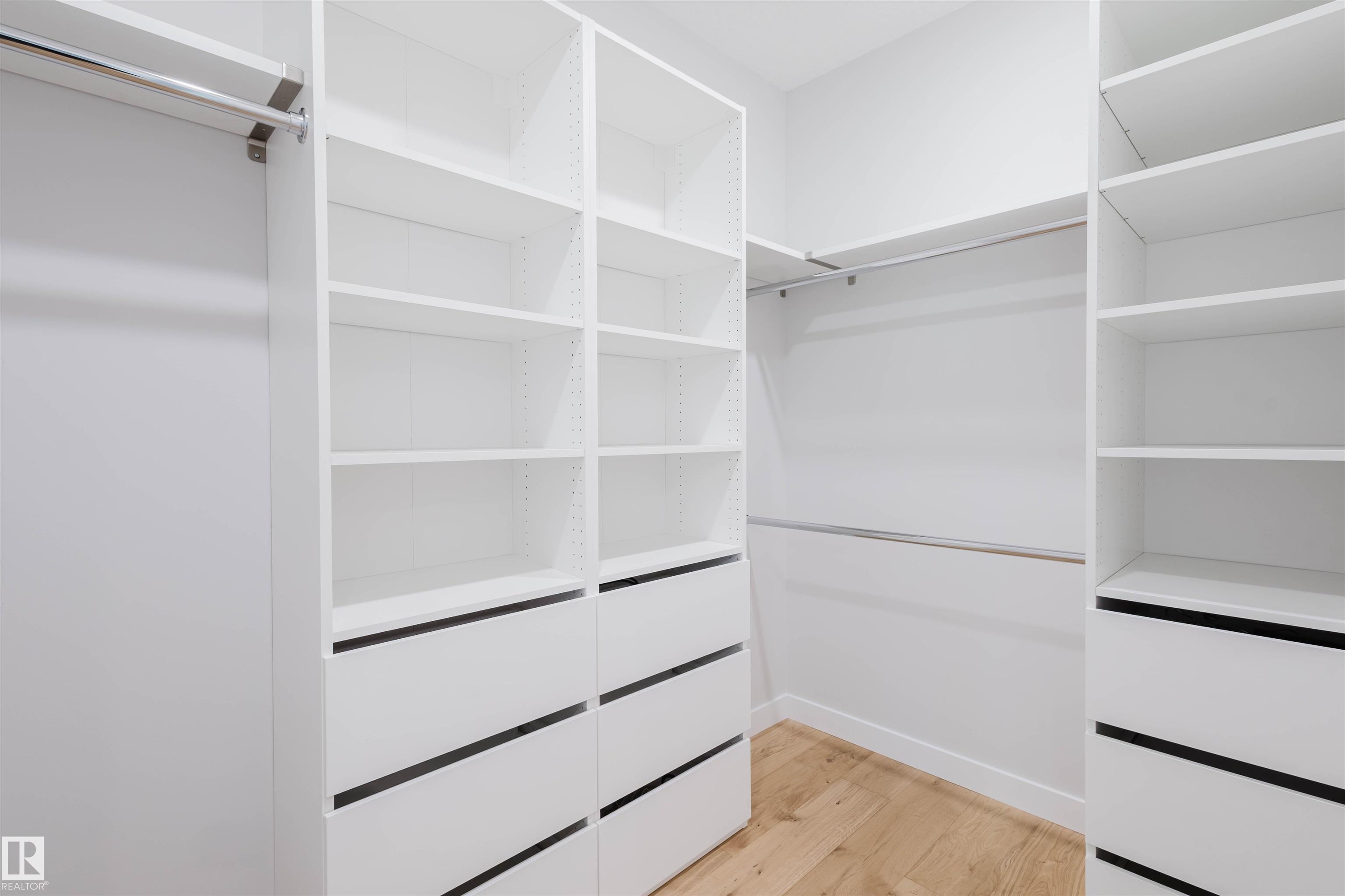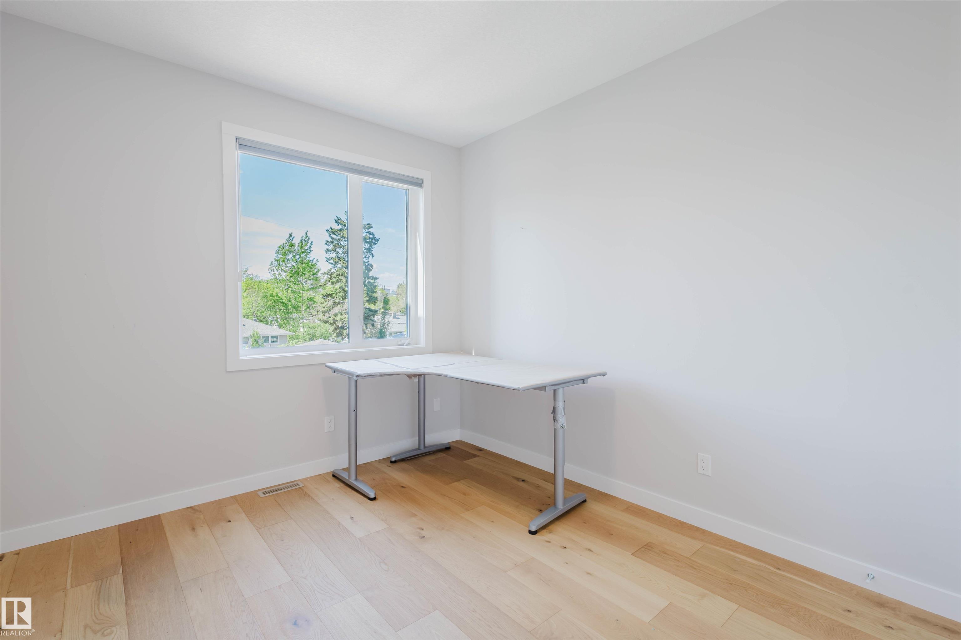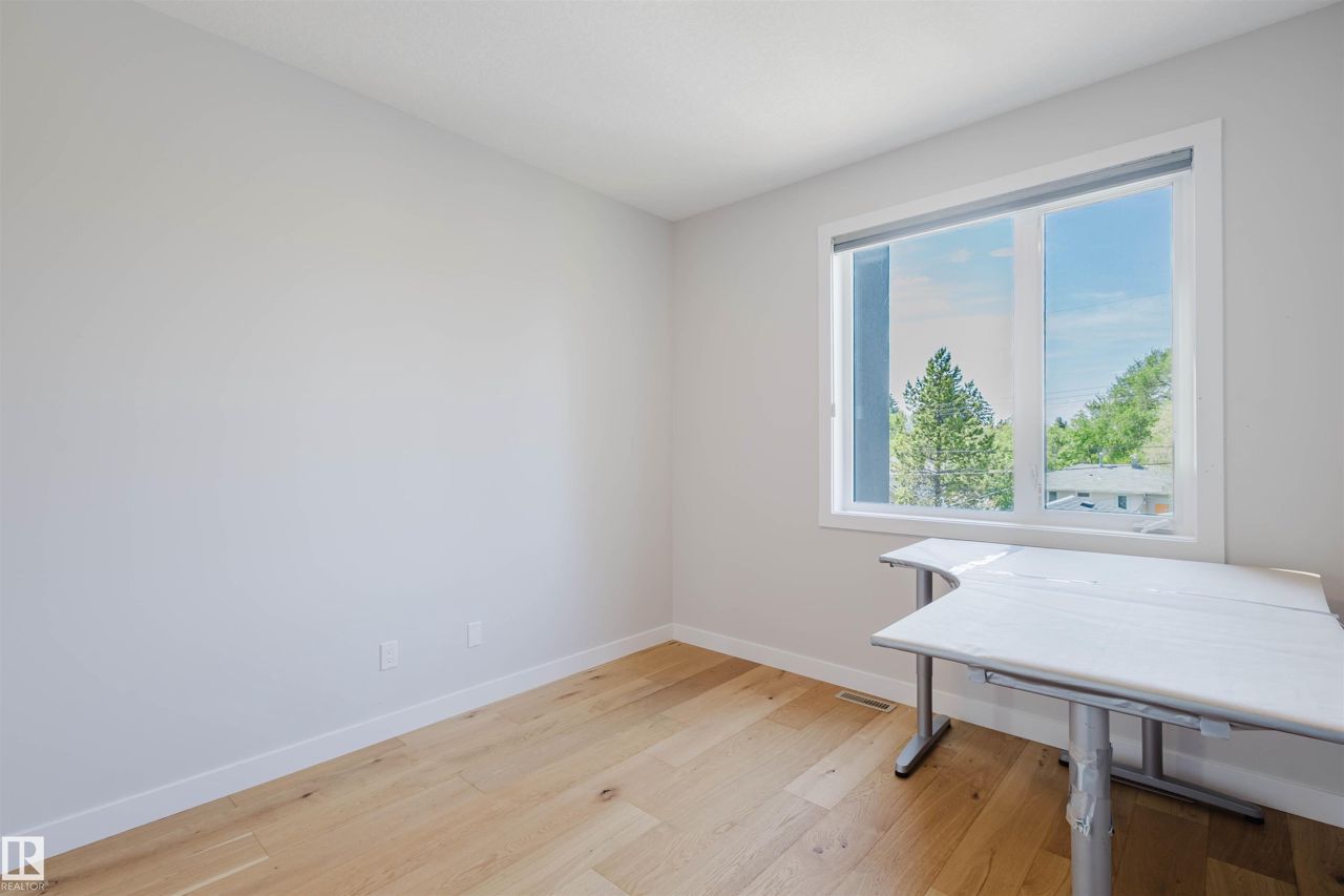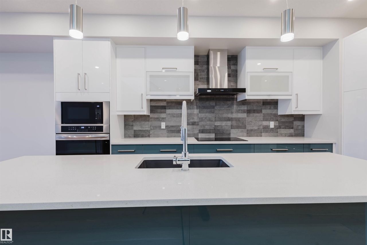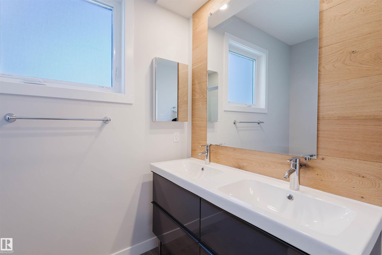 Where timeless design meets everyday ease—this stunning infill in Holyrood offers nearly 3,000 sq ft of finished living space across three stylish levels. Enjoy 9’ ceilings throughout, rough-hewn engineered oak flooring, and a chef-inspired kitchen with quartz waterfall island, induction cooktop, and built-in wall oven. The open-concept layout is anchored by sun-filled living and dining spaces, while the finished basement adds two more bedrooms, a wet bar, and family room. Thoughtful extras include motorized blinds, WiFi thermostat, tankless hot water, central air, and a 50 amp EV charger in the oversized heated garage. The fully landscaped backyard is a private escape with gas BBQ hookup, mature trees, and a remote-controlled motorized retractable awning that extends shade on demand. Just steps to the new LRT, river valley, parks, and minutes to downtown—this is upscale, walkable living in one of Edmonton’s most established and desirable neighbourhoods.