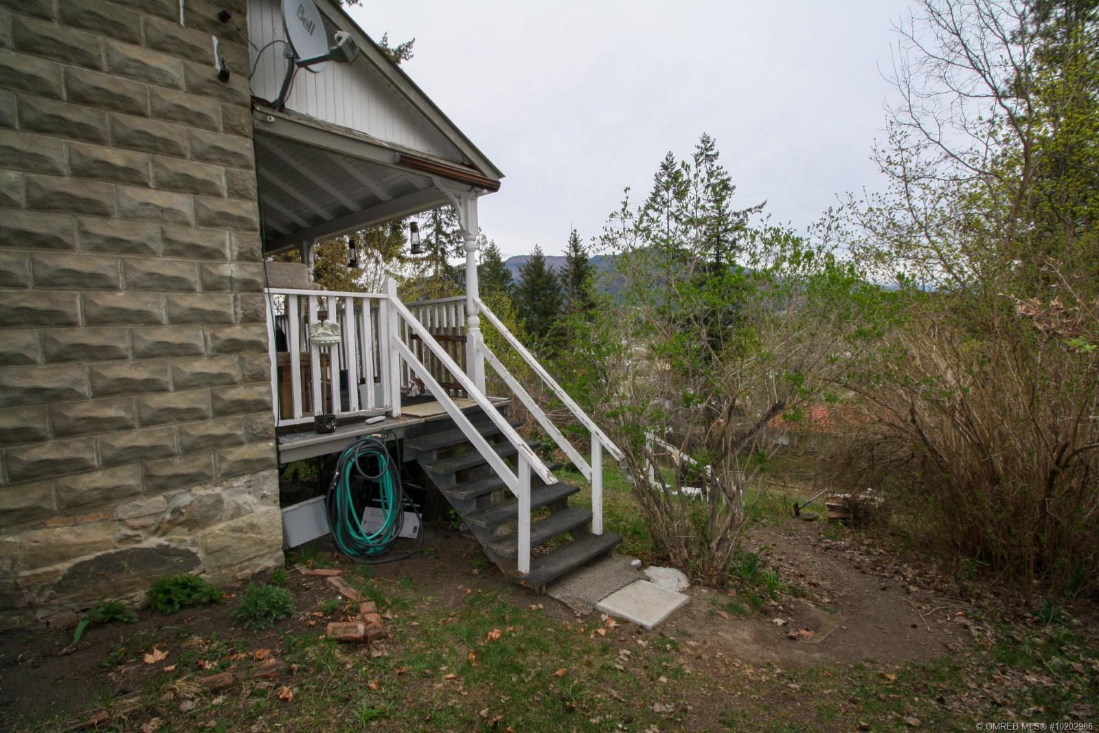 One of the well maintained and in its original charm historic homes of Enderby. The home with its 3 bed and 1 bathroom on 1332 sq/ft and 11ft high ceilings with outside dormer windows was tastefully renovated without destroying the heritage interior style. The original fireplace, wood floors, original wallpapers, some original (100-year-old) light fixtures, etc.are in good condition. The renovations including new high energy efficient gas furnace, updated kitchen appliances, new kitchen + new floor, new bathroom, new retaining wall, and much more. The listed property has 4 separate titles with the potential to subdivide. The basement has a separate entrance. The detached garage is 12'X20'. The property is landscaped and has some fruit trees. When sitting on the covered verandah one can relax and enjoy the City and Mountain view. (id:22211)