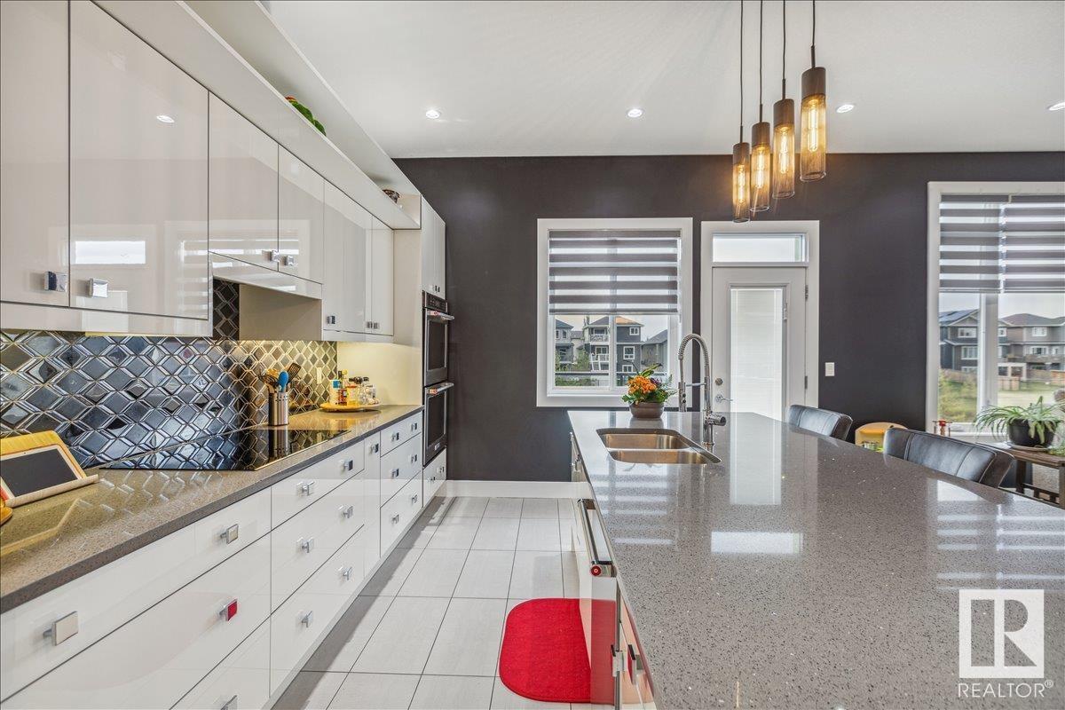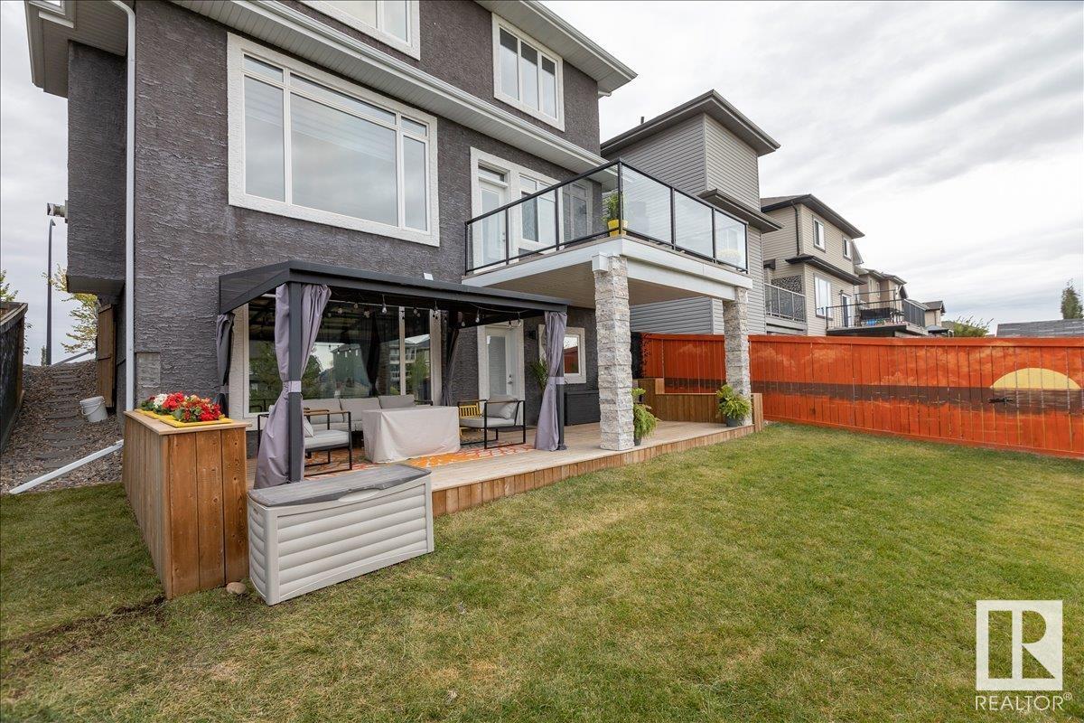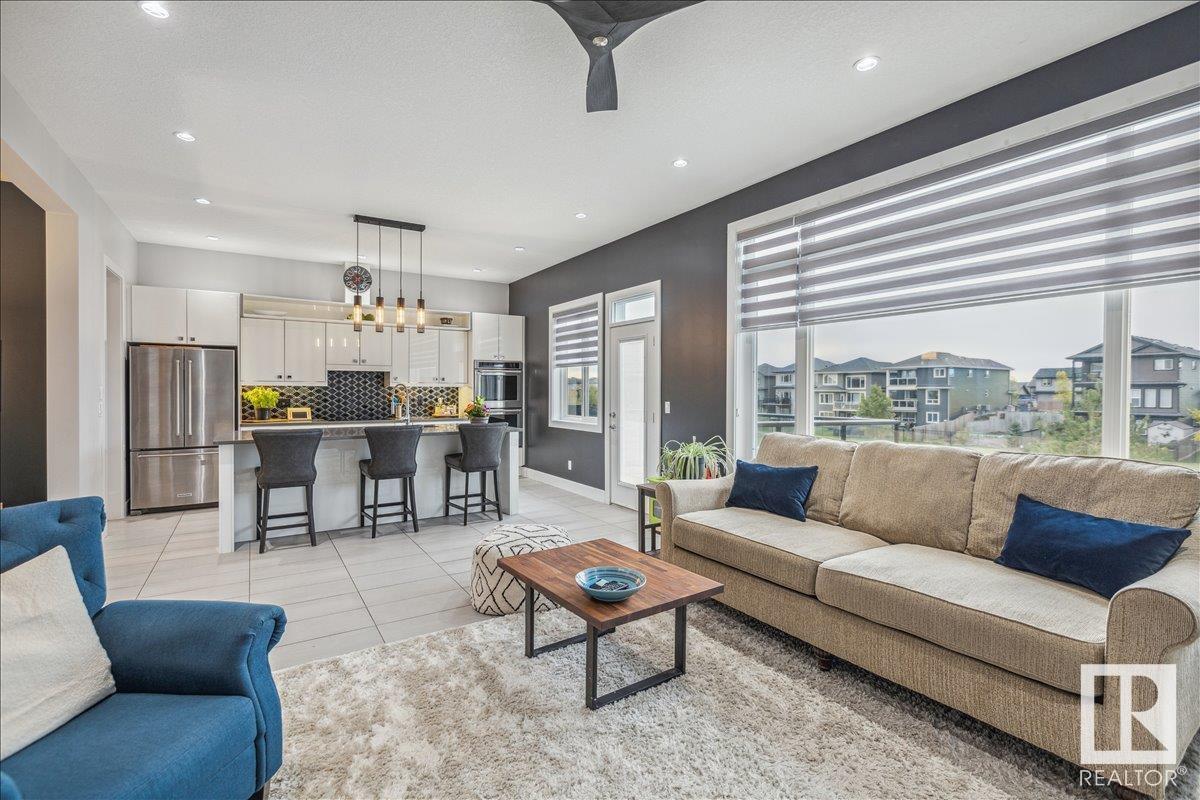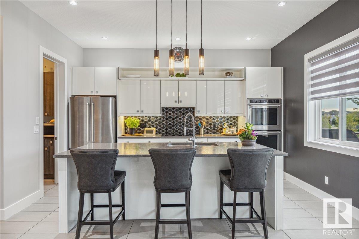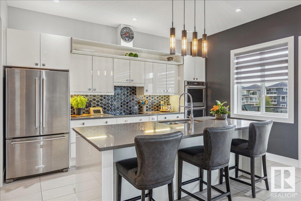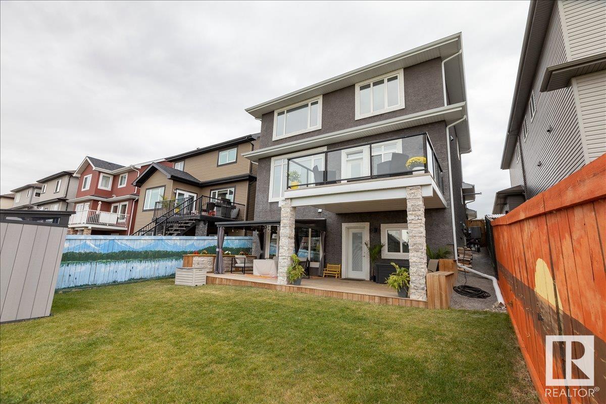 This stunning 2,399 sq.ft 2-storey home in South Fort backs onto trails and green space. With 3+1 bedrooms and 4 bathrooms, layout is ideal for family living and executive comfort. The home is bathed in natural light, seamlessly integrating living spaces for both entertaining and daily life. Walk into the 10 ft ceiling height with an exquisite kitchen with ample cupboards and counter space, a breakfast bar, and a walk-through spice kitchen/pantry. The spacious living and dining areas are perfect for gatherings. The primary suite includes a 4-piece ensuite. The upper floor has 2 more bedrooms, 3-pc bath, and a huge bonus room. Walkout bsmt features a 4th-bedroom, 3-pc with heated floors, rec room with an electric fireplace, wet bar, and additional cabinets. Bonus 2nd stacker washer/dryer. Updates include home finishing details (2019), garage heater & AC (2020), compliant building permits bsmt dev(2022), fresh paint (2023), electric zebra blackout blinds (2023). The fully fenced, landscaped serene backyard. (id:22211)