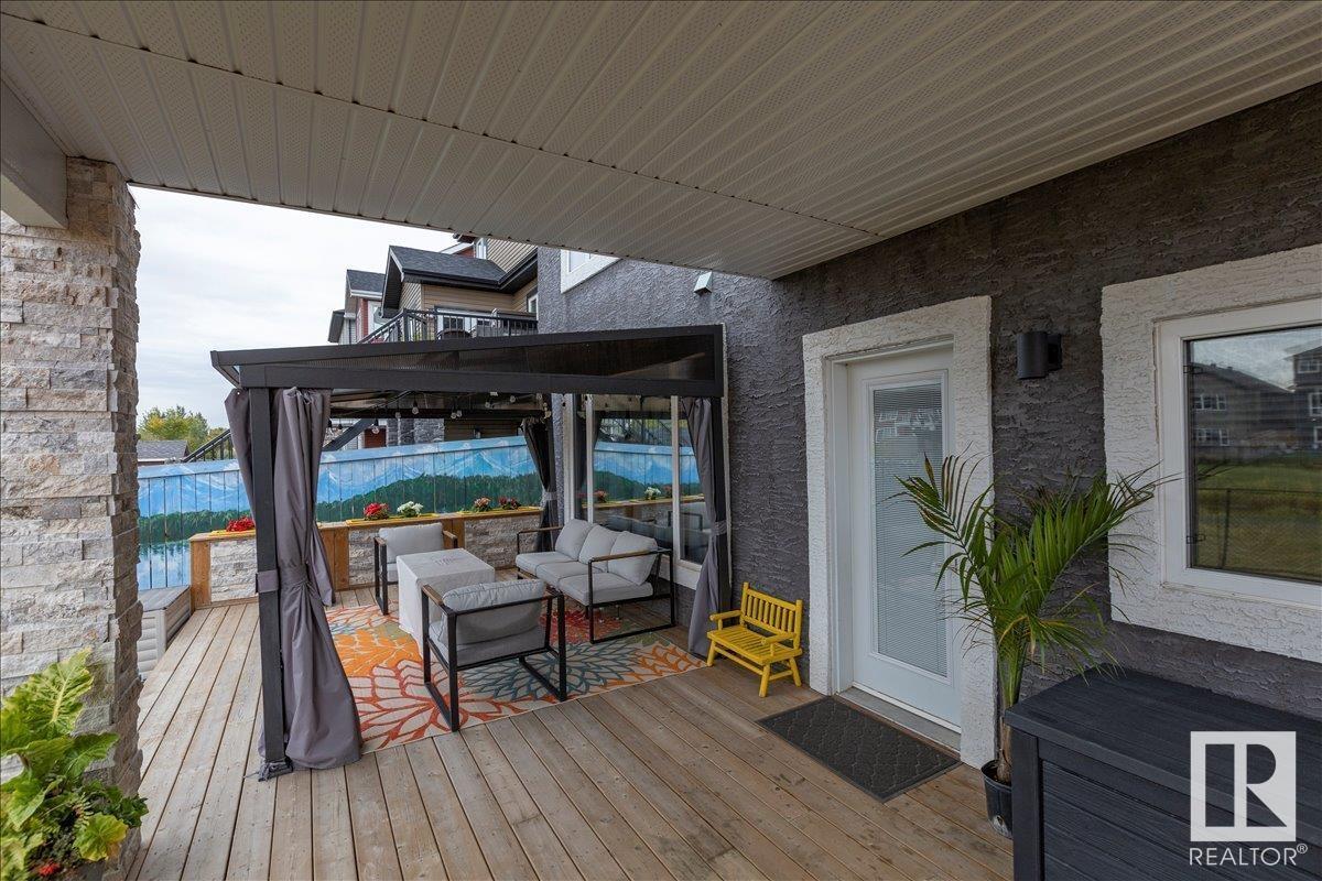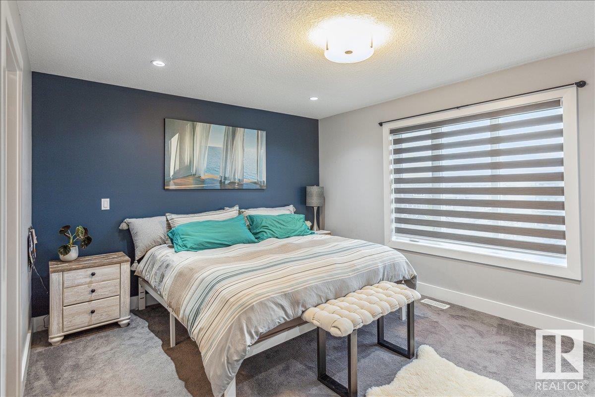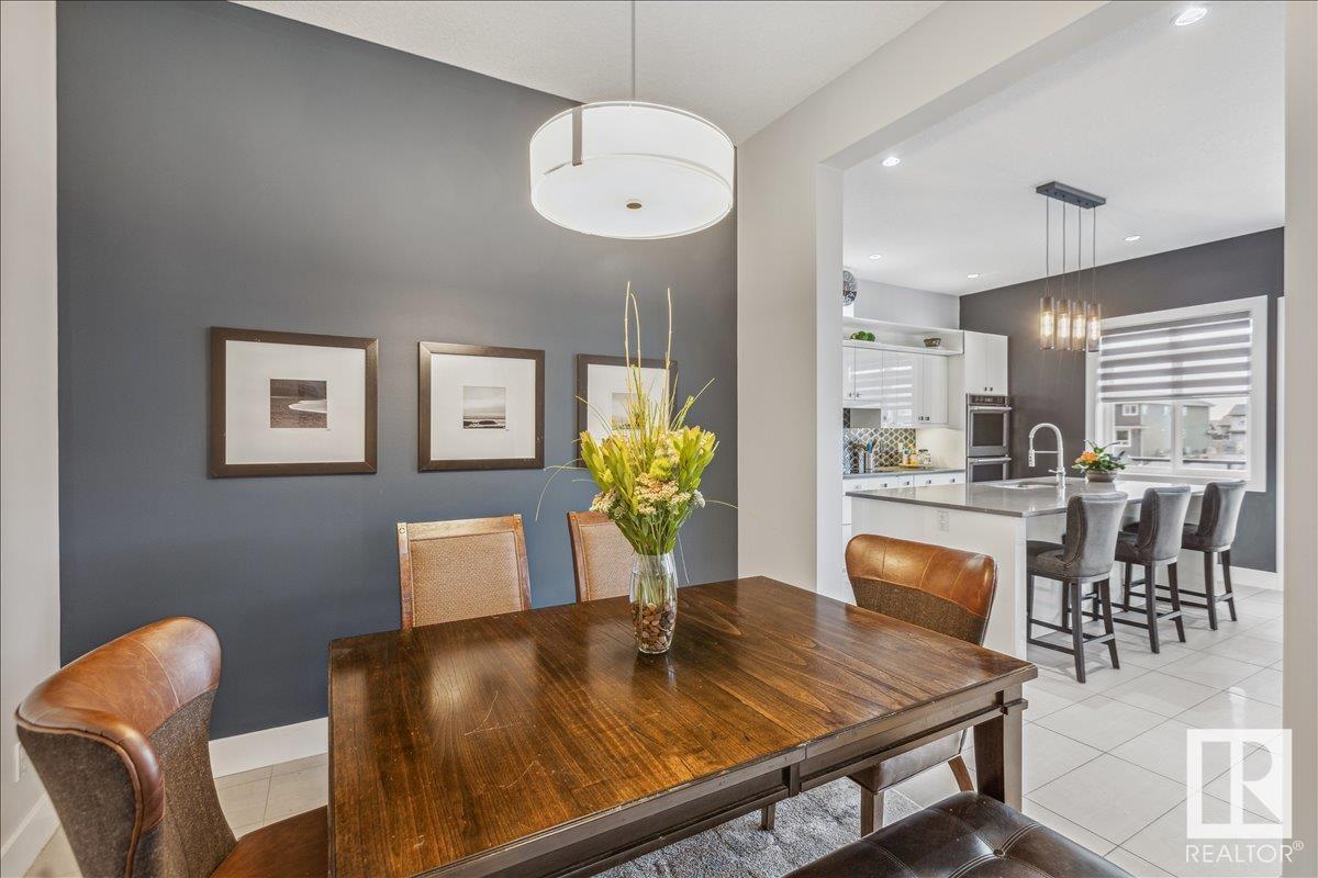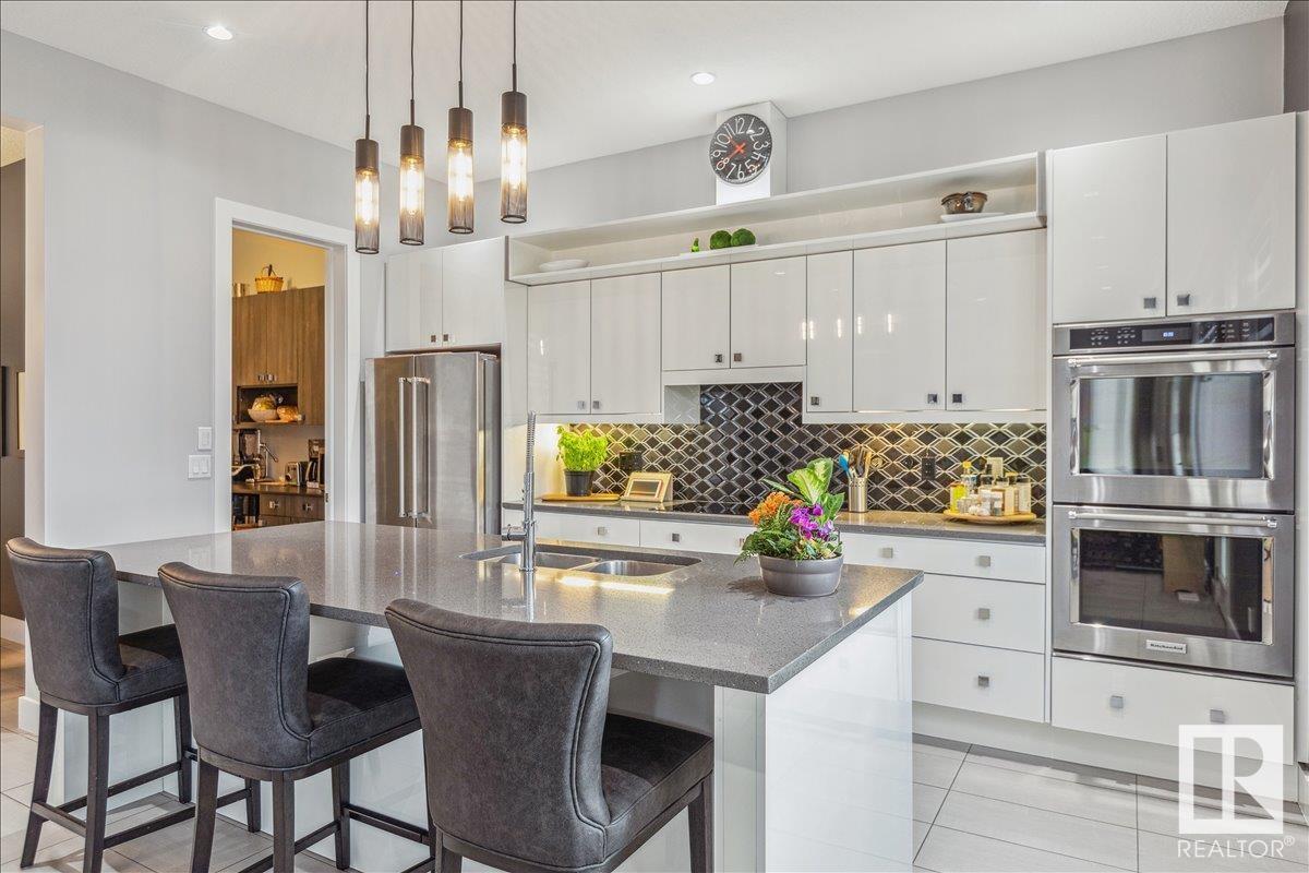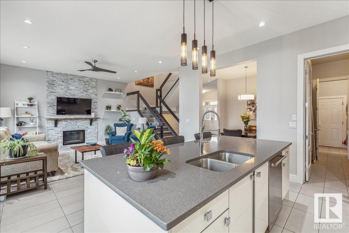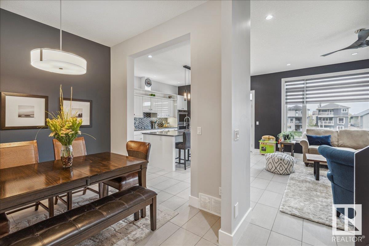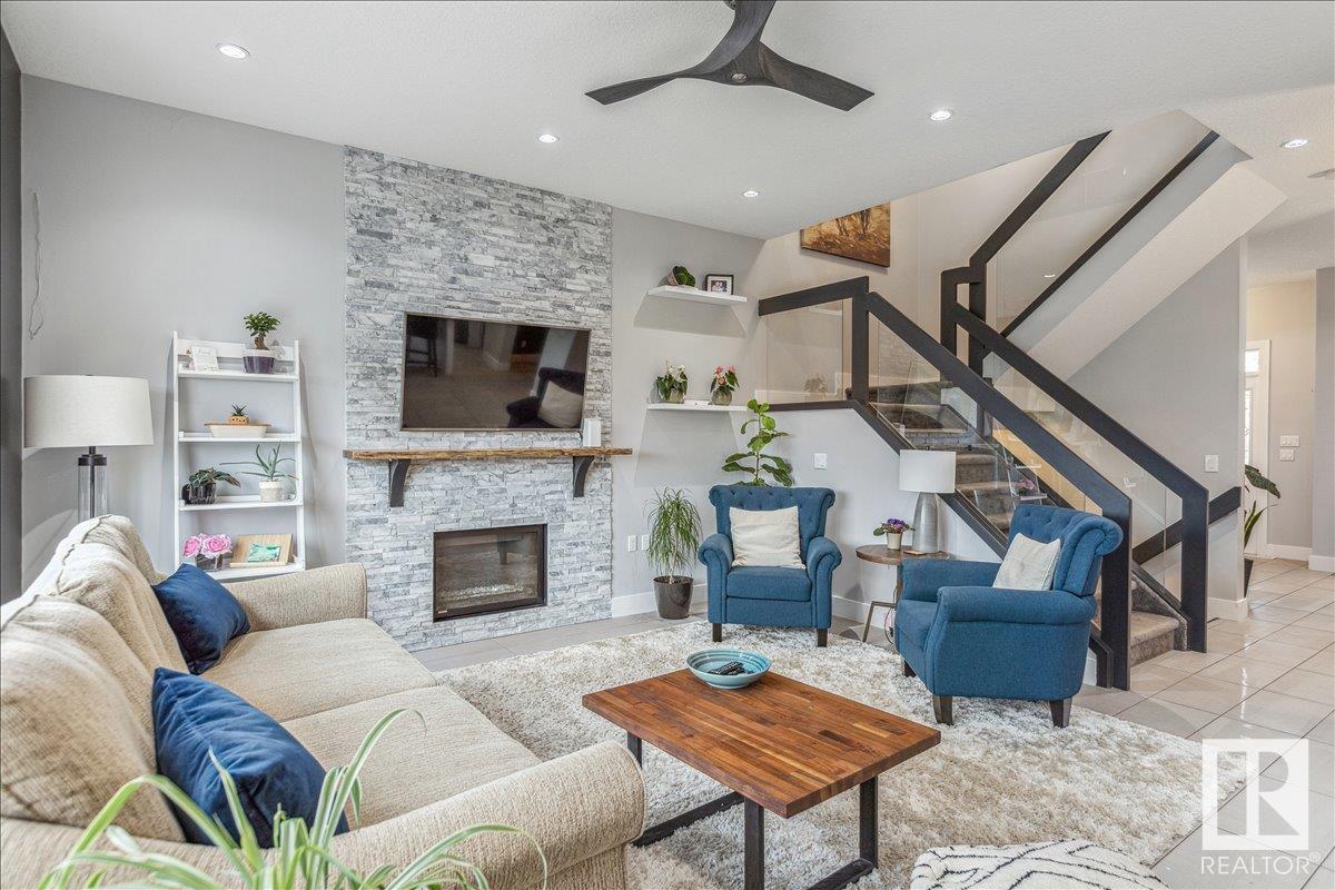 This stunning 2,399 sq.ft 2-storey home in South Fort backs onto trails and green space. With 3+1 bedrooms and 4 bathrooms, layout is ideal for family living and executive comfort. The home is bathed in natural light, seamlessly integrating living spaces for both entertaining and daily life. Walk into the 10 ft ceiling height with an exquisite kitchen with ample cupboards and counter space, a breakfast bar, and a walk-through spice kitchen/pantry. The spacious living and dining areas are perfect for gatherings. The primary suite includes a 4-piece ensuite. The upper floor has 2 more bedrooms, 3-pc bath, and a huge bonus room. Walkout bsmt features a 4th-bedroom, 3-pc with heated floors, rec room with an electric fireplace, wet bar, and additional cabinets. Bonus 2nd stacker washer/dryer. Updates include home finishing details (2019), garage heater & AC (2020), compliant building permits bsmt dev(2022), fresh paint (2023), electric zebra blackout blinds (2023). The fully fenced, landscaped serene backyard. (id:22211)
