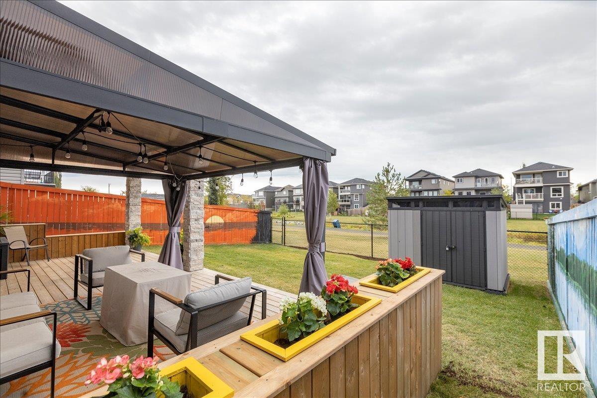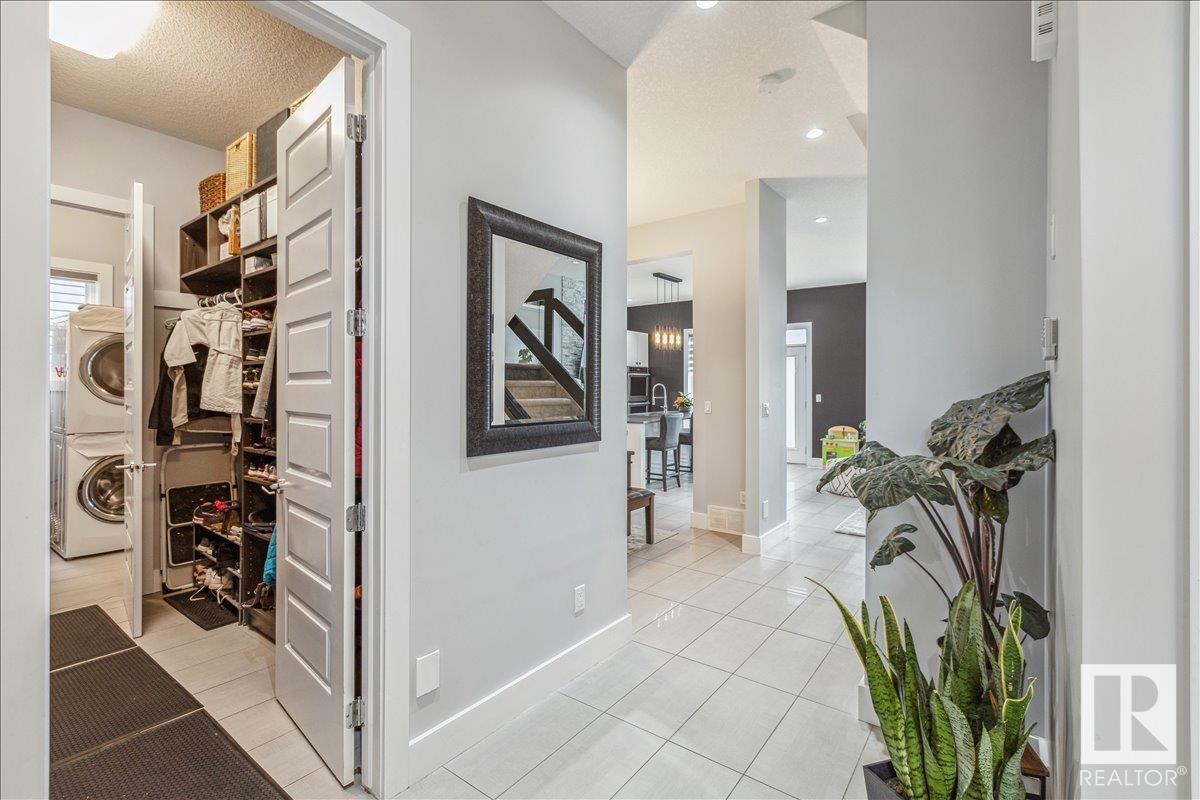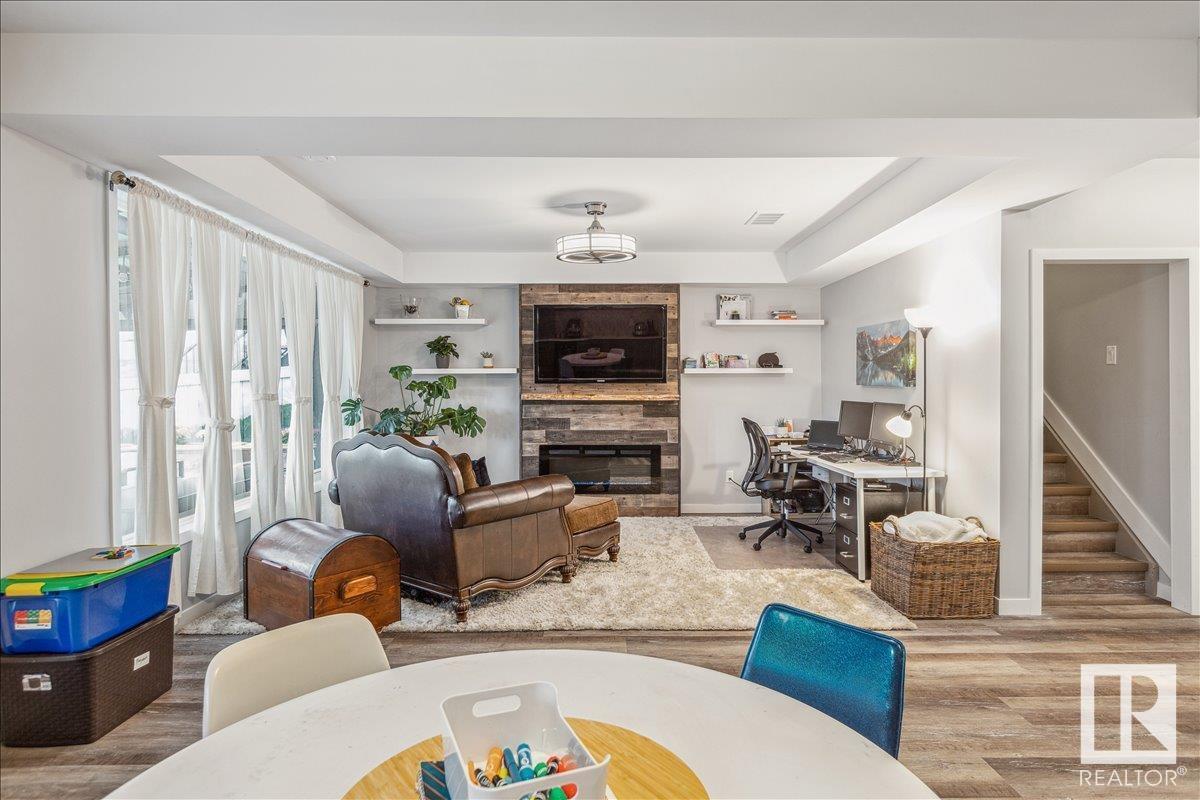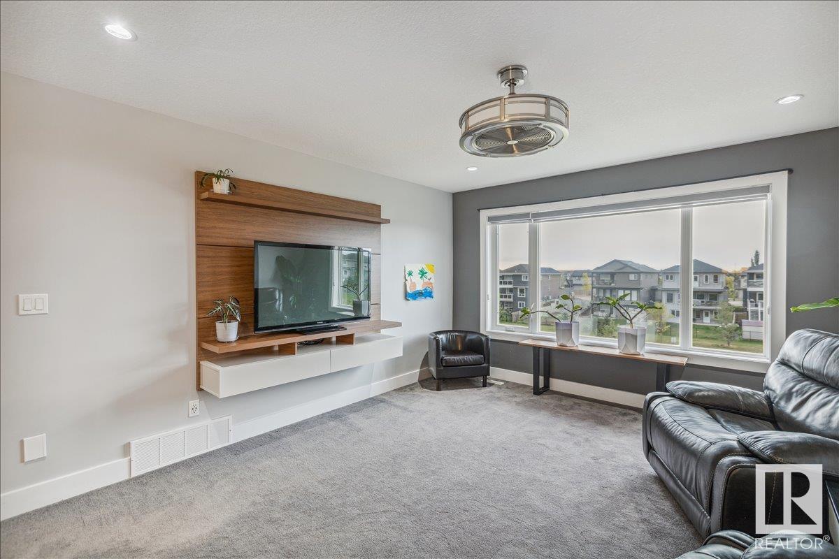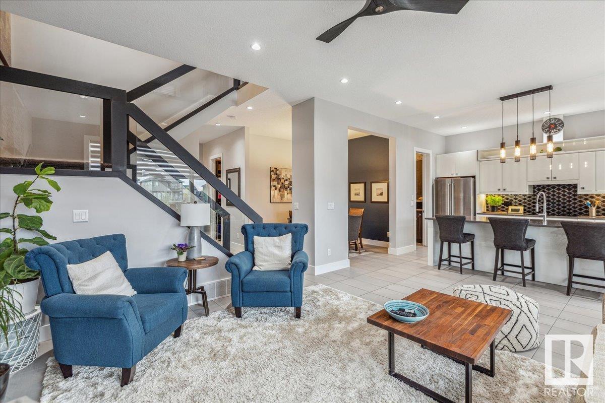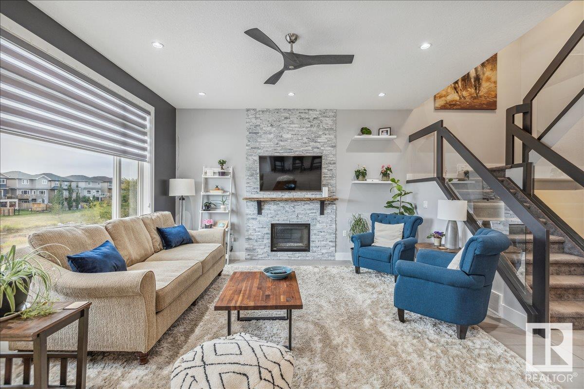 This stunning 2,399 sq.ft 2-storey home in South Fort backs onto trails and green space. With 3+1 bedrooms and 4 bathrooms, layout is ideal for family living and executive comfort. The home is bathed in natural light, seamlessly integrating living spaces for both entertaining and daily life. Walk into the 10 ft ceiling height with an exquisite kitchen with ample cupboards and counter space, a breakfast bar, and a walk-through spice kitchen/pantry. The spacious living and dining areas are perfect for gatherings. The primary suite includes a 4-piece ensuite. The upper floor has 2 more bedrooms, 3-pc bath, and a huge bonus room. Walkout bsmt features a 4th-bedroom, 3-pc with heated floors, rec room with an electric fireplace, wet bar, and additional cabinets. Bonus 2nd stacker washer/dryer. Updates include home finishing details (2019), garage heater & AC (2020), compliant building permits bsmt dev(2022), fresh paint (2023), electric zebra blackout blinds (2023). The fully fenced, landscaped serene backyard. (id:22211)