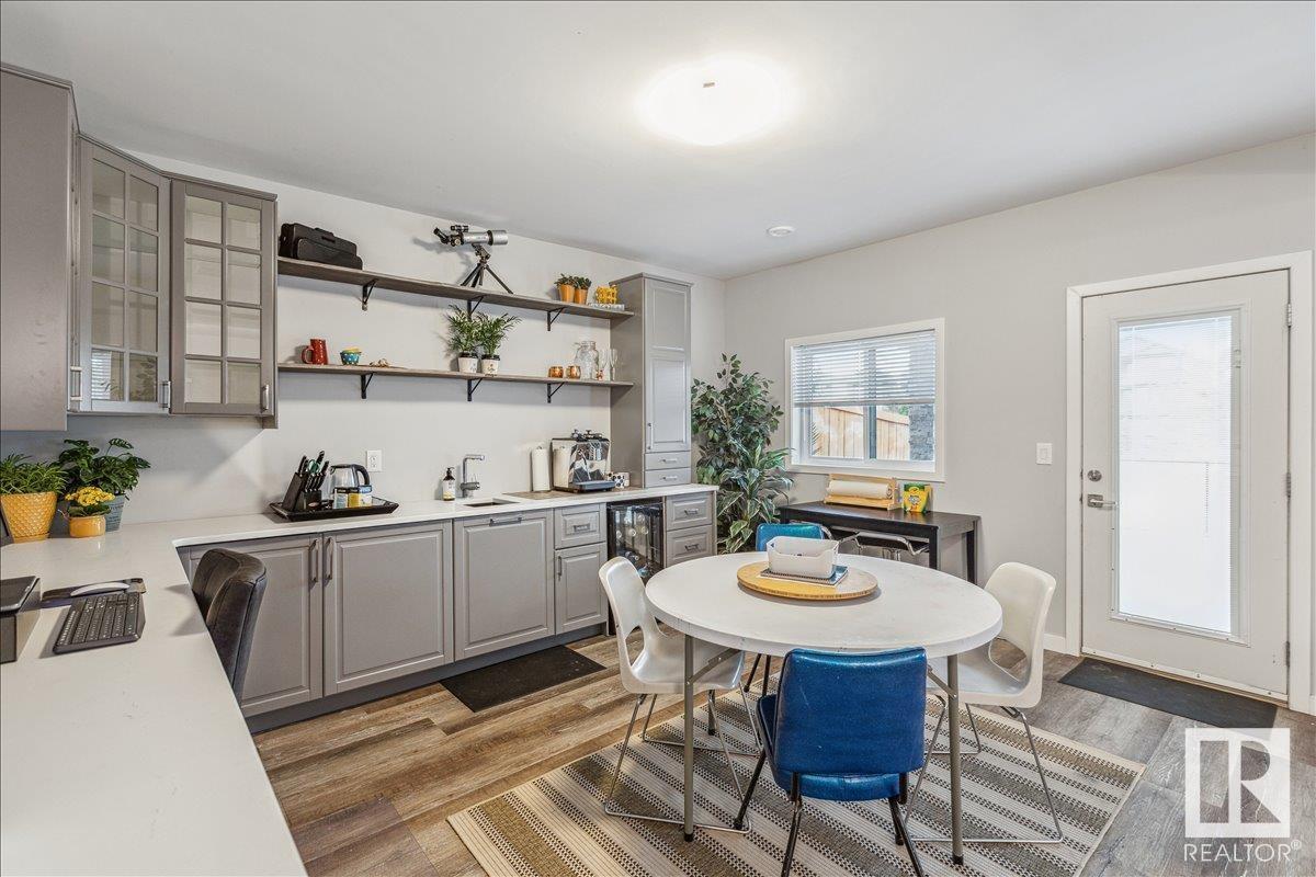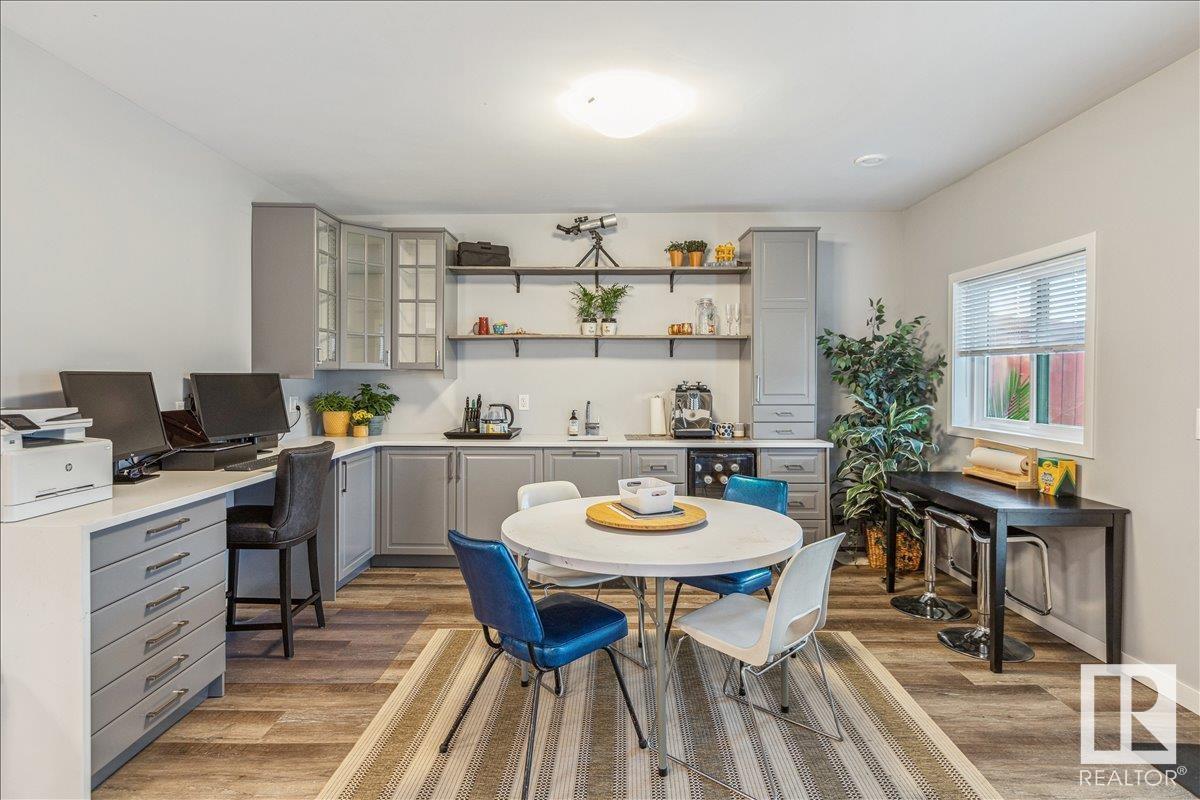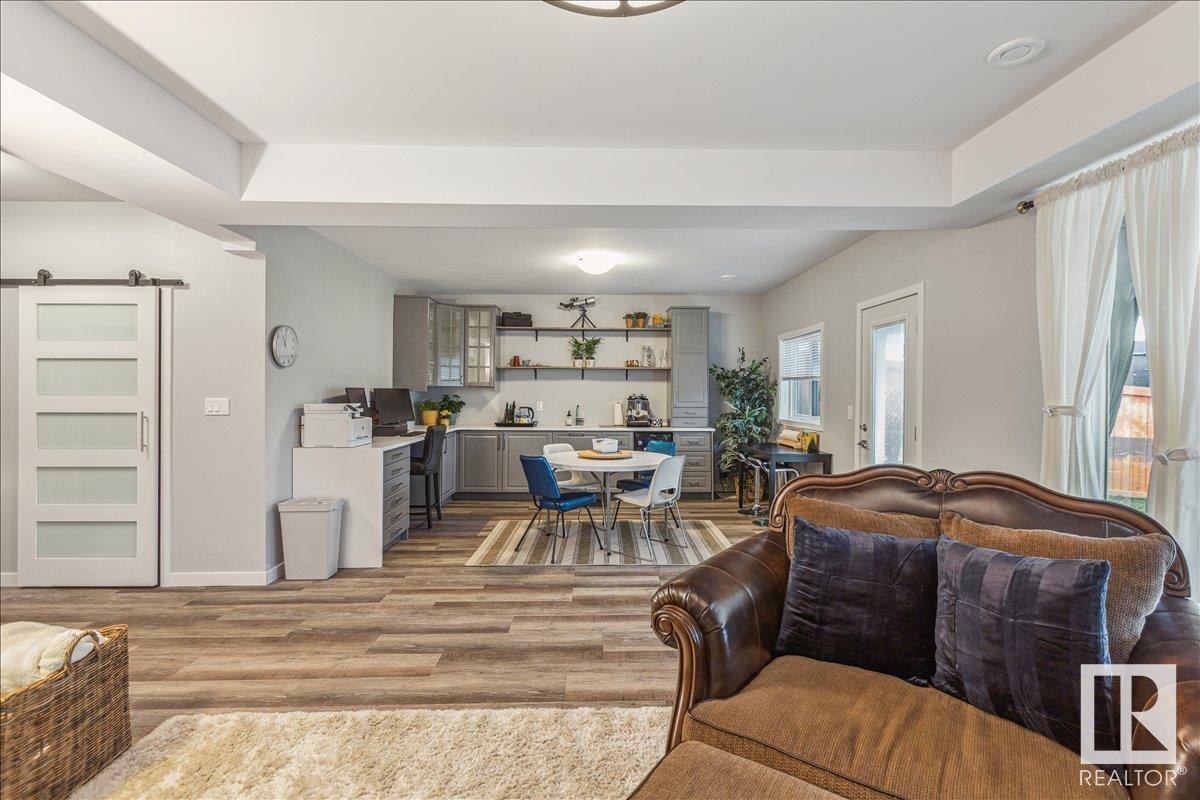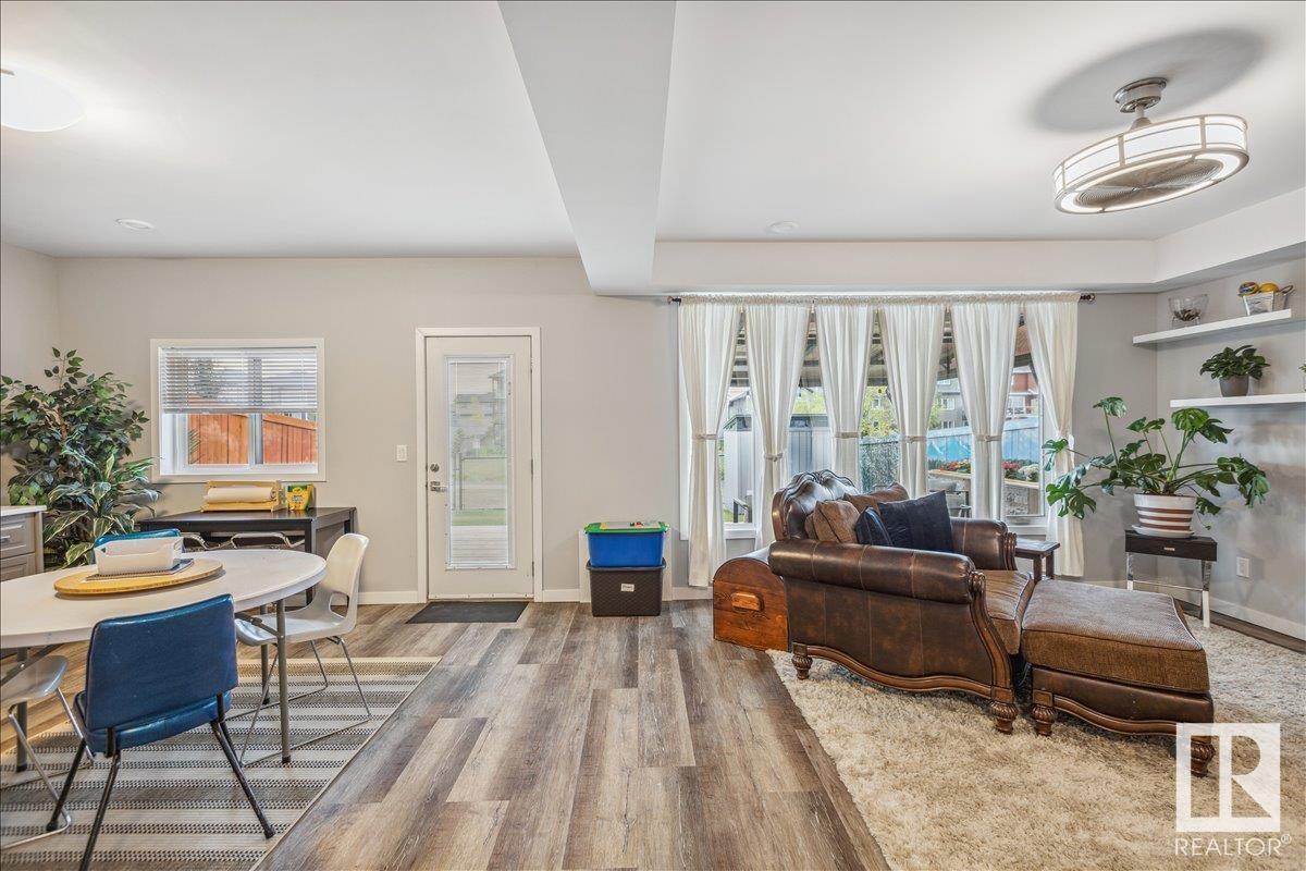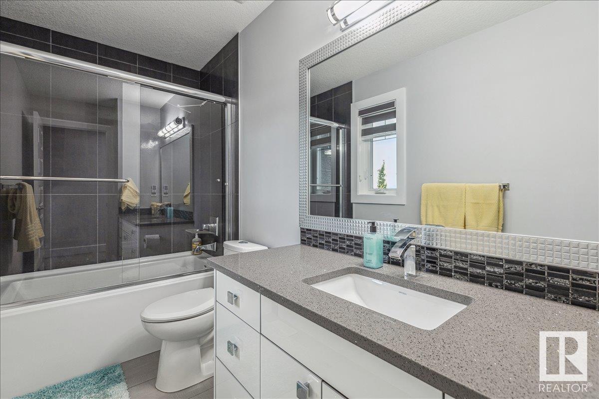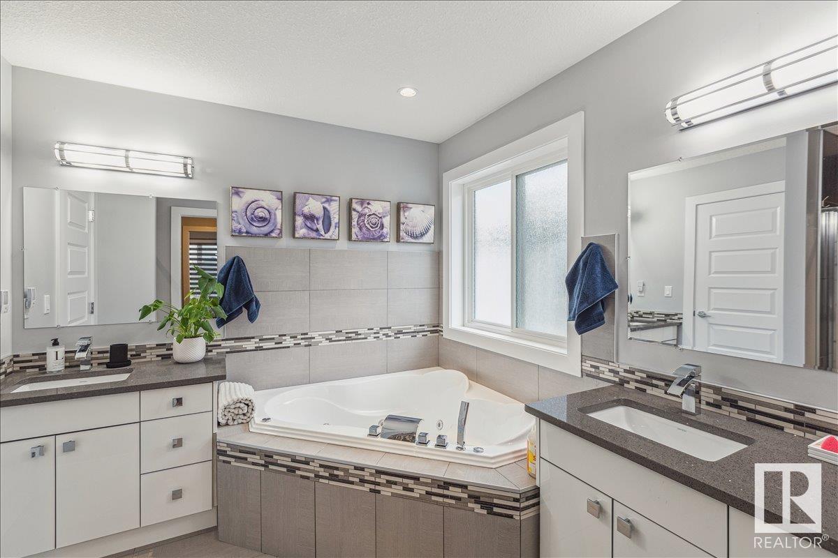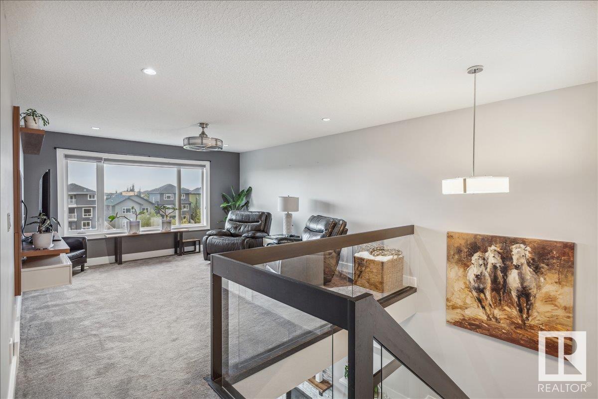 This stunning 2,399 sq.ft 2-storey home in South Fort backs onto trails and green space. With 3+1 bedrooms and 4 bathrooms, layout is ideal for family living and executive comfort. The home is bathed in natural light, seamlessly integrating living spaces for both entertaining and daily life. Walk into the 10 ft ceiling height with an exquisite kitchen with ample cupboards and counter space, a breakfast bar, and a walk-through spice kitchen/pantry. The spacious living and dining areas are perfect for gatherings. The primary suite includes a 4-piece ensuite. The upper floor has 2 more bedrooms, 3-pc bath, and a huge bonus room. Walkout bsmt features a 4th-bedroom, 3-pc with heated floors, rec room with an electric fireplace, wet bar, and additional cabinets. Bonus 2nd stacker washer/dryer. Updates include home finishing details (2019), garage heater & AC (2020), compliant building permits bsmt dev(2022), fresh paint (2023), electric zebra blackout blinds (2023). The fully fenced, landscaped serene backyard. (id:22211)