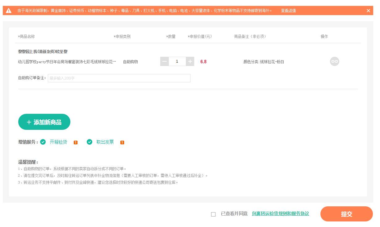 提交後會審核,然後係統通知你結果,在這個網站上付款,無需再去淘寶付款。商品會寄到他們庫房,然後核算重量價格,再付款運費,就可以發貨了。