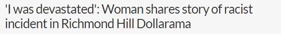 據約克區新聞網報道,近日,一名華人女子在加拿大安省列治文山的一家一元店內,遭到了種族歧視的語言侮辱。