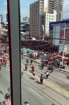 全城轟動,人潮洶湧,兩百萬人齊聚歡慶,各大媒體競相報道。所有人都在記錄這“史詩性的一刻”,所有人都說這是“一代人的青春”。這座城市從來沒有讓人如此激動、狂喜、驕傲...槍案發生時,加拿大總理特魯多,安省省長福特,多倫多市長John Tory等政界官員,都正坐在慶典舞台上。幾聲槍響,千萬人瘋狂逃離,場面一片混亂,有人慘遭踩踏。美夢幾乎變成一場噩夢。