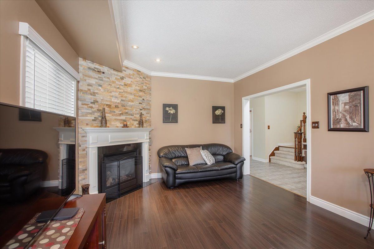 This beautiful 3 bedroom home sits in a sought after family friendly subdivision steps from parks, transit & many amenities. Features spacious entry with closet, access to double garage, and main floor powder room. Open concept living/dining room with laminate flooring, crown moulding and beautiful gas fireplace. Eat in kitchen with breakfast bar walks out to large deck. The finished basement offers family room, games area, laundry and office. This home is the perfect next step!Roof approximately 3 years old.