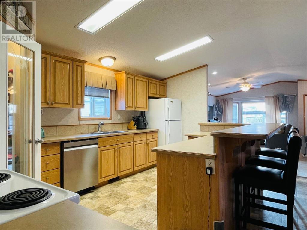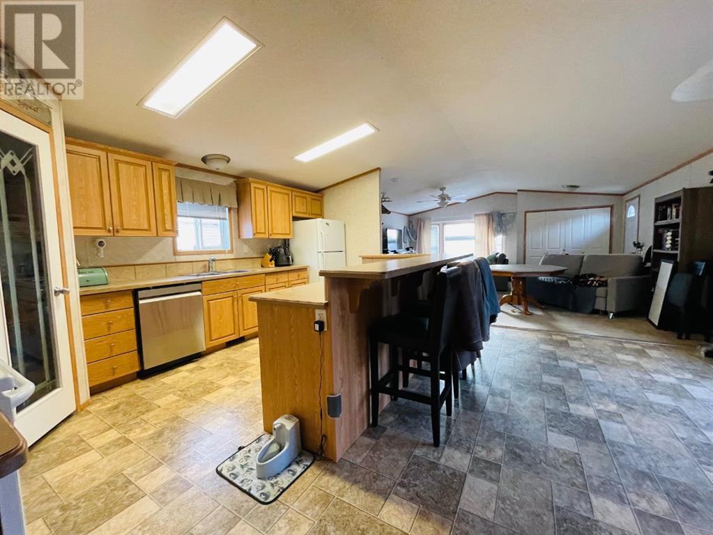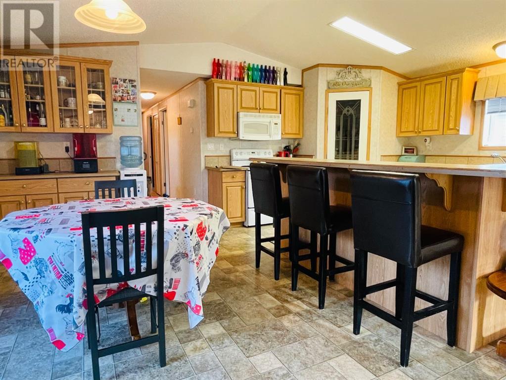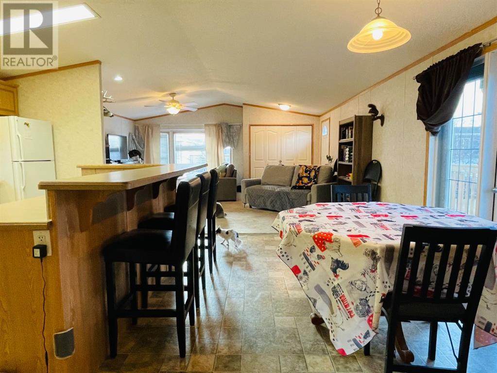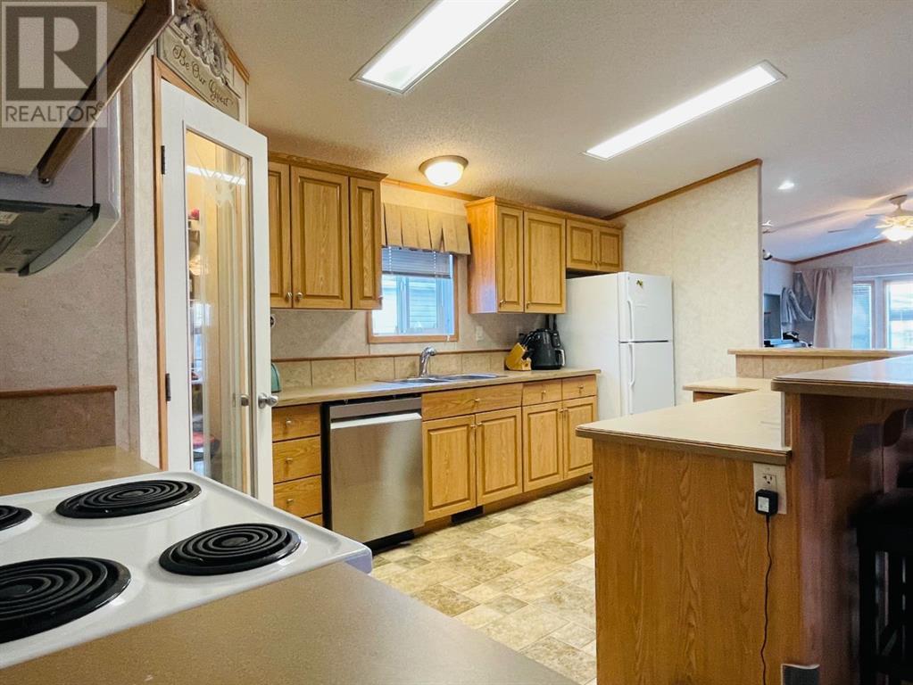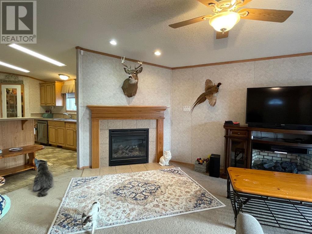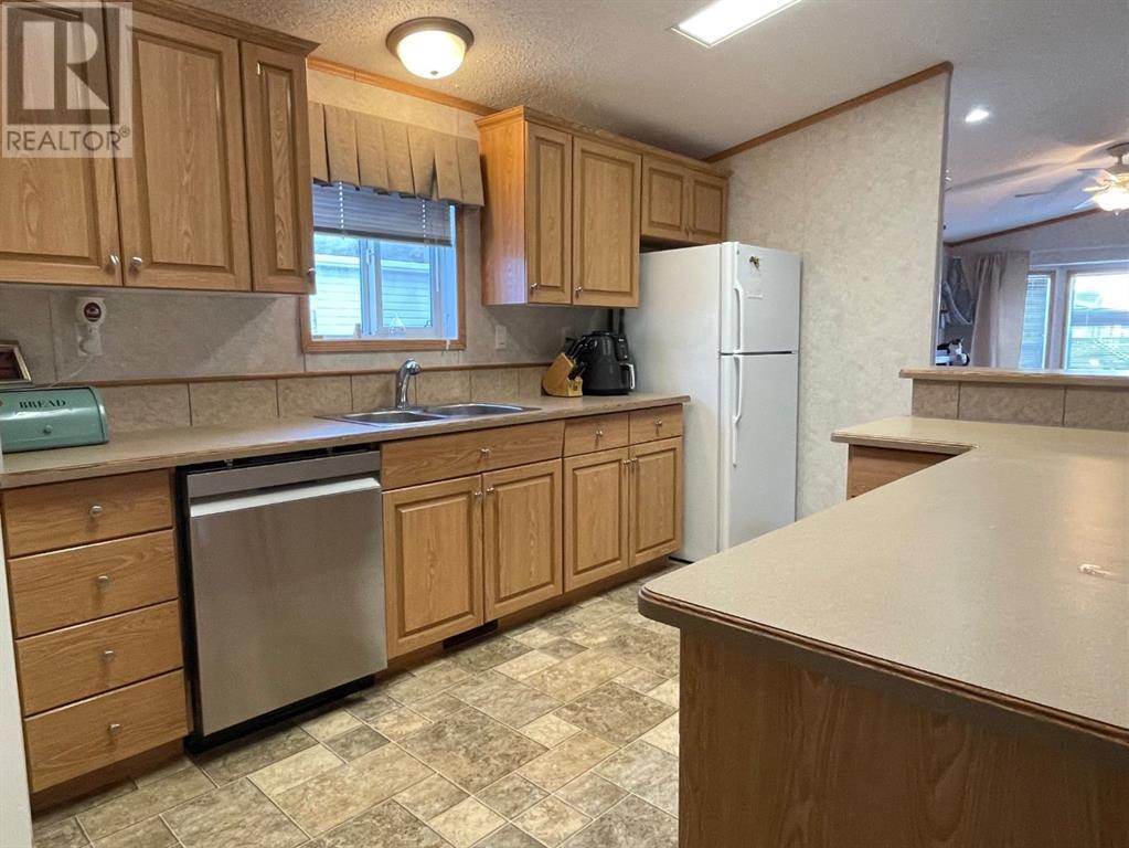 Here is your opportunity to own #241 mobile in the well maintained Mobile Home park of Trumpeter village! #241 is a newer model built in 2007 and has been well maintained. It is a whopping 20ft wide, 3 bedrooms and 2 bathrooms. When you enter you will notice the spacious open concept layout, large living room with a cozy fire place and a generous kitchen and dining room. Patio doors on the dining room usher you to the deck and large back yard that has a shed and no rear neighbours. Down the hall from the kitchen you'll find 2 good sized bedrooms the laundry room and a full bathroom. The pride and joy lies within the extremely spacious master suite measuring at an impressive 220 sqft, this bedroom will allow you to accommodate any master furniture very comfortably. To add to that, you will also find a master ensuite that is catered to relaxation and function, with a jacuzzi, walk in shower and sink. This impressive suite ends with a comfortably sized walk in closet. This home is great for an investment or family. Items of note: Hot water tank is 2021/Extra heat trace tape added to pipes/2021 chimney extended/New dishwasher 2023. Call your trusted REALTOR to view this home today! (id:22211)