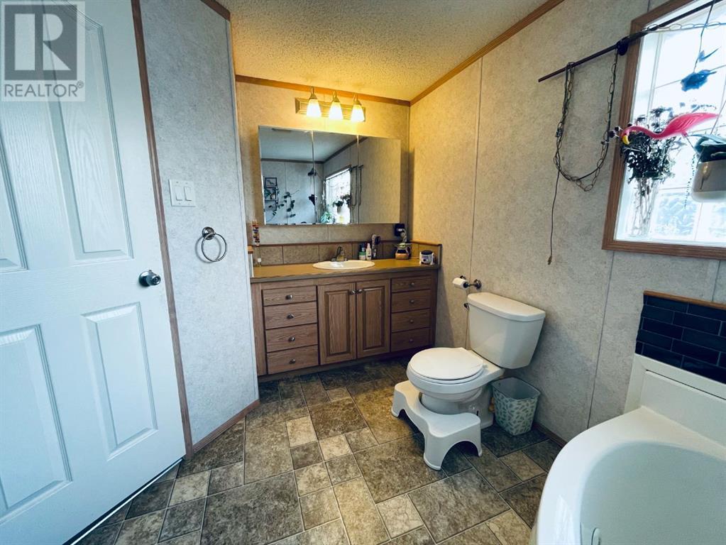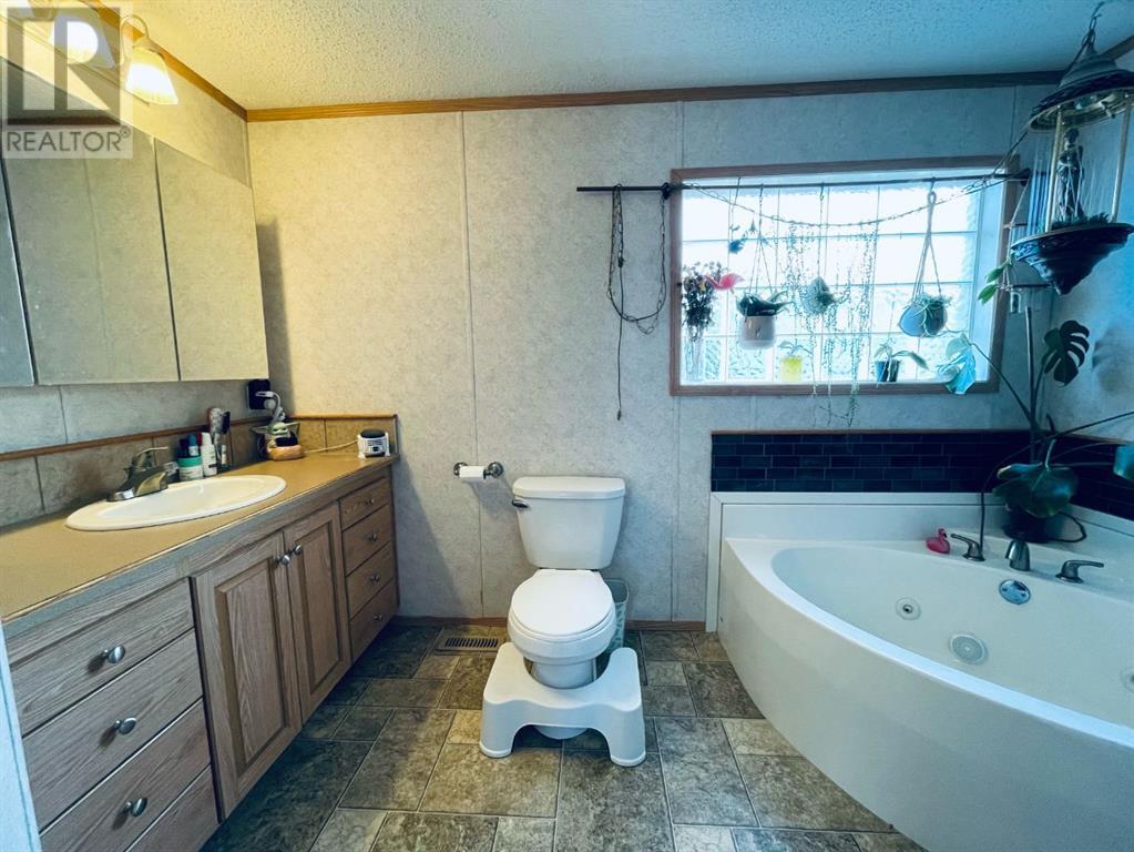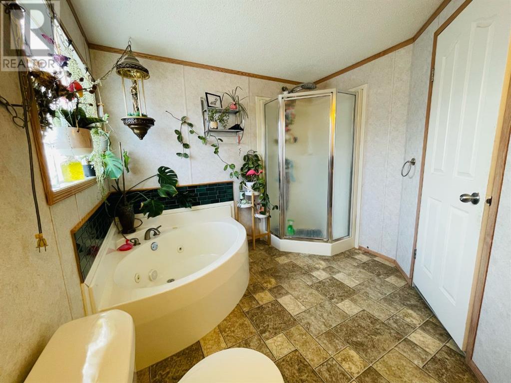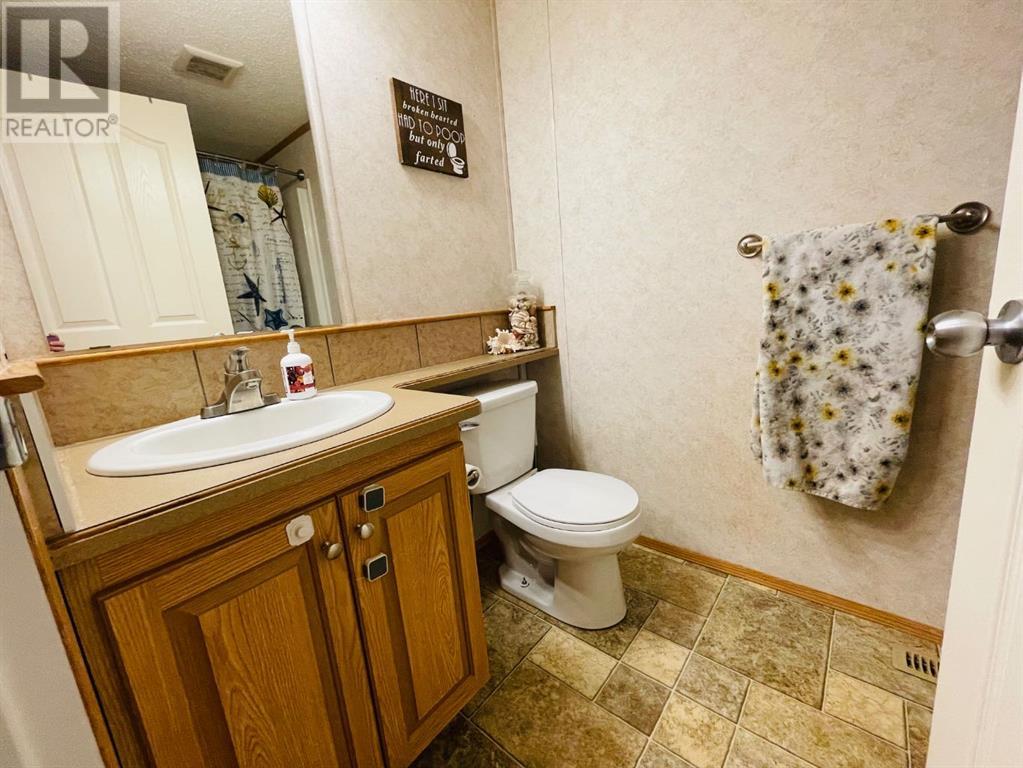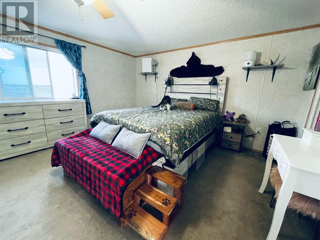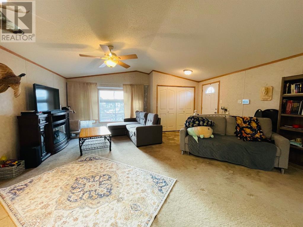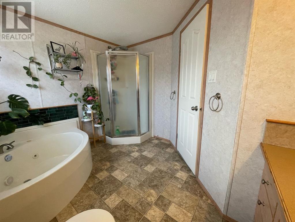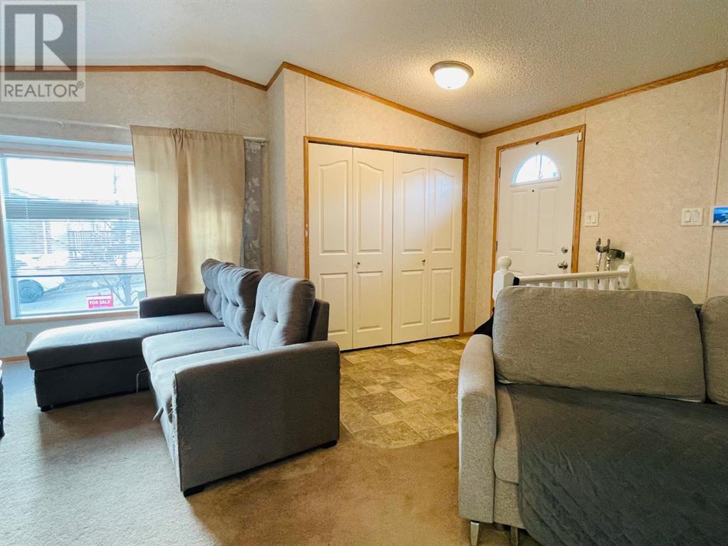 Here is your opportunity to own #241 mobile in the well maintained Mobile Home park of Trumpeter village! #241 is a newer model built in 2007 and has been well maintained. It is a whopping 20ft wide, 3 bedrooms and 2 bathrooms. When you enter you will notice the spacious open concept layout, large living room with a cozy fire place and a generous kitchen and dining room. Patio doors on the dining room usher you to the deck and large back yard that has a shed and no rear neighbours. Down the hall from the kitchen you'll find 2 good sized bedrooms the laundry room and a full bathroom. The pride and joy lies within the extremely spacious master suite measuring at an impressive 220 sqft, this bedroom will allow you to accommodate any master furniture very comfortably. To add to that, you will also find a master ensuite that is catered to relaxation and function, with a jacuzzi, walk in shower and sink. This impressive suite ends with a comfortably sized walk in closet. This home is great for an investment or family. Items of note: Hot water tank is 2021/Extra heat trace tape added to pipes/2021 chimney extended/New dishwasher 2023. Call your trusted REALTOR to view this home today! (id:22211)
