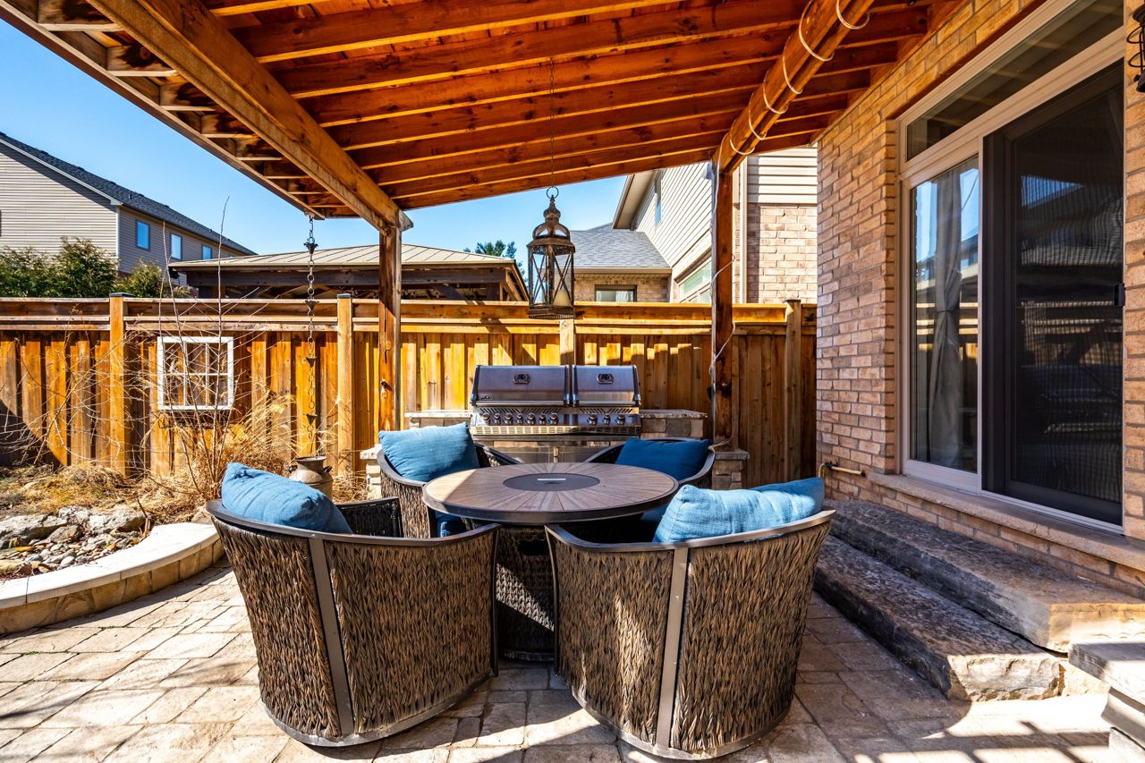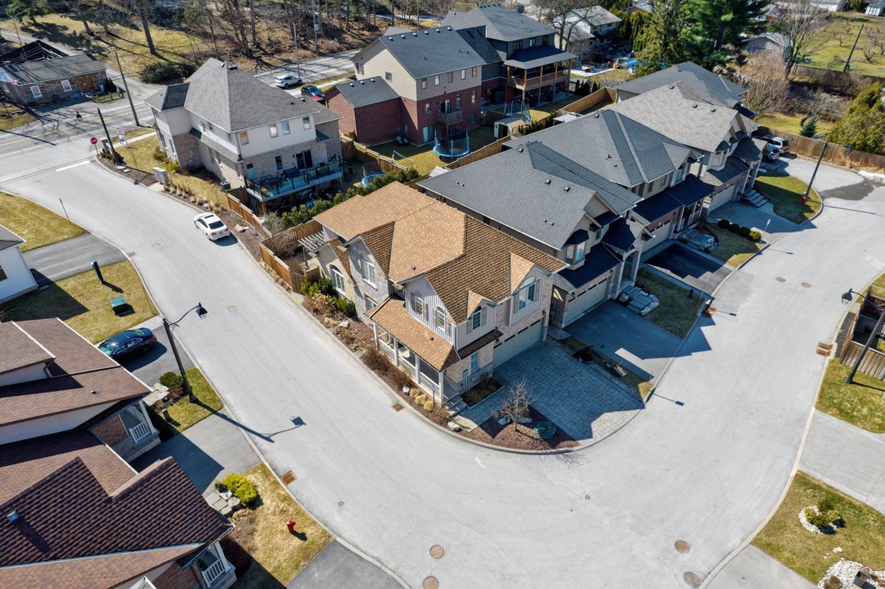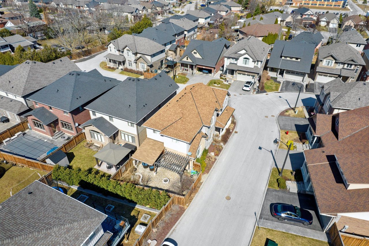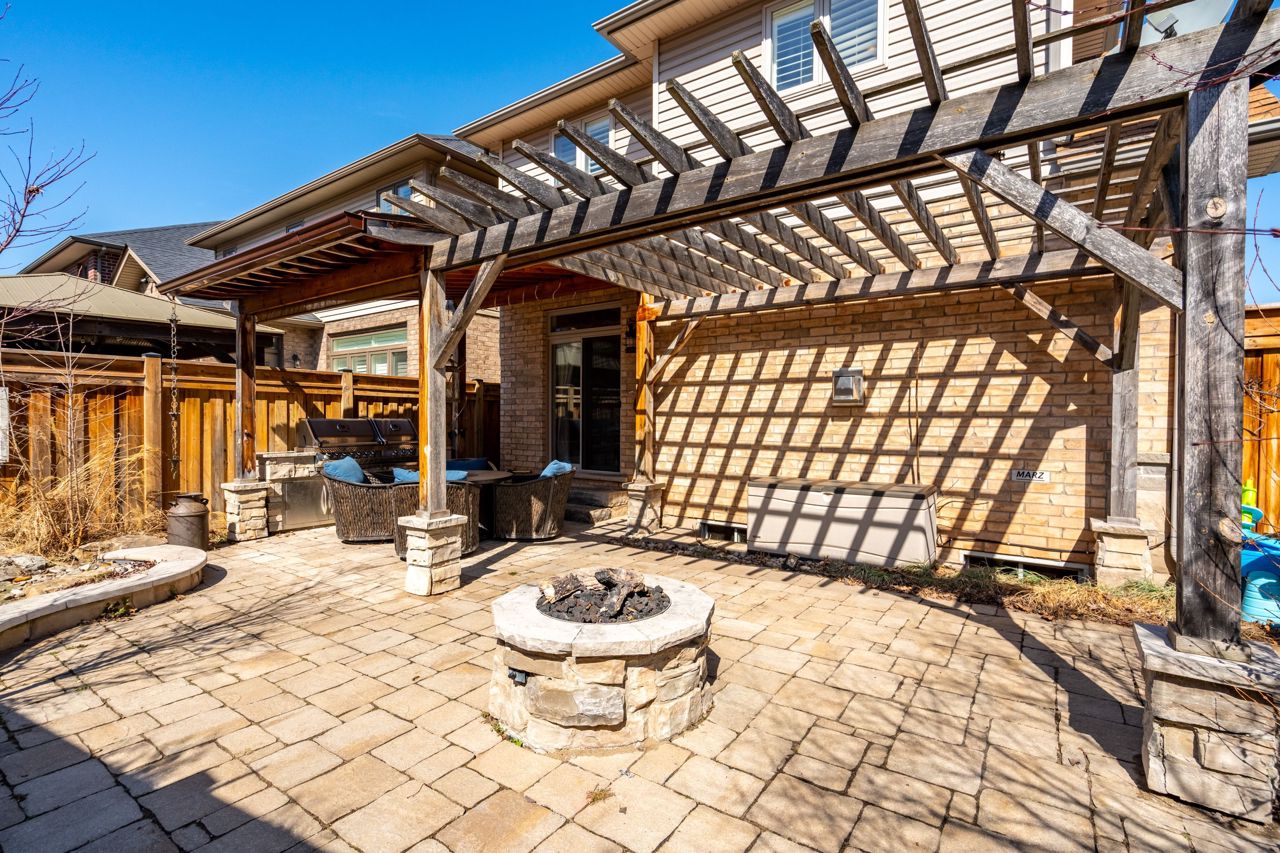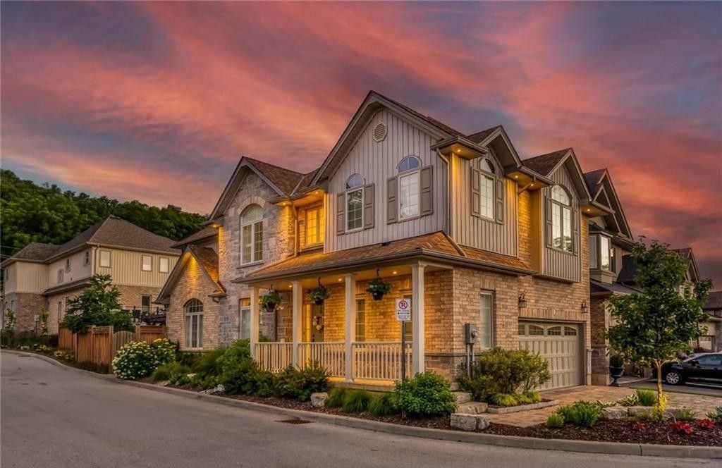 STUNNING FAMILY HOME... Built in 2017, this award-winning 2-storey home is located in the prestigious Heritage Lane enclave at 17- 270 Main Street West in Grimsby. Situated on a private road, this executive home offers a safe and family-friendly neighborhood with no through traffic- an ideal setting where kids can safely play street hockey and ride their bikes. Offering 4 spacious bedrooms, 3 bathrooms, and 2318 sq ft of high-end finishes, this home blends luxury with practicality. The OPEN-CONCEPT main level is bright and inviting, featuring pot lights, UPGRADED light fixtures, wide-plank engineered hardwood flooring, and California shutters. The formal dining room opens to a spacious living room with a Palladian window and gas fireplace with mantle. The chef-inspired, eat-in kitchen boasts GRANITE counters, abundant cabinetry, stainless steel appliances, a gas range stove, pendant lights, and a walk-out to a gorgeous yard. Step through sliding glass doors to a covered outdoor dining area, complete with a built-in Napoleon gas BBQ, granite surround, fully fenced yard, patio, pondless waterfall, and gas firepit perfect for entertaining! The main floor also includes a convenient office space equipped for laundry, plus a powder room. Upstairs, enjoy views of the Escarpment from the second level. The master bedroom features a massive walk-in closet and a luxurious 5-piece ensuite with double sinks, a soaker tub, and separate shower. Three additional bedrooms and a full bathroom complete the upper level. The XL lower level is partially finished with carpet and includes a cold cellar and rough-in for a 3-piece bath, offering endless possibilities. Located in a family-friendly community, this home is walking distance to great schools, parks, and amenities. Just 2 minutes to the QEW, it offers the perfect blend of convenience and tranquility