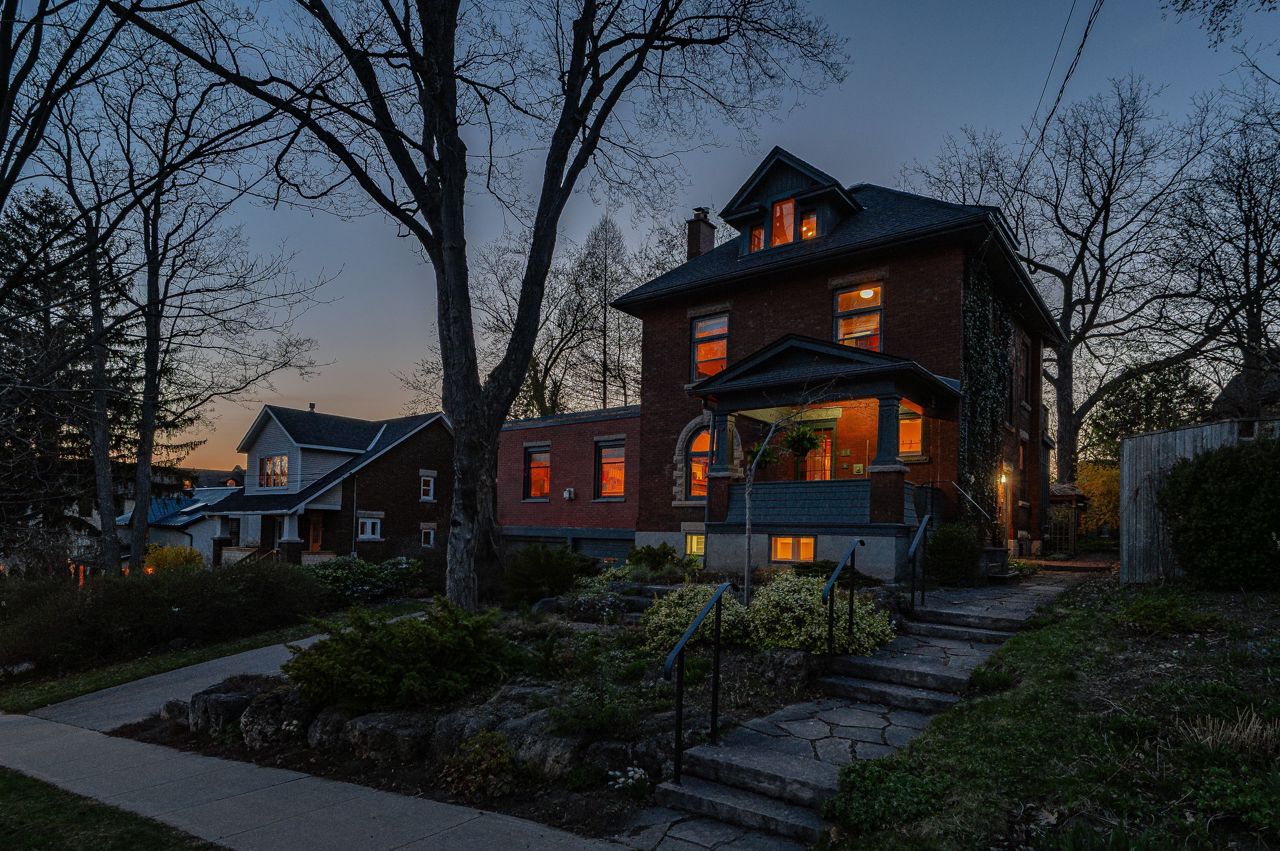 Welcome to 111 Oxford Street. Located just steps from Downtown Guelph, Exhibition Park, the library, and excellent schools, this stunning century home is full of charm, character, and modern conveniences. From the moment you arrive, you'll be captivated by the incredible curb appeal professionally landscaped stonework, a double car garage, beautiful windows, and an inviting front porch set the tone for whats inside. Meticulously maintained, this home showcases immaculate hardwood floors, original baseboards, and trim, all thoughtfully preserved to highlight its historic beauty. The main floor offers a formal front entrance, a spacious kitchen, a bright dining room, a cozy sitting room, a family room with a gas fireplace, and a dedicated office ideal for todays lifestyle. Upstairs, you'll find four generous bedrooms and a 4-piece bathroom, including one bedroom with a private balcony. The third-floor retreat features a luxurious primary suite complete with an ensuite bathroom and endless closet space.The finished basement adds even more living space, featuring a sunny office, a large recreation room, a bathroom, a convenient mudroom with direct access to the garage, and a workshop area.Step outside to your private backyard oasis beautifully landscaped with lush gardens, north-west views, and plenty of room for entertaining or relaxing with family and friends.This spectacular home is ready for its next chapter!