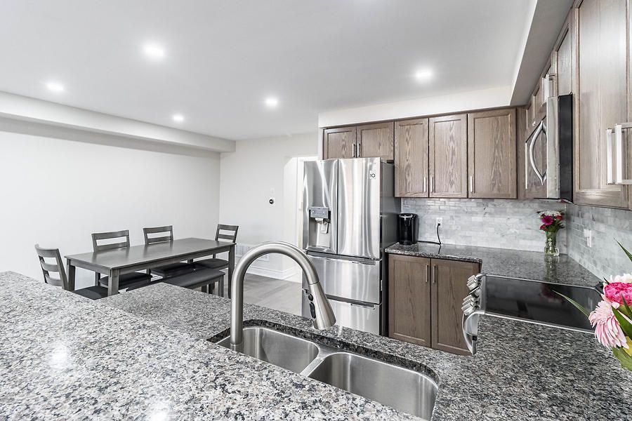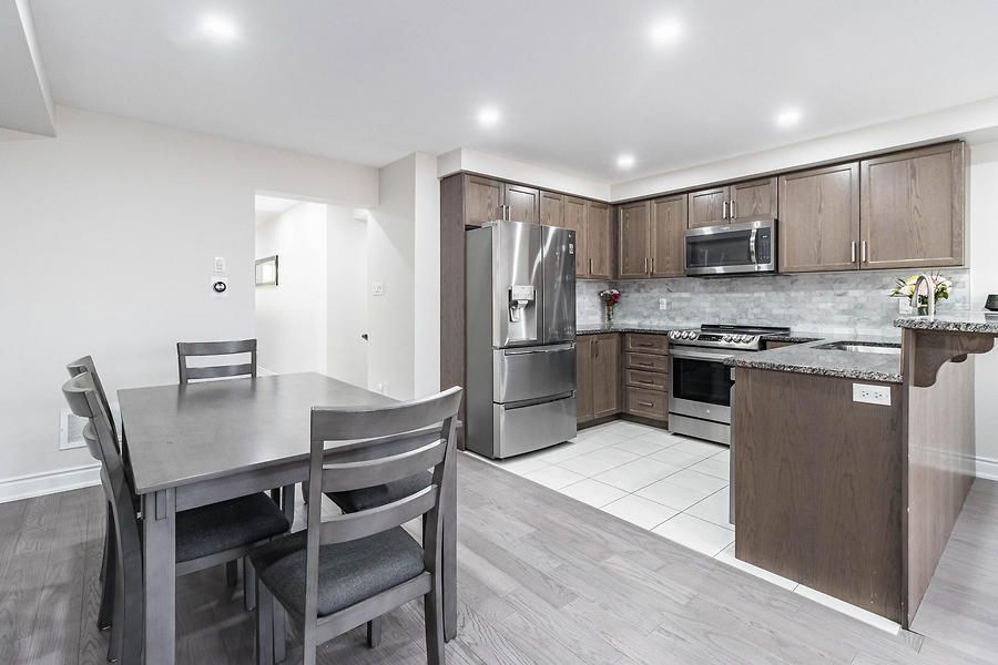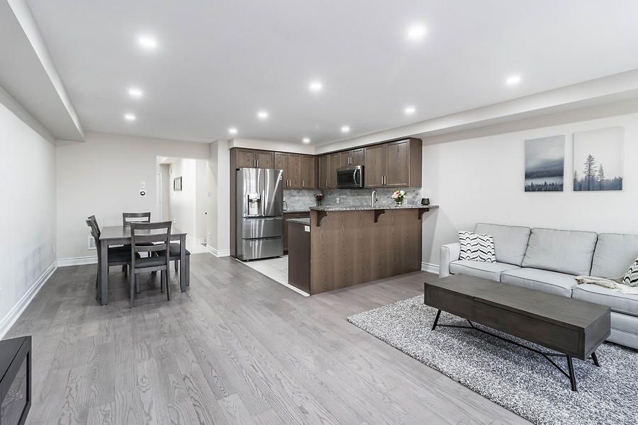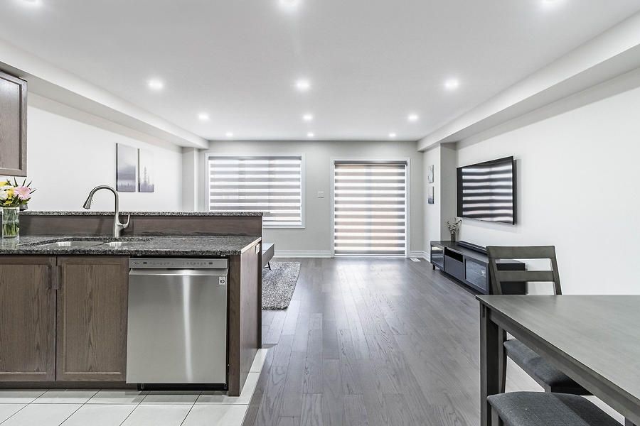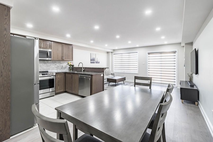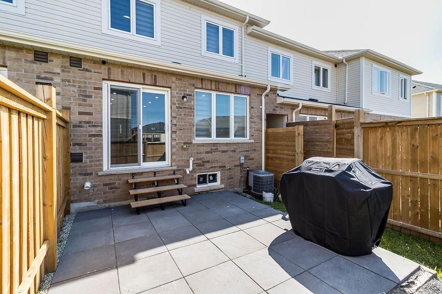 Beautiful, open concept, move in ready 2-Storey Townhome Offers 3 Beds, 3 Baths, & 1 Car Garage. Lots Of Windows Make It Bright & Open. Walkout To A Large Backyard. Open Concept Floor Plan Incl. Kitchen, Living, & Dining. Upgraded Kitchen Featuring Upgraded Tiles, Granite Counters, Convenient Breakfast Bar, And Ample Cabinet Storage. Huge Master Bedroom With Walk-In Closet & Large En-Suite With Oversized Stand Up Glass Shower.Newly installed engineered hardwood flooring throughout. Upgraded Oak stairs. Close to all amenities.Upgraded Stainless Steel Appliances Including An Over-The-Range Microwave Oven. A/C Included. The Garage Door Opener & Custom Blinds All Included. Blinds on patio door, master bed and large window on top of stairs are motorized.