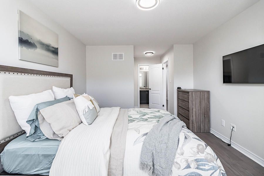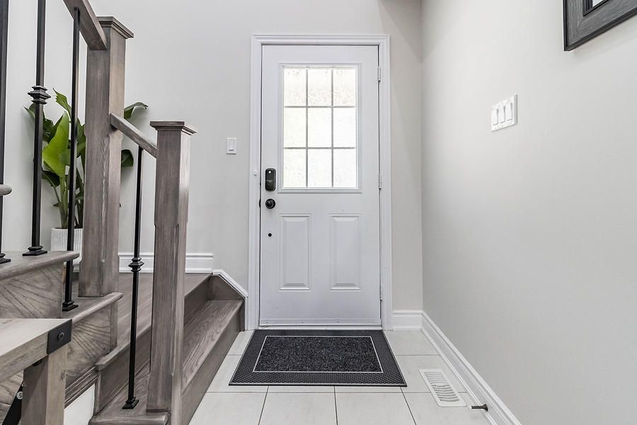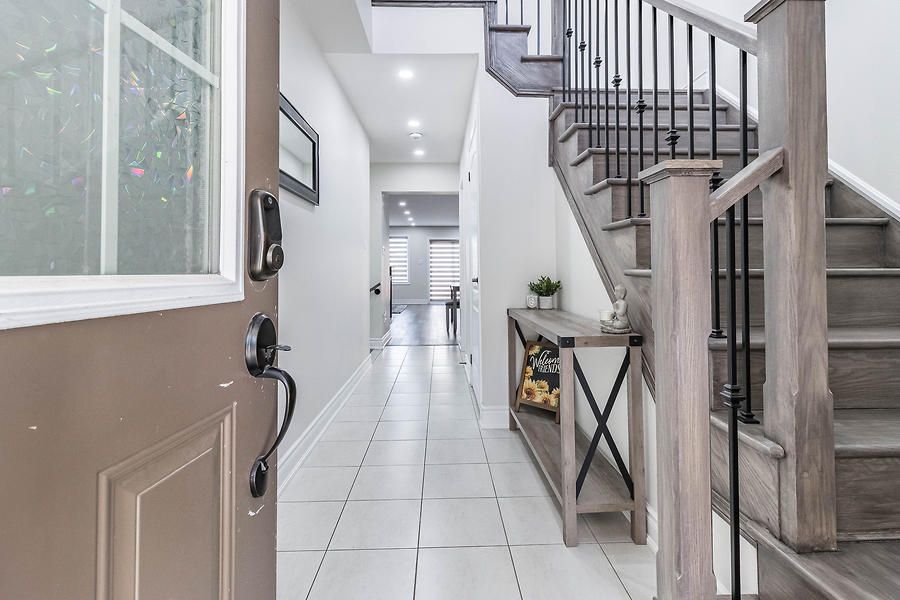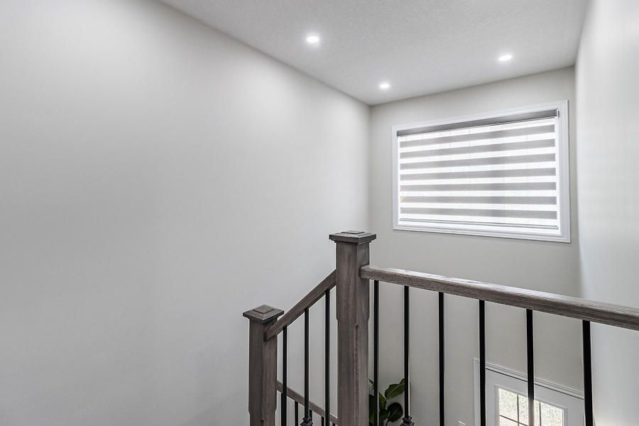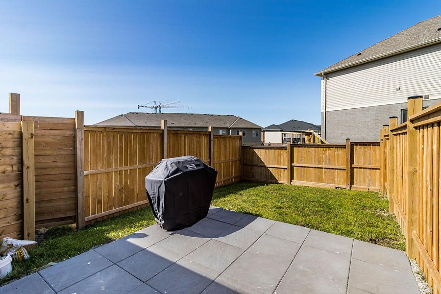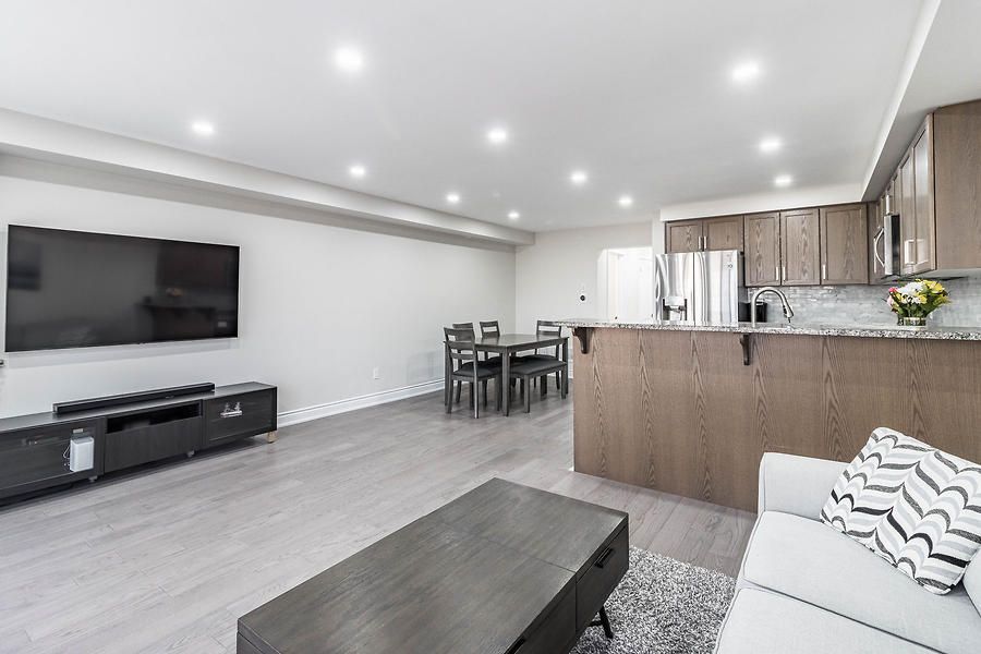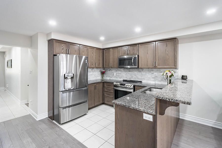 Beautiful, open concept, move in ready 2-Storey Townhome Offers 3 Beds, 3 Baths, & 1 Car Garage. Lots Of Windows Make It Bright & Open. Walkout To A Large Backyard. Open Concept Floor Plan Incl. Kitchen, Living, & Dining. Upgraded Kitchen Featuring Upgraded Tiles, Granite Counters, Convenient Breakfast Bar, And Ample Cabinet Storage. Huge Master Bedroom With Walk-In Closet & Large En-Suite With Oversized Stand Up Glass Shower.Newly installed engineered hardwood flooring throughout. Upgraded Oak stairs. Close to all amenities.Upgraded Stainless Steel Appliances Including An Over-The-Range Microwave Oven. A/C Included. The Garage Door Opener & Custom Blinds All Included. Blinds on patio door, master bed and large window on top of stairs are motorized.