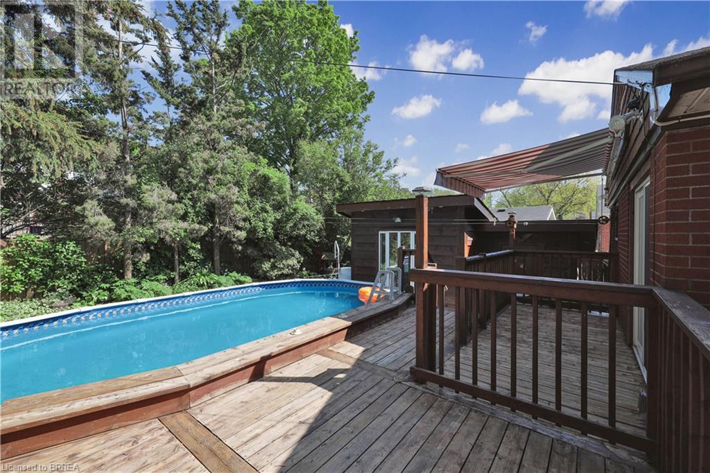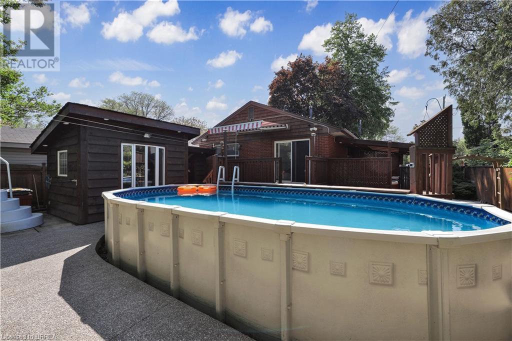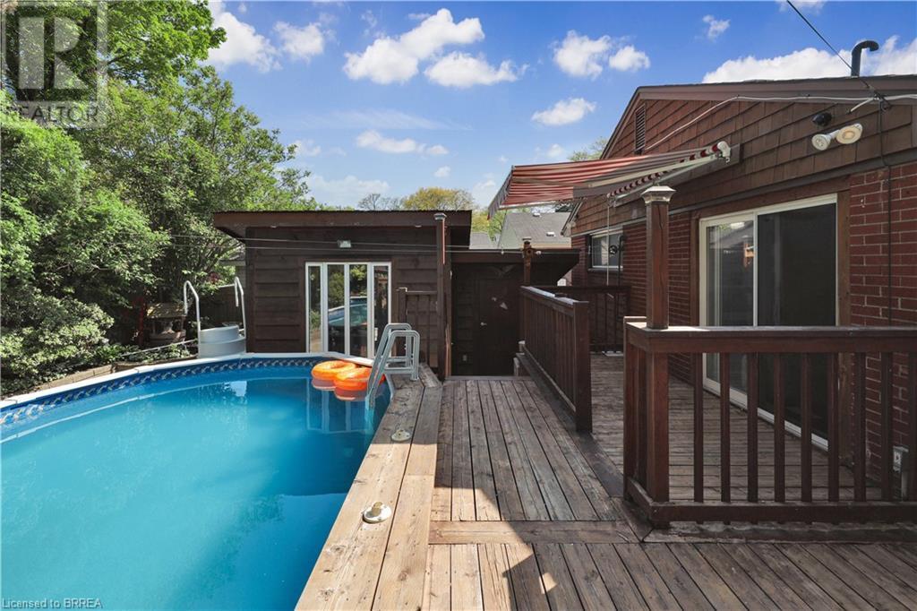 Welcome to this stunning and unique brick and cedar shank bungalow nestled on the beautiful West Hamilton Mountain. This exceptional home offers a picturesque setting and an array of features to enhance your lifestyle. Situated on a spacious lot, the backyard is truly a sanctuary. You'll discover the ultimate outdoor retreat, complete with a covered hot tub, heated pool, and total privacy, thanks to the surrounding mature trees. This serene environment allows for relaxation and entertaining in style. Convenience and versatility continue to impress with additional storage sheds equipped with electricity and heat. Step inside to find a well-designed layout. The main floor features three bedrooms, offering ample space for your family's needs. The lower level boasts two additional bedrooms and a separate entrance, making it an ideal space for an in-law suite or rental unit. This flexible arrangement opens up possibilities for multigenerational living or supplementing your mortgage with rental income. The home comes equipped with newer appliances, including a gas stove and gas dryer, ensuring modern convenience and efficiency. You'll appreciate the peace of mind that comes with these upgraded features. In 2020, the exterior of the pool and the liner were replaced, providing a refreshed and well-maintained recreational area for you and your loved ones to enjoy. Whether you're splashing in the pool or lounging by the water's edge, this space will undoubtedly become a favourite gathering spot. This home offers plenty of room for your growing family, while also presenting an excellent opportunity for owners looking to supplement their mortgage with a rental suite. With its impressive backyard, ample bedrooms, and separate entrance to the basement, this property combines comfort, privacy, and income potential. (id:22211)
