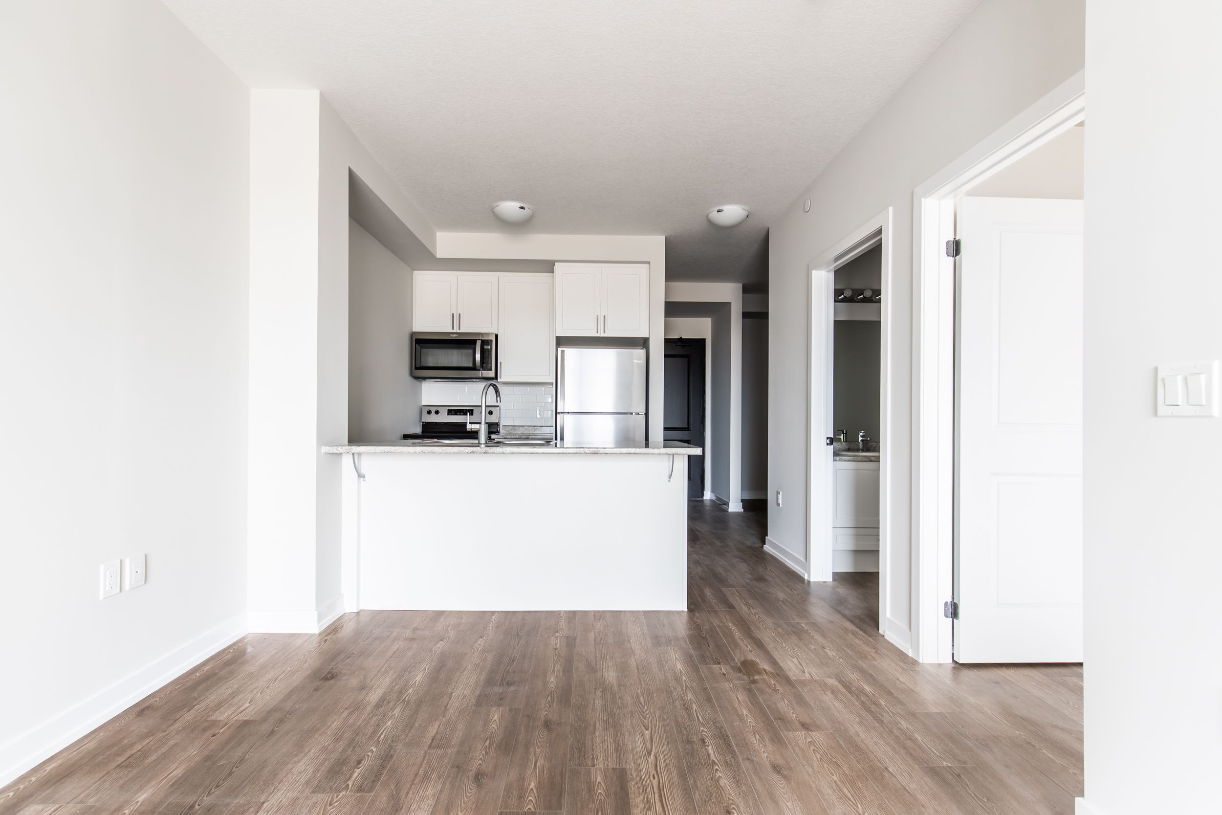 全新一臥一書房!成為首批入住此令人驚豔套房的人,它擁有現代、當代風格的裝修和您所需的一切便利設施。寬敞的廚房擁有全新的不鏽鋼電器、充足的台面空間和時尚的櫥櫃。開放式起居空間延伸至舒適的書房,非常適合作為家庭辦公室或額外的生活空間。主要特點:獨立溫控:通過套內溫度設置控製您的舒適度。套內洗衣房:包括洗衣機和烘幹機,方便您使用。不鏽鋼電器:冰箱/冰凍室、嵌入式微波爐和洗碗機。地熱供暖和製冷:包含高效氣候控製。設施:可使用自行車儲藏室、健身中心和智能包裹儲物櫃。物業管理團隊:現場專業物業管理團隊為您提供服務。不要錯過這個機會,讓這個美麗的套房成為您的新家!實際租金已降低,12個月租賃期限相當於2個月的免費租金。