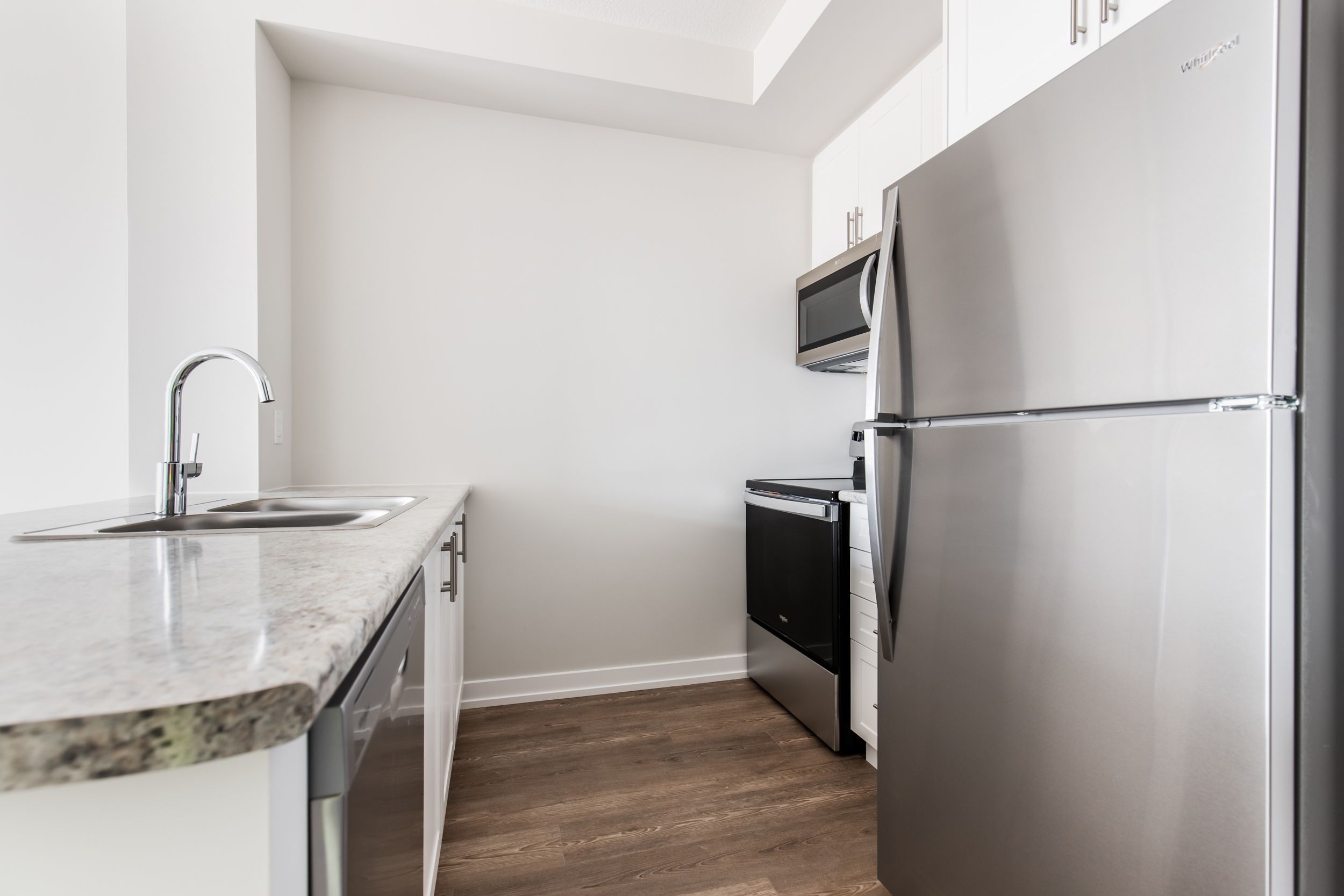 BRAND NEW 1 Bedroom + Den! Be the first to live in this stunning suite, featuring modern, contemporary finishes and all the conveniences you need. The spacious kitchen boasts brand new stainless steel appliances, ample counter space, and sleek cabinetry. The open-concept living area extends to a cozy den, perfect for a home office or extra living space. Key Features: Individual Thermostat: Control your comfort with insuite temperature settings. In-Suite Laundry: Includes a washer and dryer for your convenience. Stainless Steel Appliances: Fridge/freezer, over the -range microwave, and dishwasher. Geo-Thermal Heating and Cooling: Efficient climate control included. Amenities: Access to a bike storage room, fitness center, and smart parcel lockers. On-Site Property Management: Professional management team on-site for your needs. Don't miss this opportunity to make this beautiful suite your new home! Actual rent has been reduced on 12 month lease term equivalent of 2 months free rent.