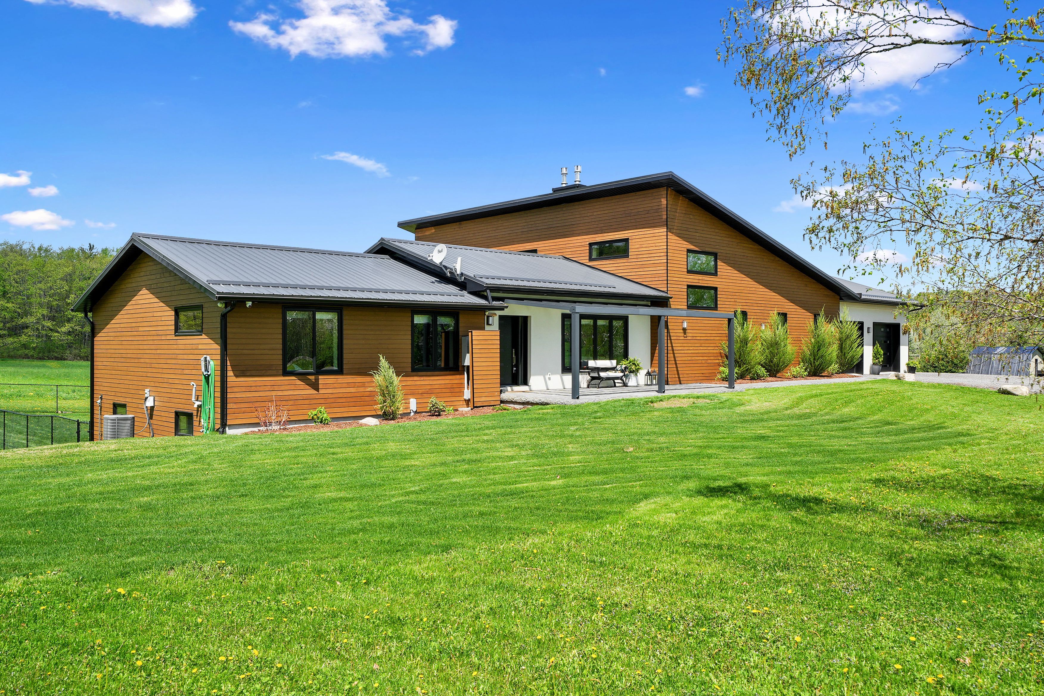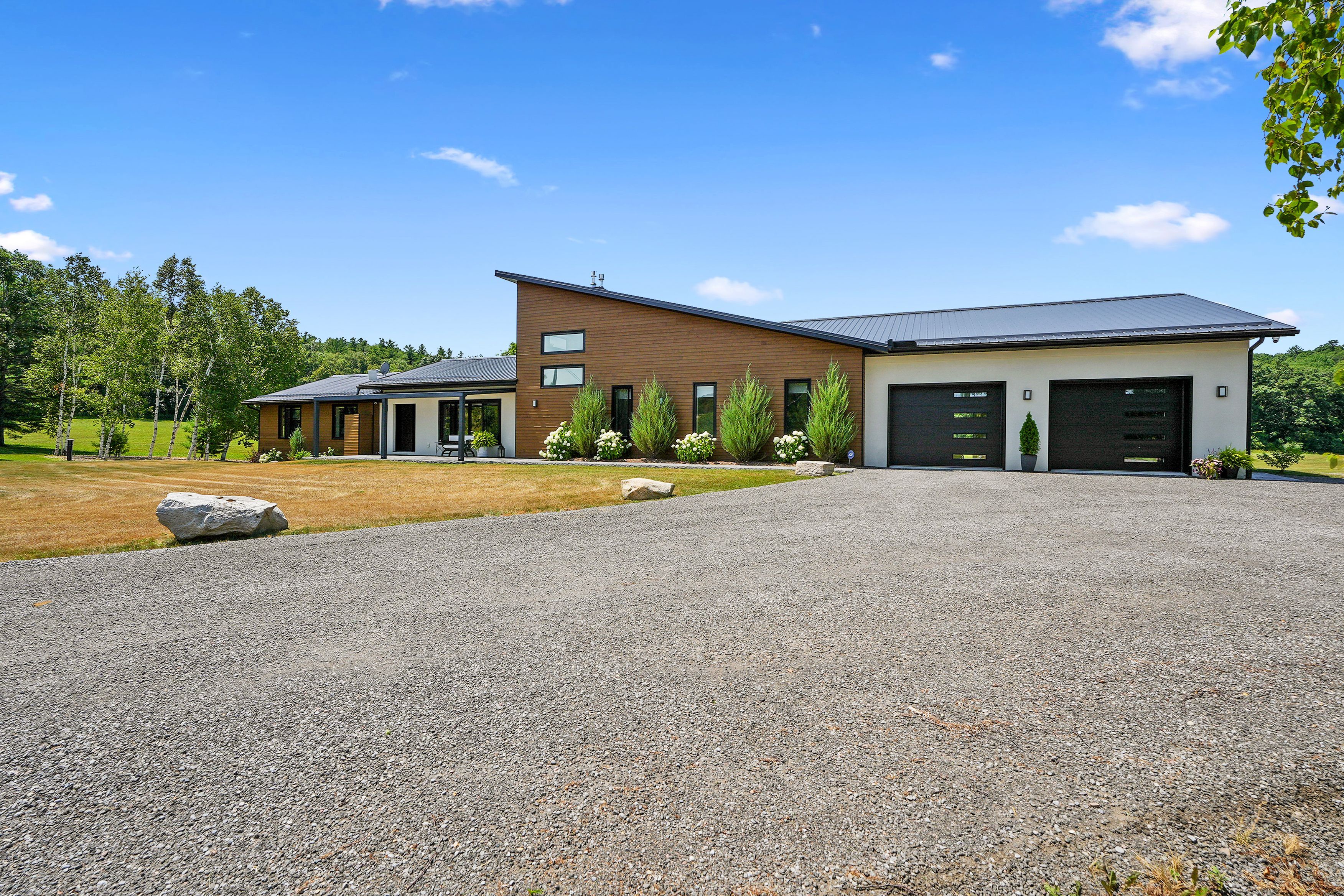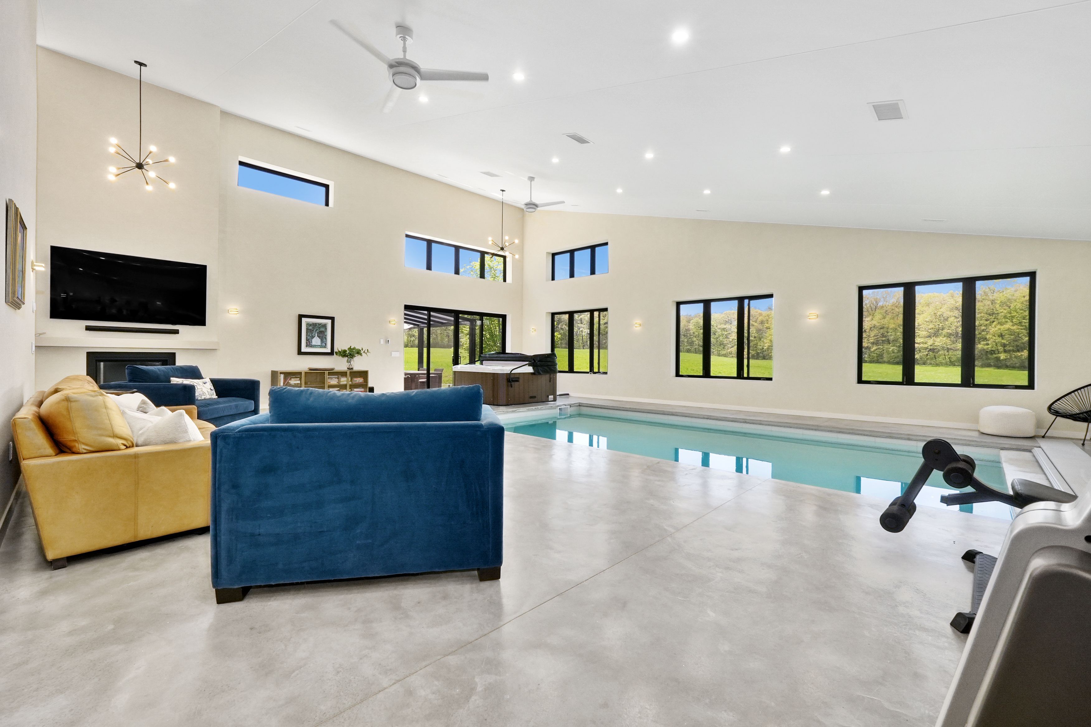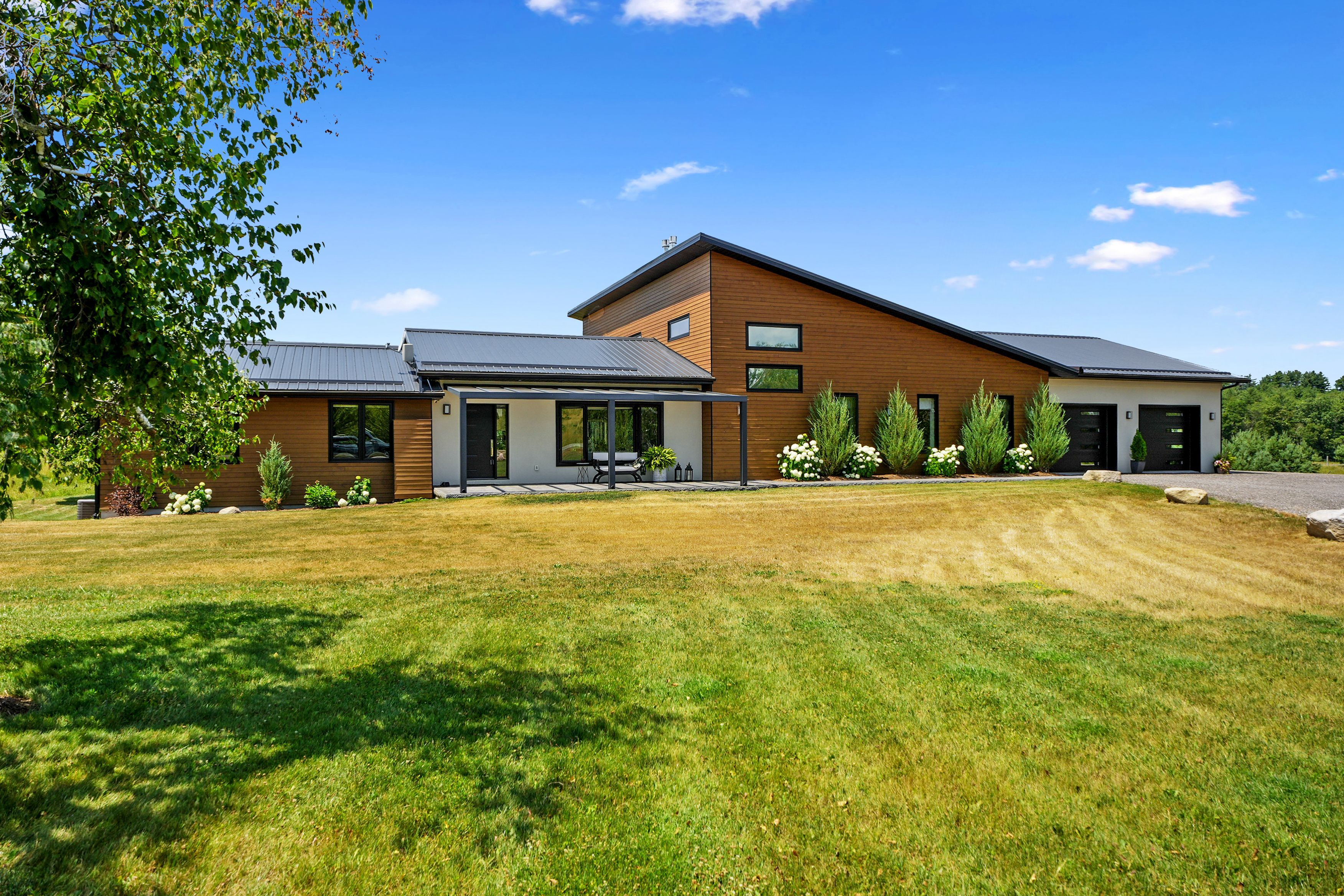 Set on a sprawling 23-acre estate, this striking modern residence exemplifies the perfect balance between contemporary elegance and rural serenity. Every detail has been thoughtfully curated, blending sleek architectural design with high-performance construction, including efficient ICF walls and radiant heated concrete flooring. Step into a grand, open-concept living area defined by cathedral ceilings and a dramatic wall of windows. A double-sided Napoleon propane fireplace anchors the space, connecting the living room to a sophisticated dining area adorned with modern lighting and walkout to the second-level deck ideal for outdoor entertaining. Sunlight pours into the kitchen through oversized windows and skylights, offering breathtaking views of the rolling countryside beyond and showcasing top-tier Jenn-Air appliances, striking Dekton countertops and a waterfall island with a breakfast bar. Resort-style living awaits in the private attached oasis. A 14x24 heated indoor saltwater pool, soaring 20-foot ceilings, expansive windows, a hot tub, and space for a lounge or home gym create an oasis-like experience, ideal for year-round relaxation and entertaining. The primary suite is a tranquil retreat featuring a walk-in closet and spa-inspired ensuite with dual vanity, freestanding soaker tub, and glass shower enclosure with steam shower. An additional bedroom and two bathrooms round out the level. The finished lower level adds flexible living space, including a sprawling bedroom suite with sitting area, semi-ensuite bath, and walkout to a covered patio. A massive recreation room with a walk-in closet offers potential for a future fourth bedroom. Enjoy a lower covered patio area, fenced yard, and firepit area, perfect for summer nights under the stars. Additional highlights include a radiant heated 4-car garage and a 16x24 barn for versatile use. This one-of-a-kind property is the pinnacle of modern rural luxury. Just under 15 minutes to Cobourg and Highway 401.