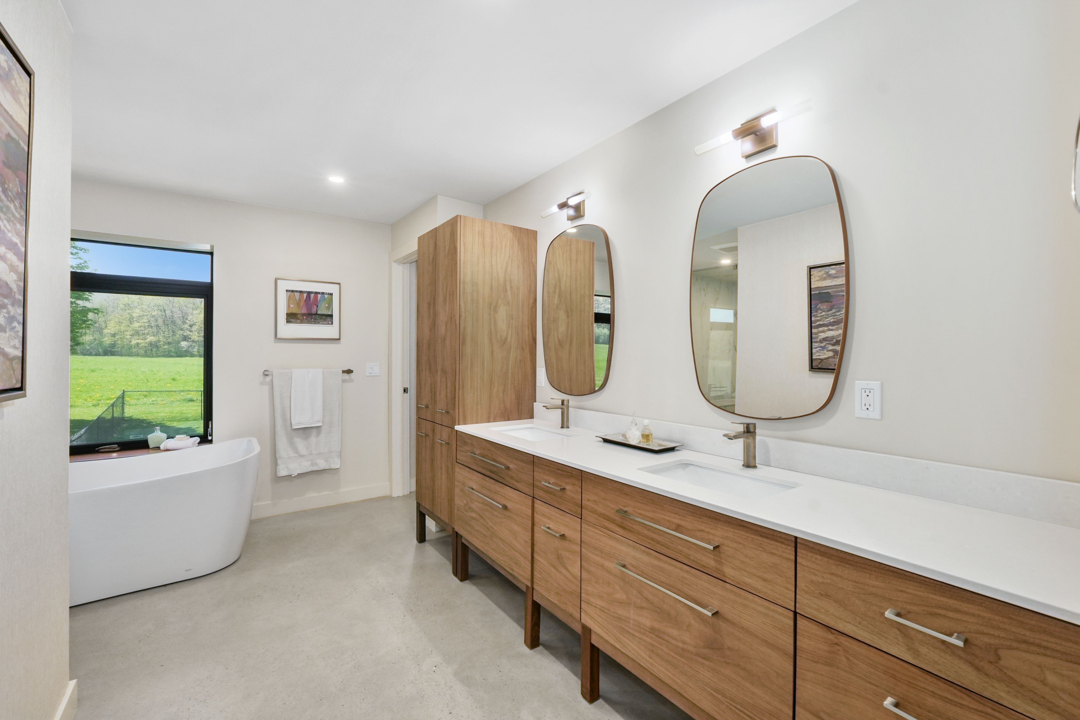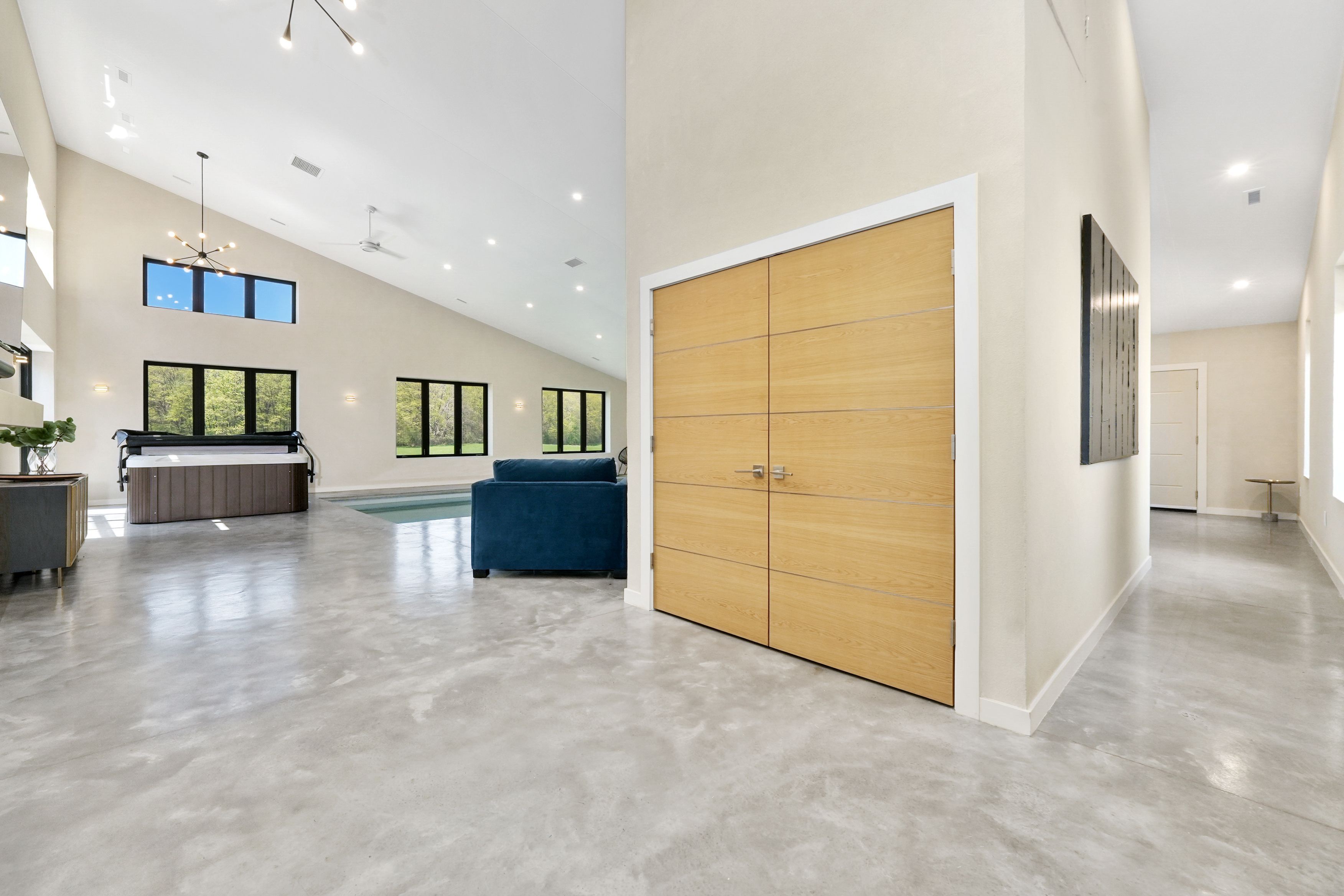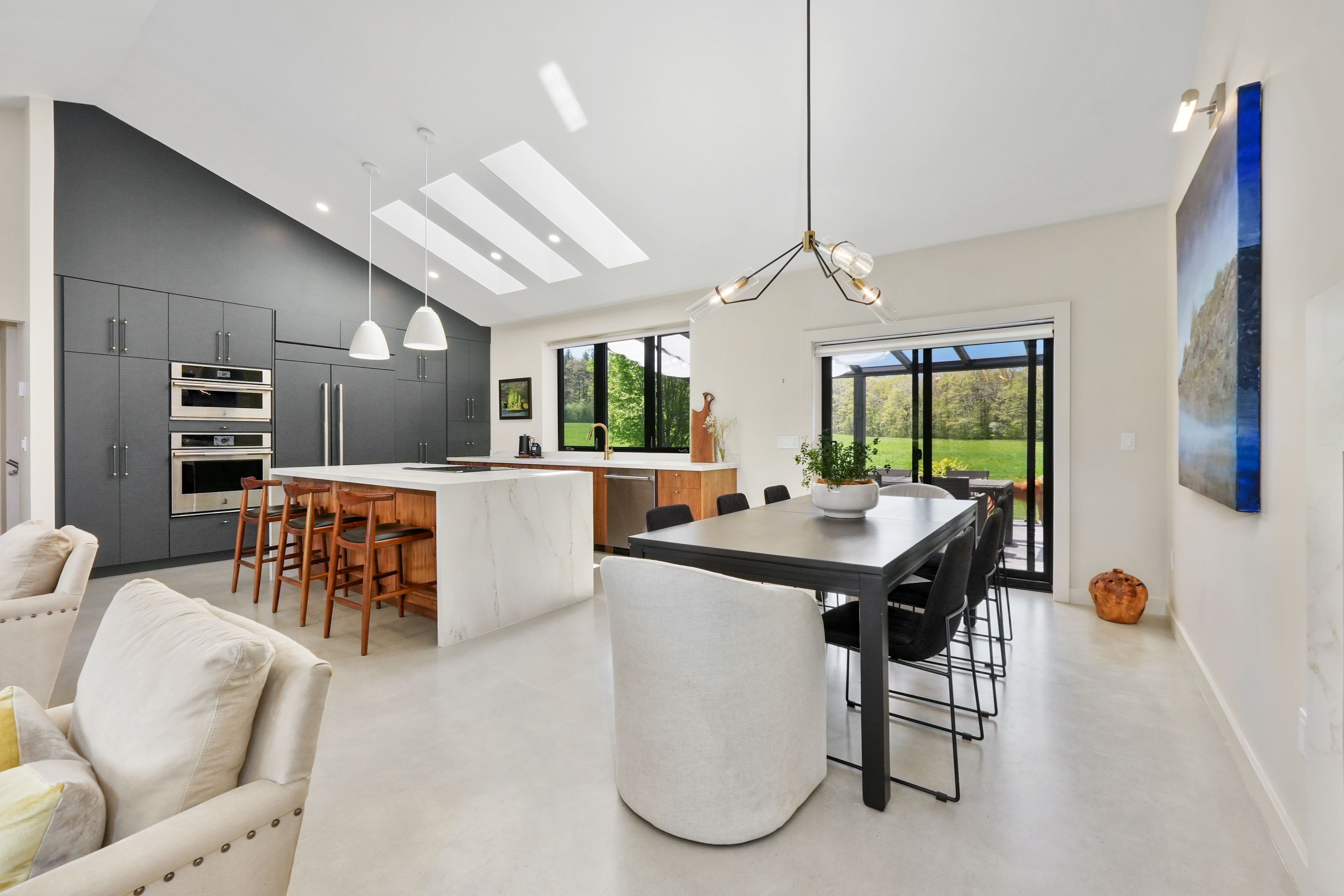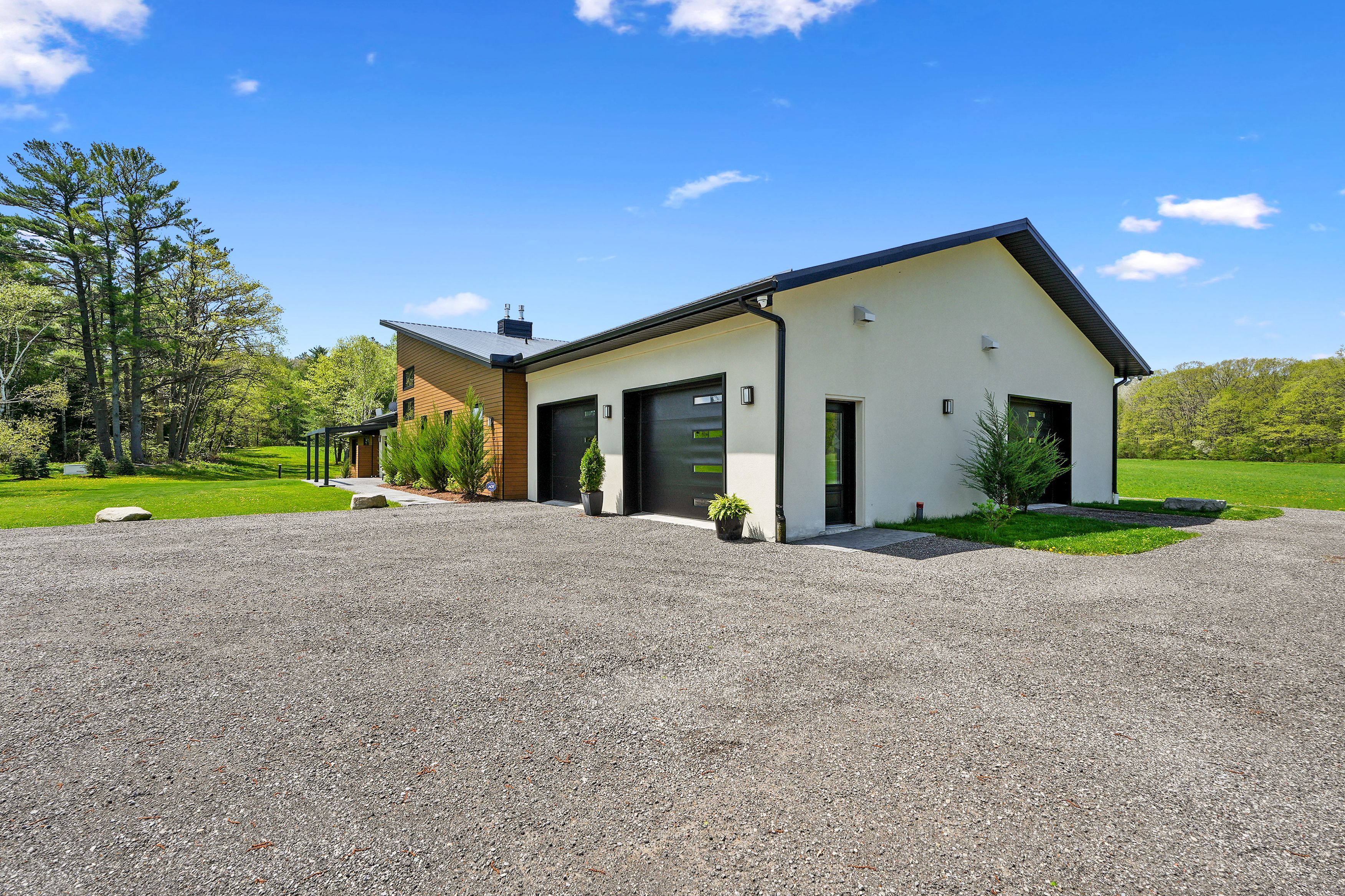 Set on a sprawling 23-acre estate, this striking modern residence exemplifies the perfect balance between contemporary elegance and rural serenity. Every detail has been thoughtfully curated, blending sleek architectural design with high-performance construction, including efficient ICF walls and radiant heated concrete flooring. Step into a grand, open-concept living area defined by cathedral ceilings and a dramatic wall of windows. A double-sided Napoleon propane fireplace anchors the space, connecting the living room to a sophisticated dining area adorned with modern lighting and walkout to the second-level deck ideal for outdoor entertaining. Sunlight pours into the kitchen through oversized windows and skylights, offering breathtaking views of the rolling countryside beyond and showcasing top-tier Jenn-Air appliances, striking Dekton countertops and a waterfall island with a breakfast bar. Resort-style living awaits in the private attached oasis. A 14x24 heated indoor saltwater pool, soaring 20-foot ceilings, expansive windows, a hot tub, and space for a lounge or home gym create an oasis-like experience, ideal for year-round relaxation and entertaining. The primary suite is a tranquil retreat featuring a walk-in closet and spa-inspired ensuite with dual vanity, freestanding soaker tub, and glass shower enclosure with steam shower. An additional bedroom and two bathrooms round out the level. The finished lower level adds flexible living space, including a sprawling bedroom suite with sitting area, semi-ensuite bath, and walkout to a covered patio. A massive recreation room with a walk-in closet offers potential for a future fourth bedroom. Enjoy a lower covered patio area, fenced yard, and firepit area, perfect for summer nights under the stars. Additional highlights include a radiant heated 4-car garage and a 16x24 barn for versatile use. This one-of-a-kind property is the pinnacle of modern rural luxury. Just under 15 minutes to Cobourg and Highway 401.
